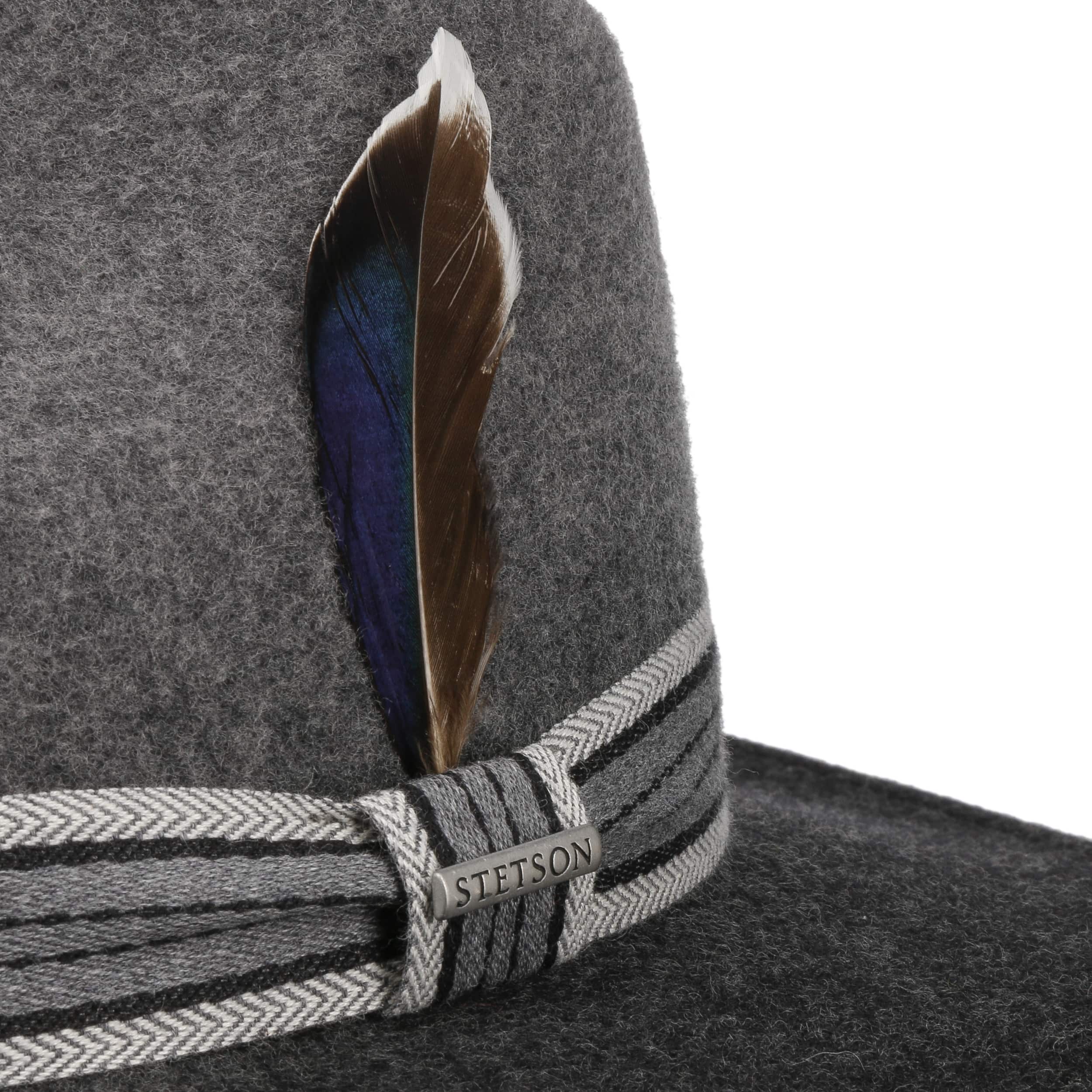 The traveller hat from Stetson is made from 100% sheep’s wool. This makes it pleasantly soft to the touch and warms the head, which it also protects from the rain. This makes this felt hat ideal for anyone who really won’t let anything stand in their way. The fabric yarn band and feather are the main visual highlights of this elegant hat.
