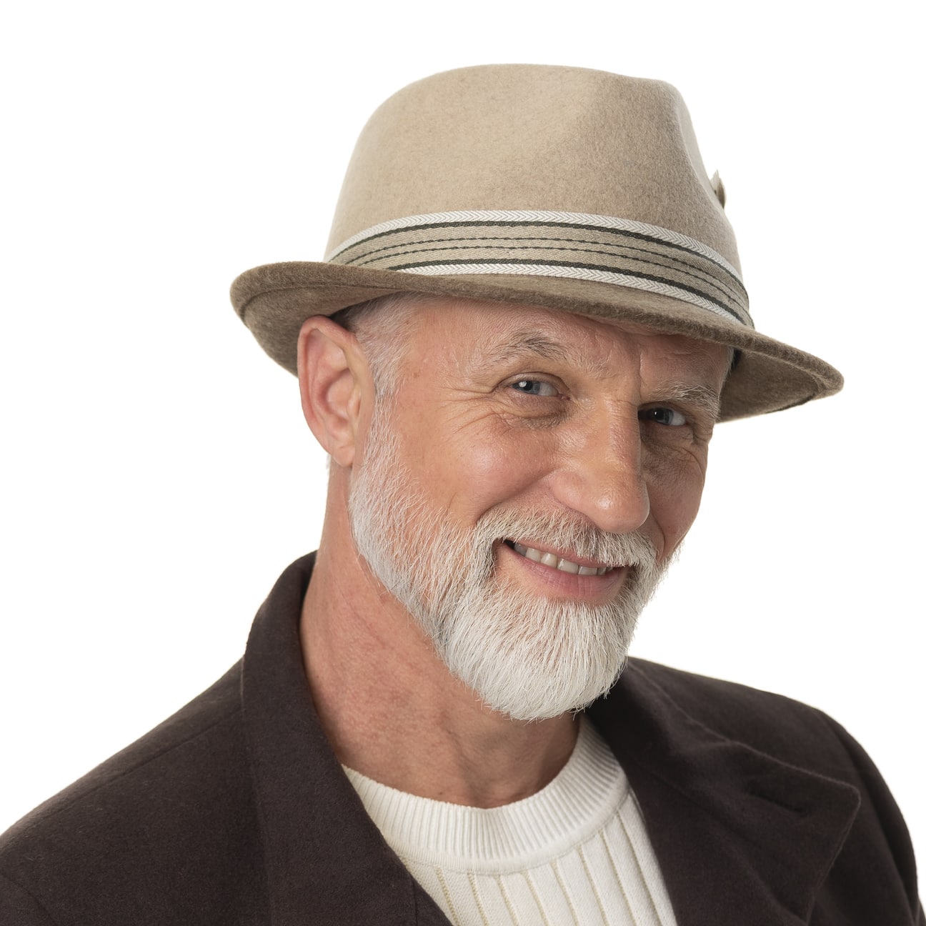 Wool from Australian sheep, obtained from animal welfare-conscious, mulesing-free shearing, was processed into warm, soft Asahi-Guard® felt for the Stetson trilby. This beauty defies environmental influences with its dust, dirt and water-repellent properties, and flatters the head with its crumple-comfortable fit and casual elegance: The handmade, unique colour gradient, underlined by a striped cotton trim band, gives the felt hat a subtle contrast and attractive, combination-talented lightness.