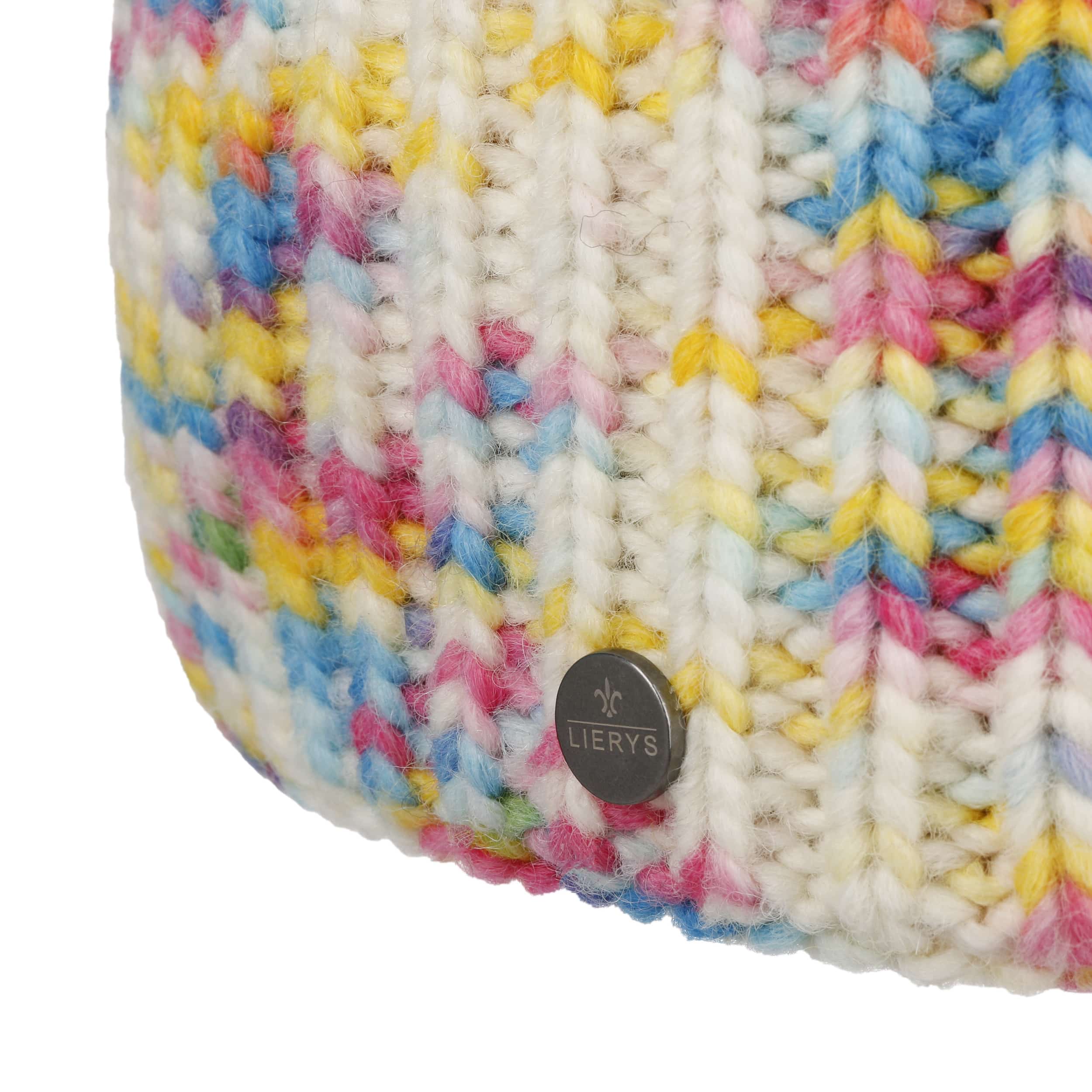 The label with the iris logo has dedicated itself to making modern, stylish and comfortable headwear along with matching accessories. Baseball caps, Trilby hats and Bogart hats have been made into timeless designs that give an outfit a classy splash of colour and bring a smart cut to your headwear. High quality knitted sets, which are available individually as beanies, peak pull on hats, Laplander hats, headbands, scarves, gloves etc., discreetly accentuate each lady’s or gentleman’s individuality. From woollen hats to flat caps, Lierys accessories can be worn in endless fashionable combinations.- Colour Fantasy Knit Beanie by Lierys - mixed colours 1