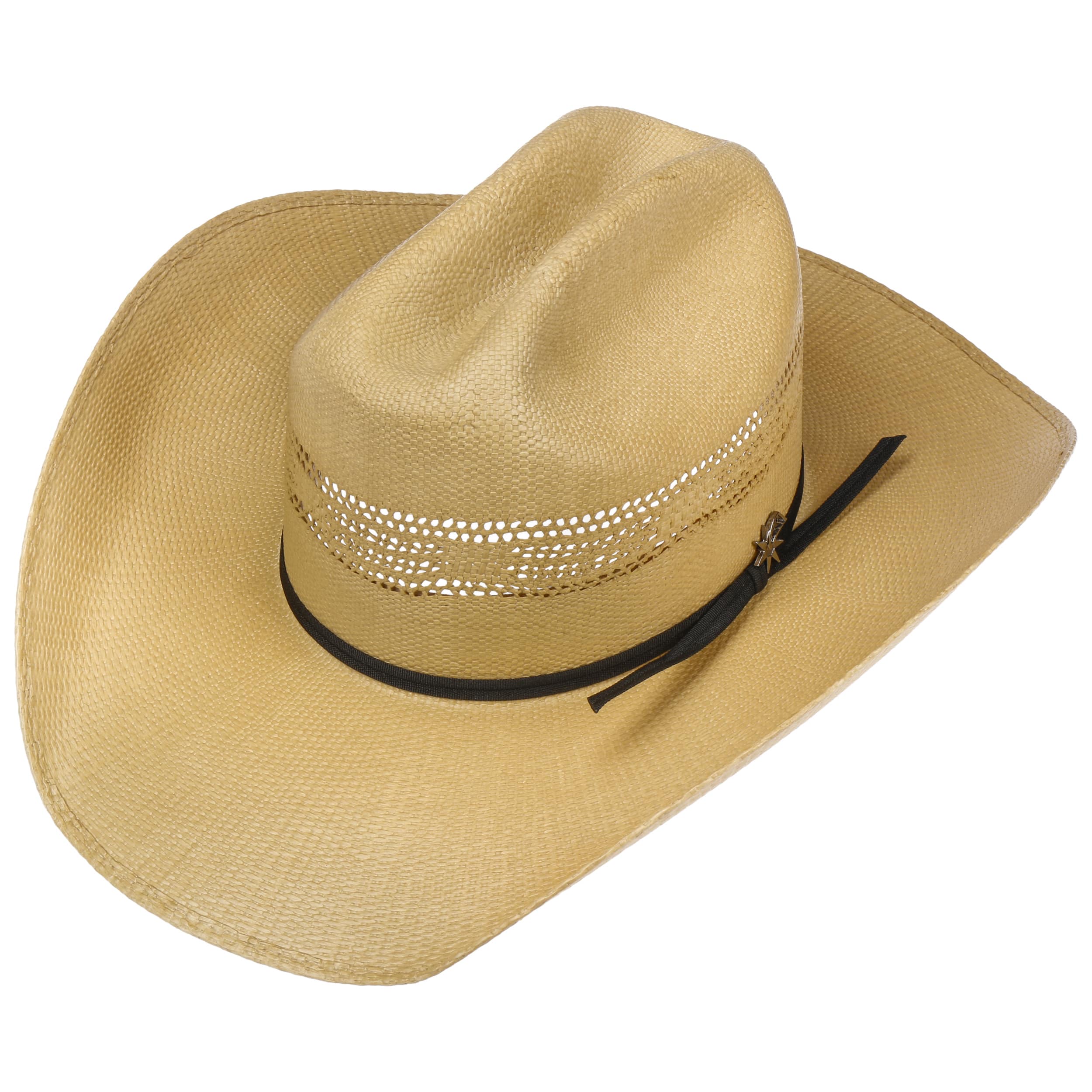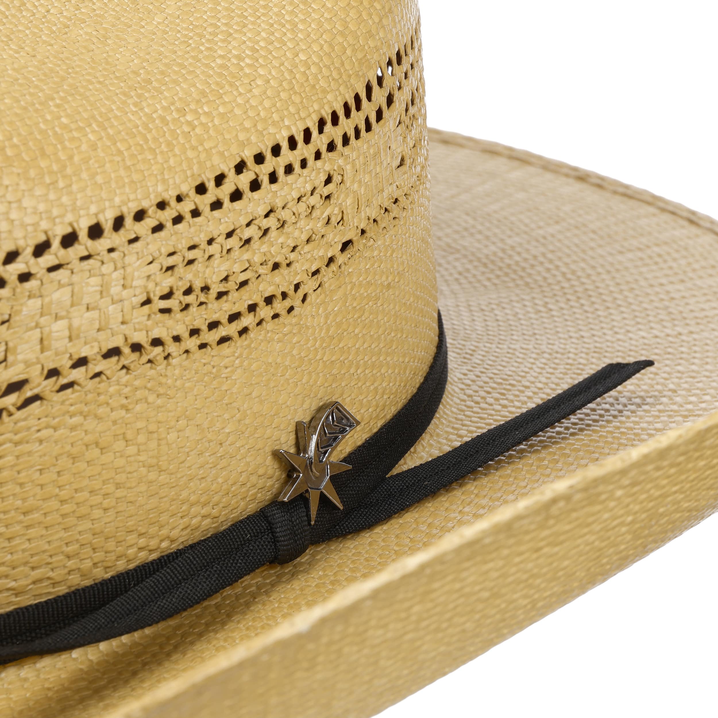 The Western hat impresses with its characteristic shape, generous brim and classic cattleman crown, reminiscent of iconic cowboy hats. Bailey 1922 gives the original a modern touch, making it perfect for travelling, festivals or relaxed summer days. Air-permeable woven paper straw ensures a pleasantly fresh feel, while the fine trim band with metallic appliqué adds a subtle accent. A comfortable inner band increases wearer comfort. Made in Mexico.