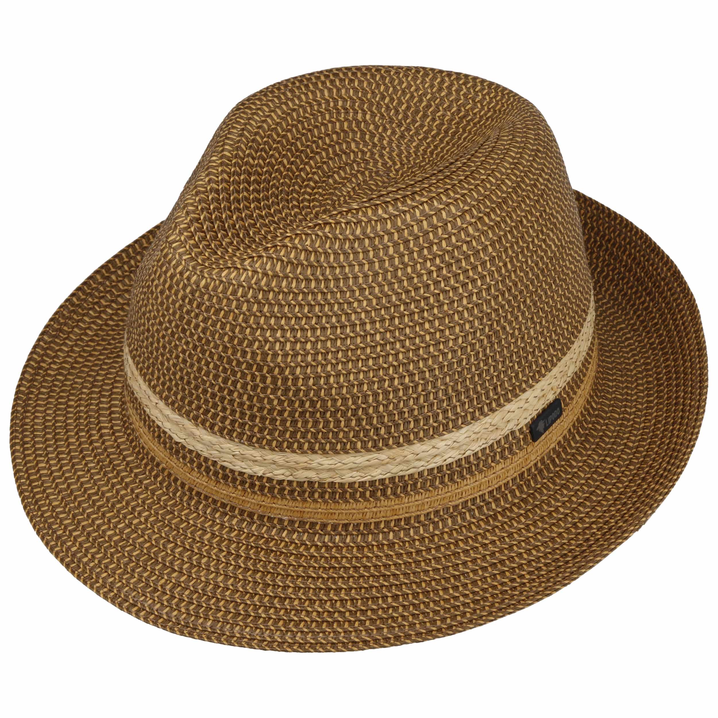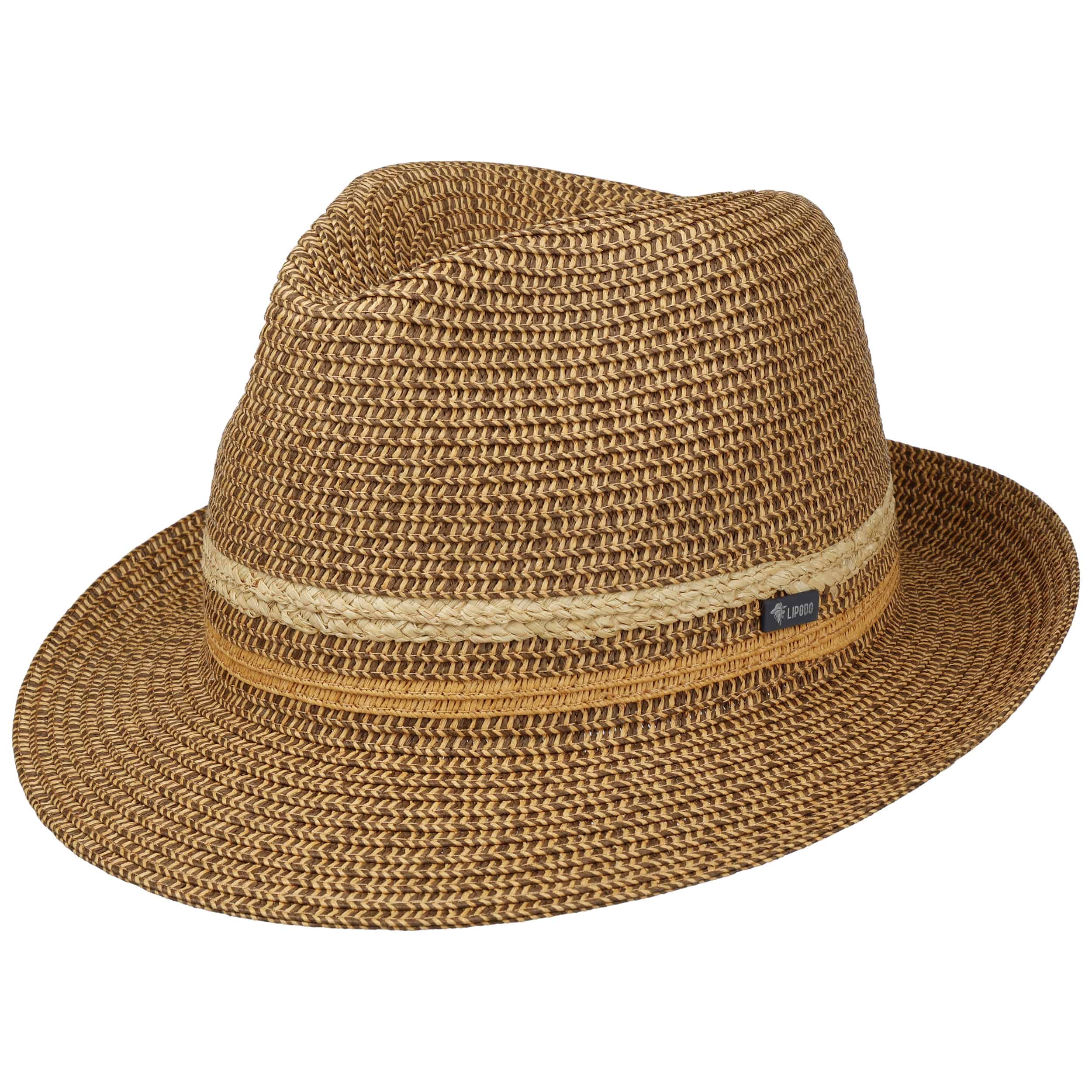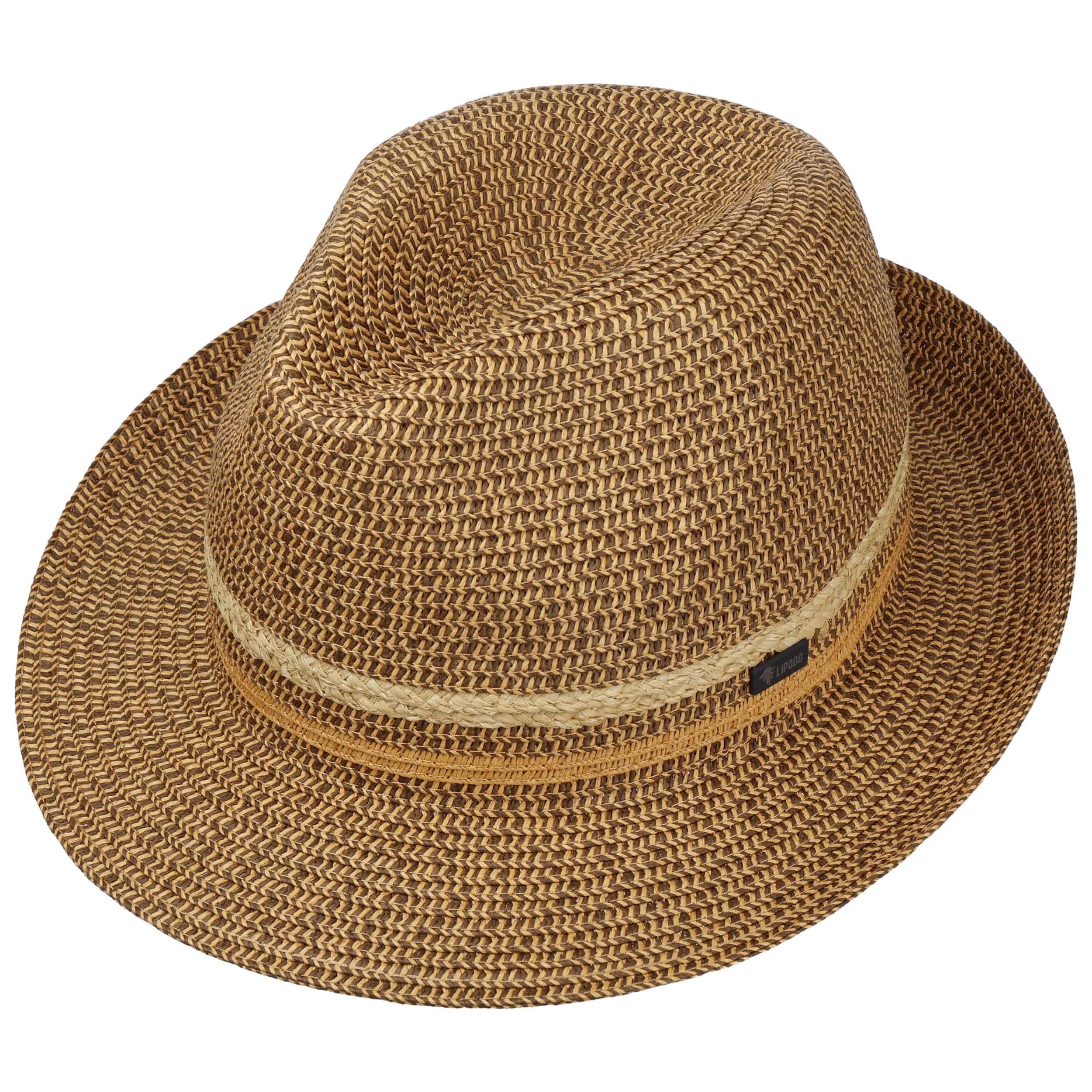 Instead of wrapping the crown of this two-coloured summer hat with a trim band, Lipodo incorporates two contrasting coloured stripes into the braided pattern. A robust yet wonderfully light mix of paper and raffia straw gives the Bogart hat its relaxed look. This unusual hat adds a fashionable twist to a casual outfit.