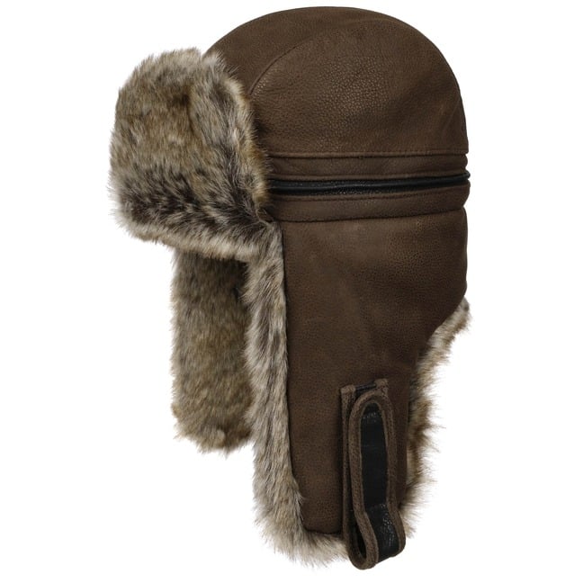 The choice of material for the Stetson aviator hat is elegant with cowhide nubuck leather. The leather cap with its polished surface and micro-embossing is equally robust. It has a trendy vintage look, which comes into its own in combination with the fluffy heathered faux fur trim. This, together with the fleece lining, provides a good boost of warmth.