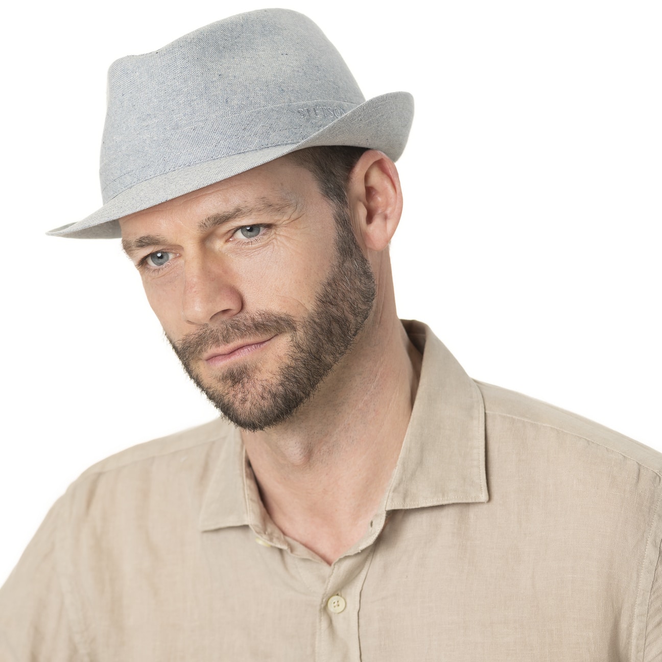 Since 1865, the name of John B. Stetson has been a synonym for best quality cowboy and Western hats. With the increasingly popular VitaFelt and VitaStraw collections, the U.S. brand has become pioneer of lightweight, water repellent and packable headwear. In the meantime, Stetson manufactures a wide range of first-class styles: army and baseball caps, flat hats, docker caps, beanies, trilbies and cowboy hats in many different designs.- Crahan Trilby Cotton Hat by Stetson - light blue 1