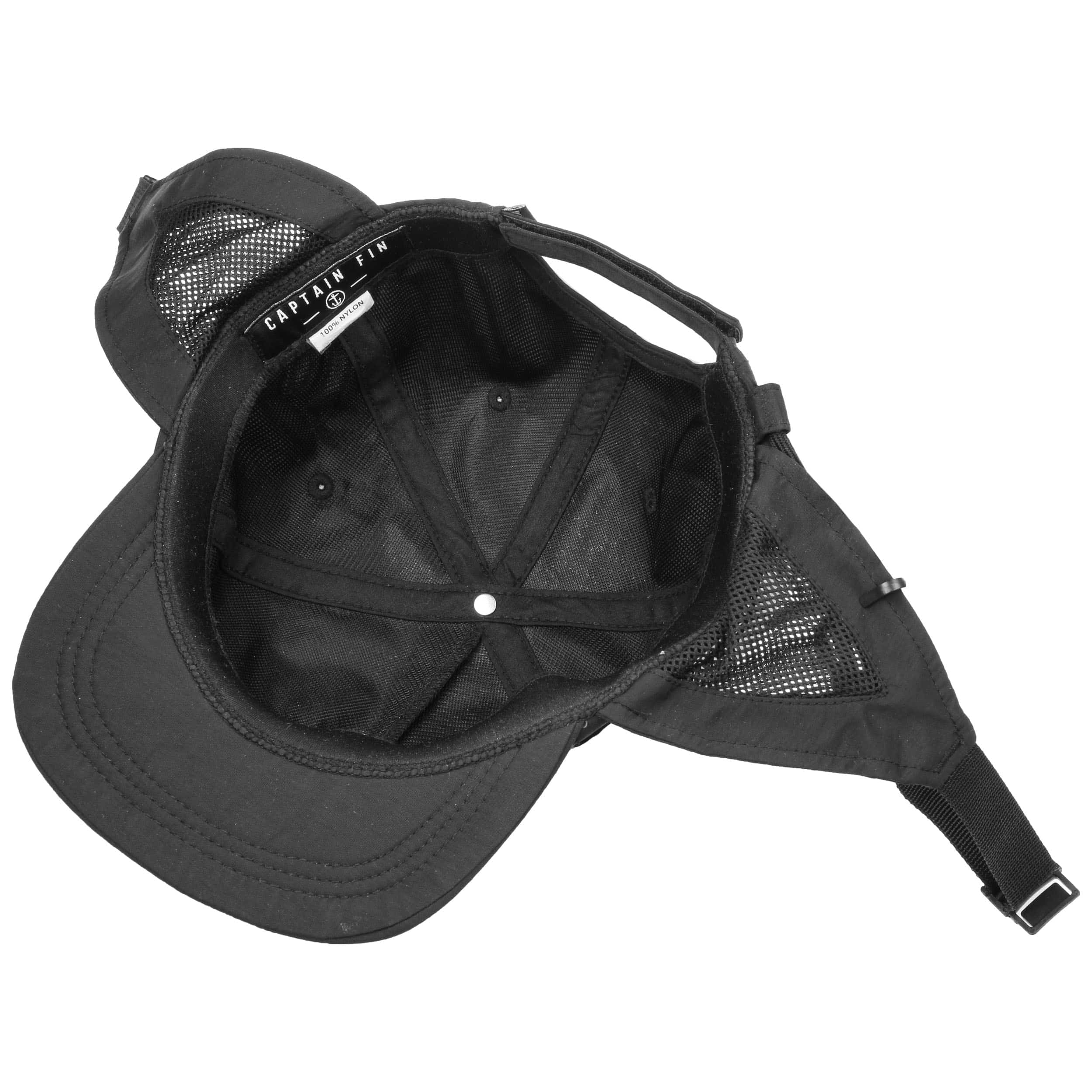 Surfers are drawn to the water in the wind and waves. With its sporty visor, this crushable, plain-coloured baseball cap from Captain Fin shades the eyes, while the cap can be fastened under the chin with a buckle so it stays put, even in turbulent weather. A quick dip is no problem thanks to the fast-drying nylon, while the mesh inserts at the sides ensure a refreshing temperature.