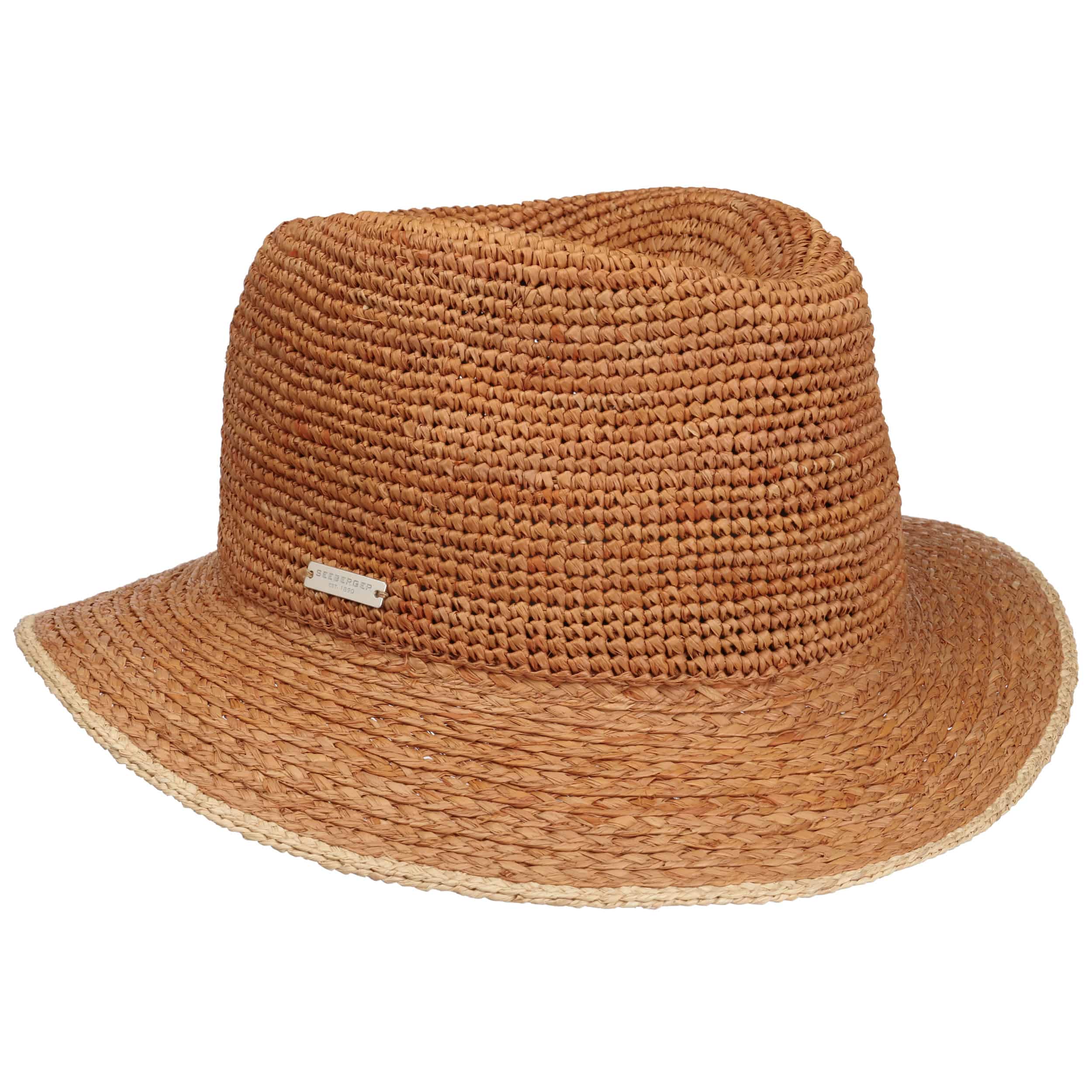 The family-owned entreprise from Allgaeu established in 1890 is known for stylish and timeless women's headwear. Using sophisticated fabrics pleasant to wear, Seeberger stands for very feminine, eye-catching women's hats: winter caps, cloth hats as well as different types of baker boy hats, broadbrimmed hats and berets.- Crochet Crown Raffia Hat by Seeberger - light brown 1