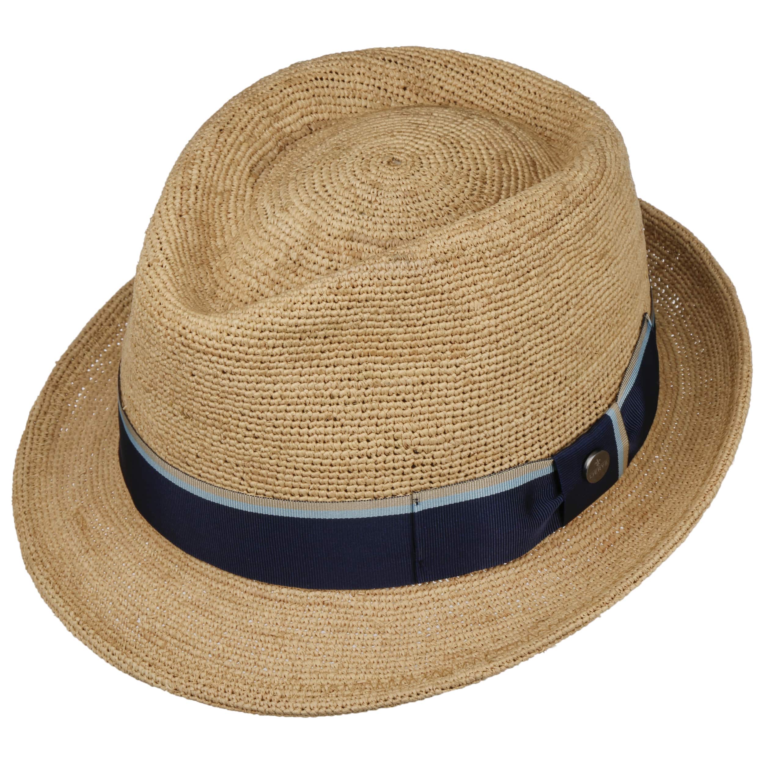 The label with the iris logo has dedicated itself to making modern, stylish and comfortable headwear along with matching accessories. Baseball caps, Trilby hats and Bogart hats have been made into timeless designs that give an outfit a classy splash of colour and bring a smart cut to your headwear. High quality knitted sets, which are available individually as beanies, peak pull on hats, Laplander hats, headbands, scarves, gloves etc., discreetly accentuate each lady’s or gentleman’s individuality. From woollen hats to flat caps, Lierys accessories can be worn in endless fashionable combinations.- Crochet Trilby Raffia Hat by Lierys - nature 1