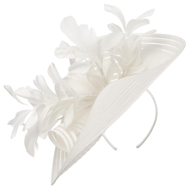 Whether at the horse races or at a wedding, this fascinator by McBURN attracts admiring glances at every special occasion. This is due to the plate-shaped hat with stripes of net fabric attached to the side of the headband. A lavish feather ornament completes the sophisticated design. The accessory can be flexibly combined with updos and loose hair.