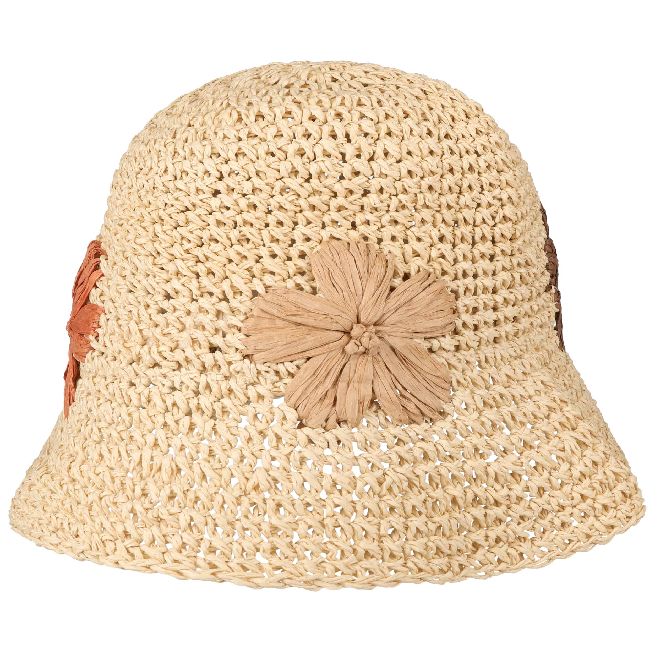 This casual bucket hat from Barts is made of paper straw, giving it a pleasantly lightweight feel and airy comfort on warm days. The downturned brim provides ample shade, while the simple design is elevated by a delicate flower detail on the side. Thanks to the adjustable fit, it sits securely whether you are travelling, relaxing on holiday or gardening in the sun.