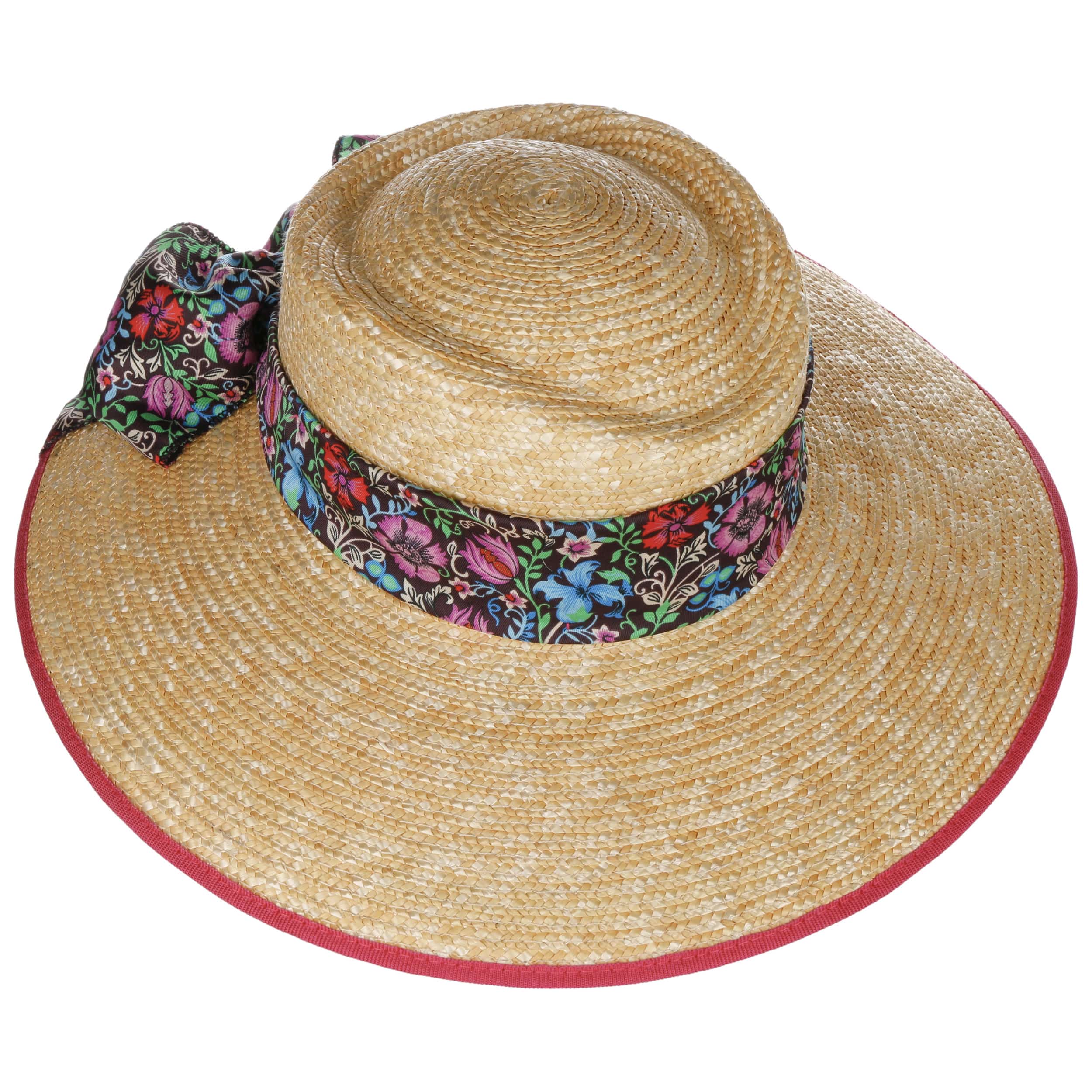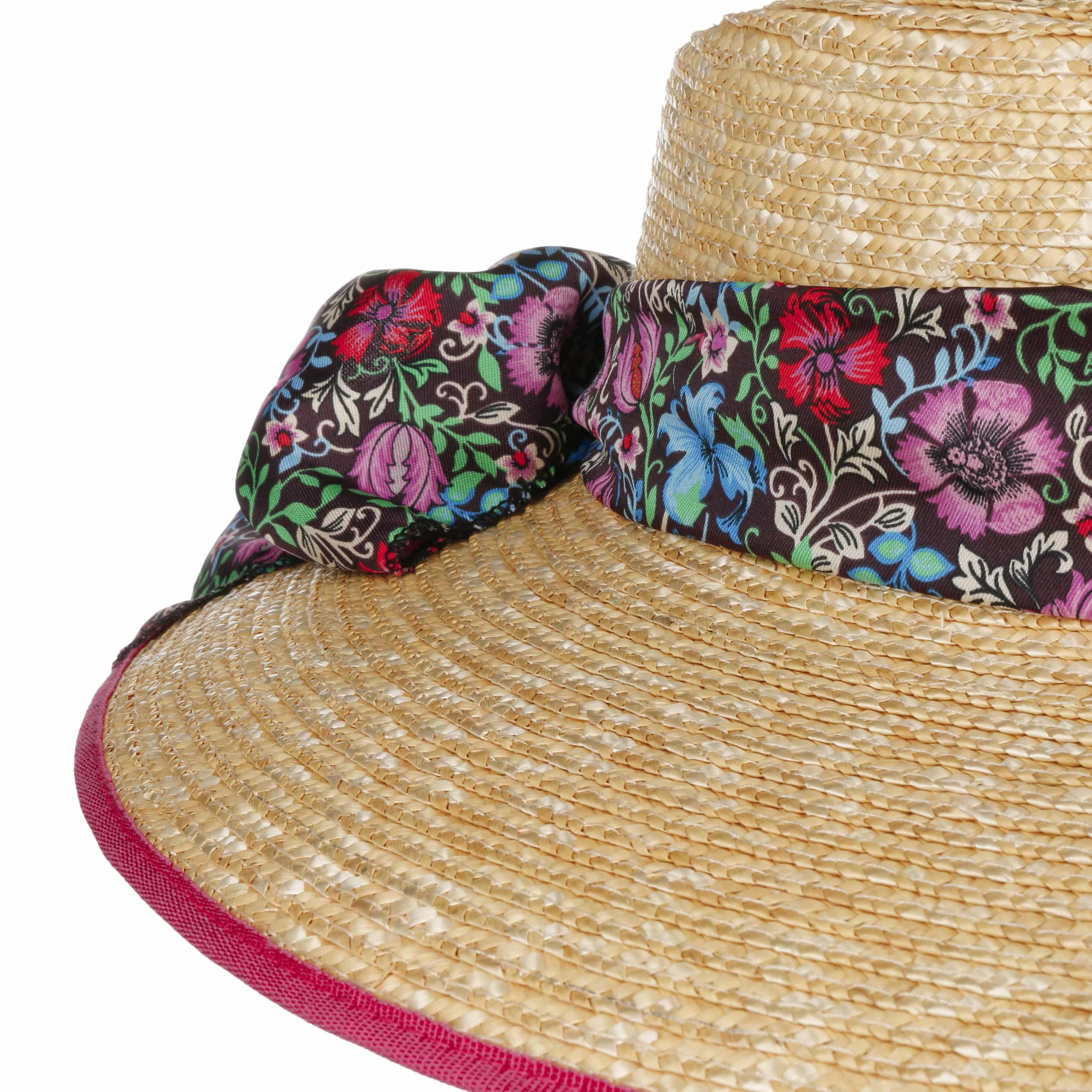 The beautifully shaped hat from Lierys is made of 100% straw, which has an excellent quality of workmanship. Its wide brim protects against the sun and is trimmed with contrasting piping. This harmonises wonderfully with the fabric trim band, which is adorned with an attractive floral print. The lightweight slouch hat is ideal as a summer travel companion, but also as the crowning glory of a fashionable garden party outfit.