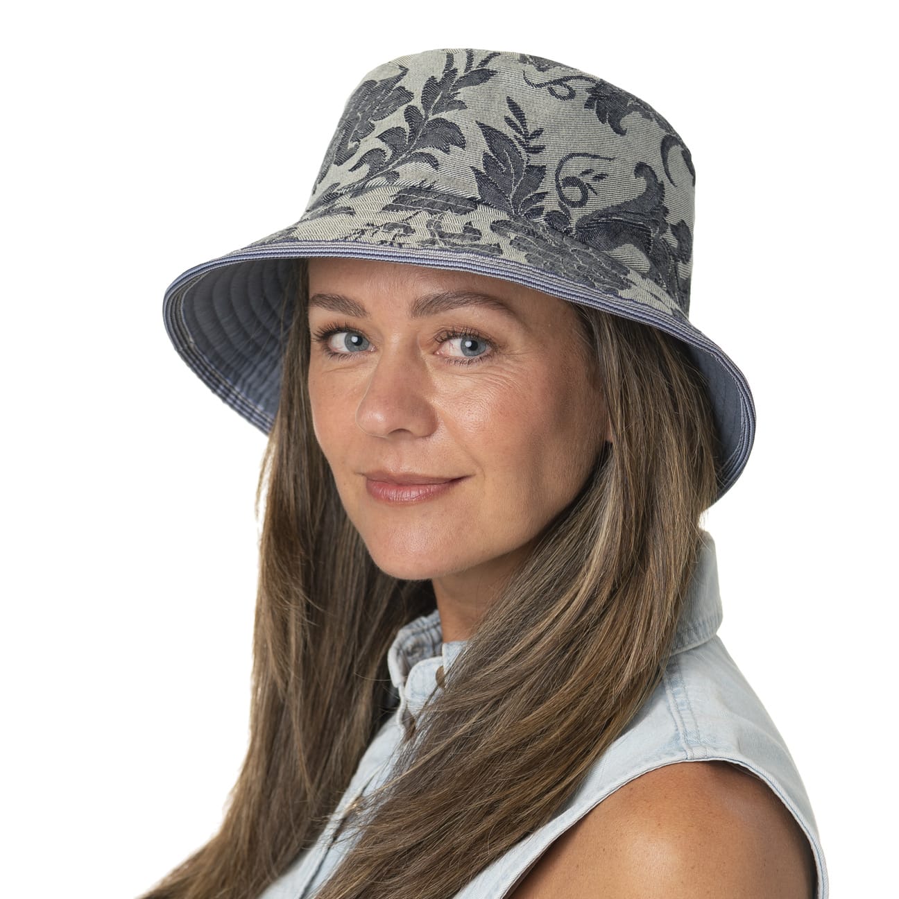 - Denim Flowers Reversible Hat by bedacht - denim 1