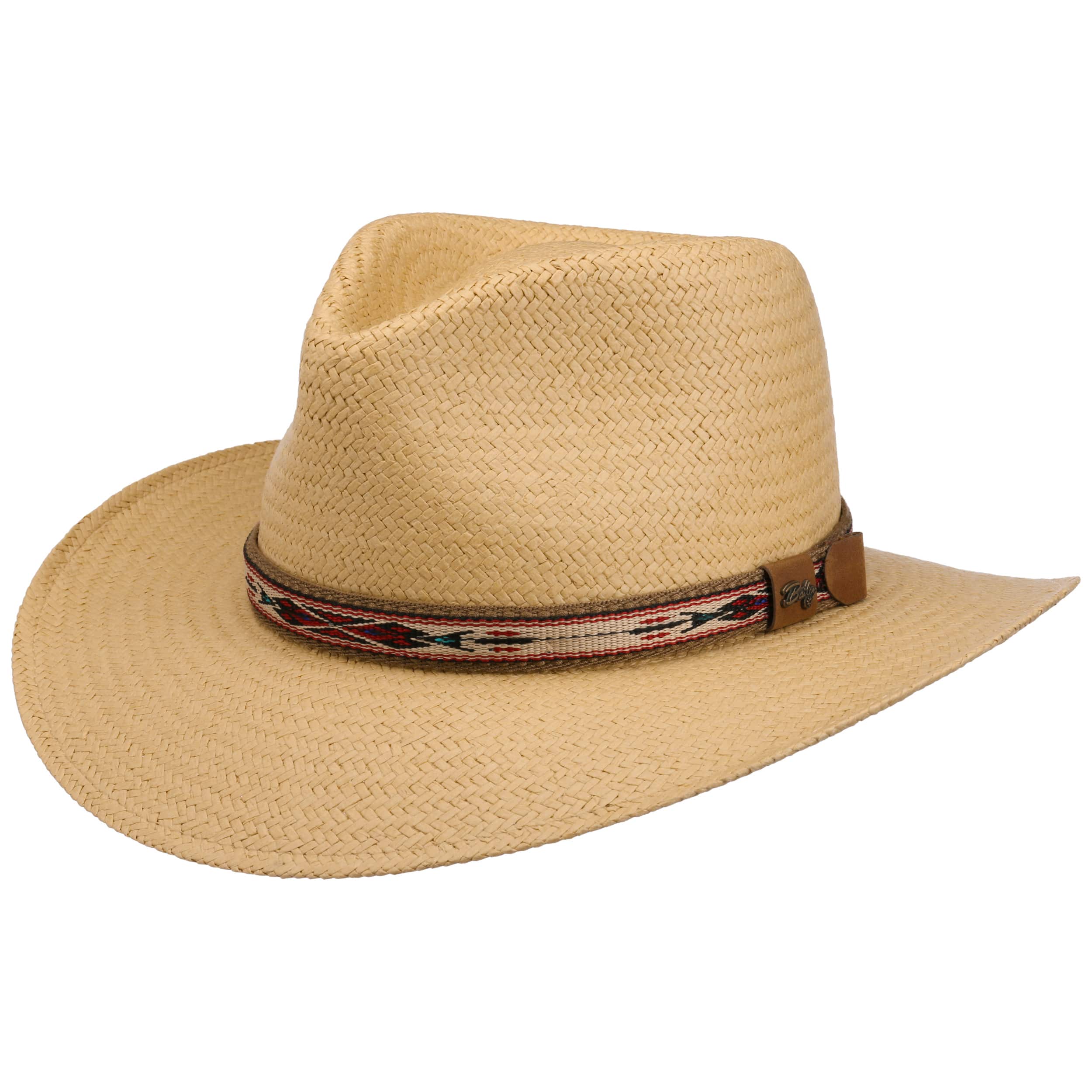 This high-quality straw hat from Bailey 1922 attracts attention with not only its opulent size and shape, but also with the cleverly designed trim band that comes in a traditional western look. Thanks to its unique craftsmanship and after-treatment, this handmade straw hat is also reliably water-repellent.