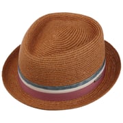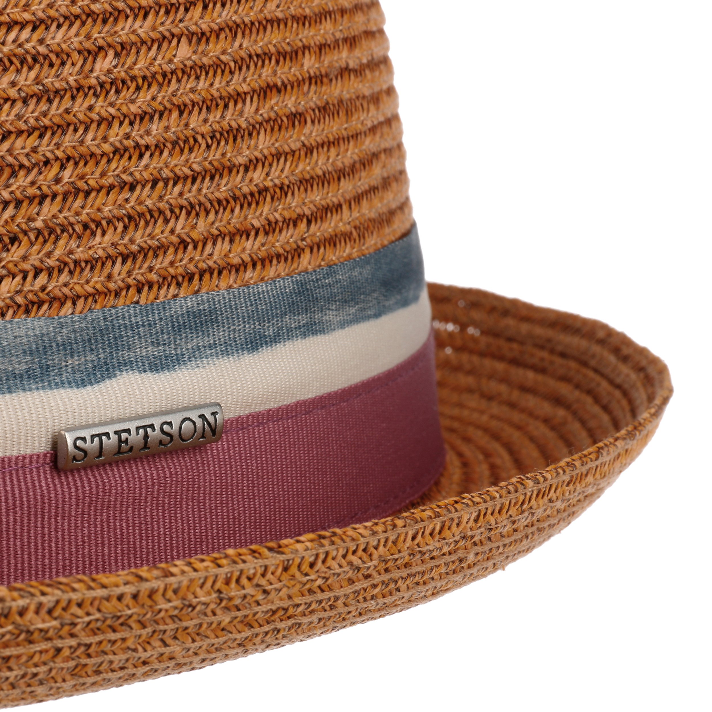 Stylish, modern and charismatic - this stylish hat from Stetson exudes a carefree esprit. It is primarily the hat’s high-quality material made of 100% Toyo straw that gives it its characteristically summery appearance. The subtle braided pattern looks both elegant and exciting. A wide trim band, which is decorated with multicoloured blocked stripes and a metallic logo emblem, rounds off the lively look.