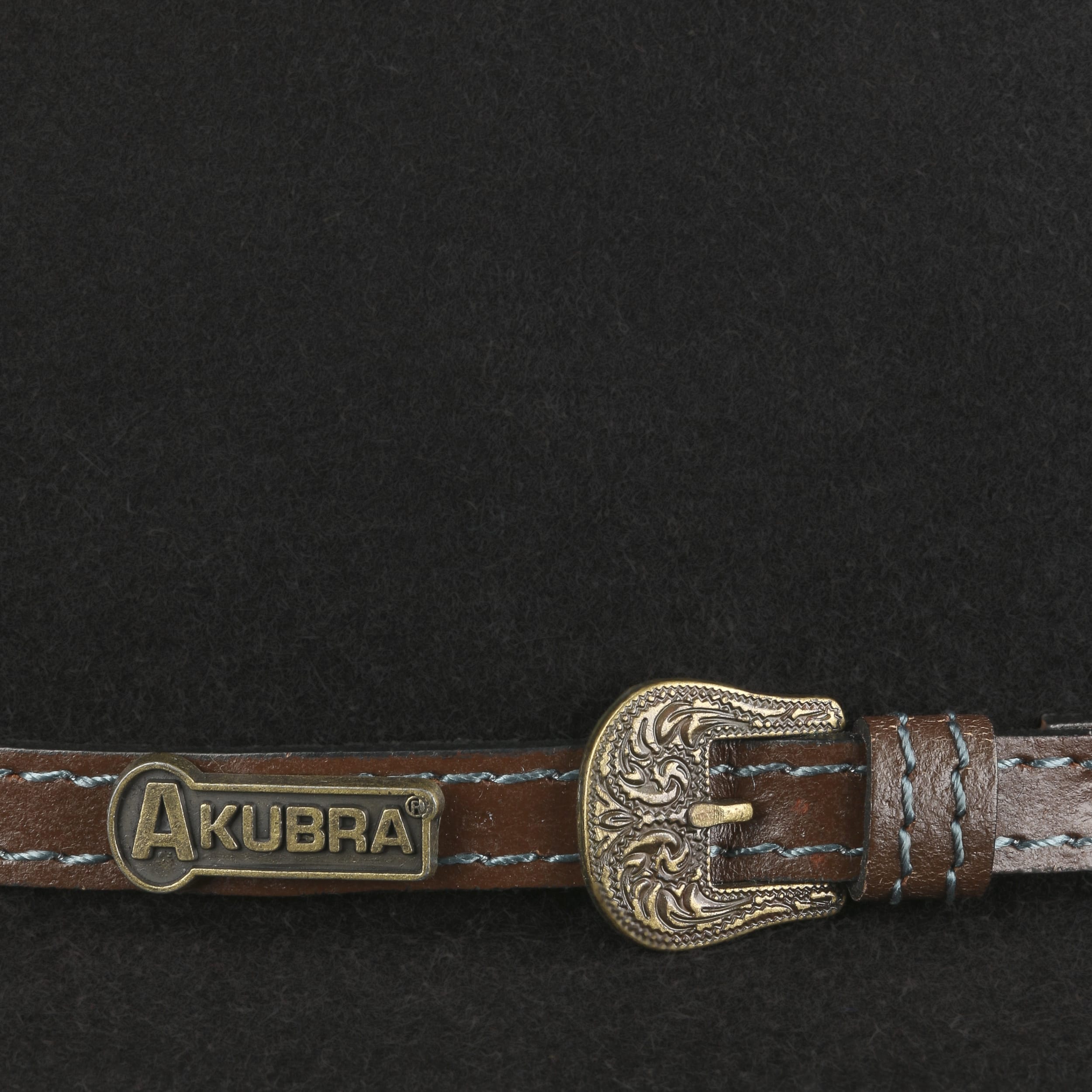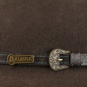 This classic cowboy hat from Akubra is made of 100% finest rabbit fur felt. This intricately manufactured felt hat is bound to win you over with its high level of wearing comfort and showerproof properties, which make it the perfect outdoor hat. The timeless leather trim band with buckle adds a visual accent and gives the hat a touch of sophistication.
