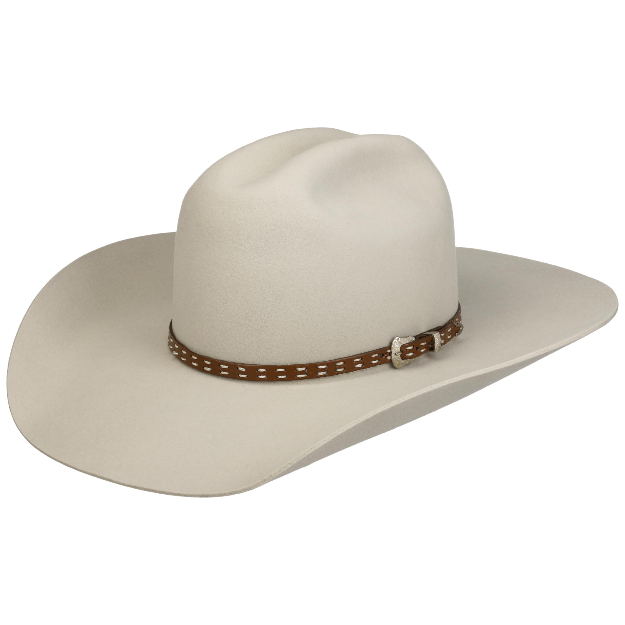 This Western hat with a high crown and distinctive centre pinch exudes the flair of legendary rodeo icons. The classic shape with wide brim from Bailey 1922 makes it an authentic companion for festivals or everyday life with a sense of style. Pure wool ensures a stable shape, while the soft inner lining supports a comfortable fit. An elaborately designed leather strap with a metal buckle emphasises the Western character. Made in the USA, this cowboy hat impresses with its confident originality.