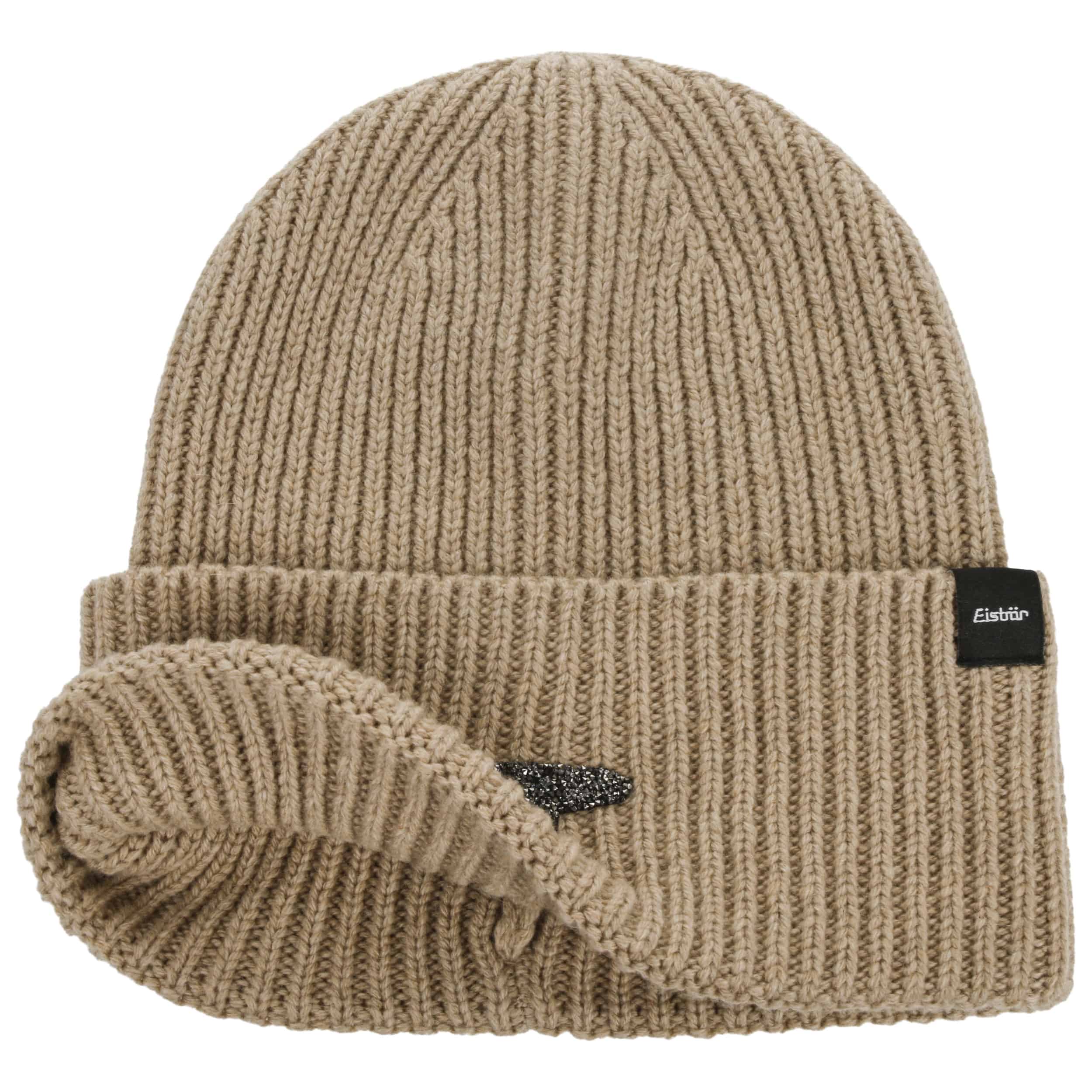 As official supplier of the Austrian national ski team, Eisbär makes high-quality sports hats, headbands and pullovers, using warm and functional knit and fleece fabrics. The identifying feature of the family-owned enterprise from Austria are extraordinary and funny styles in loud colours.- Elene Crystal Cashmere Beanie Hat by Eisbär - beige 1