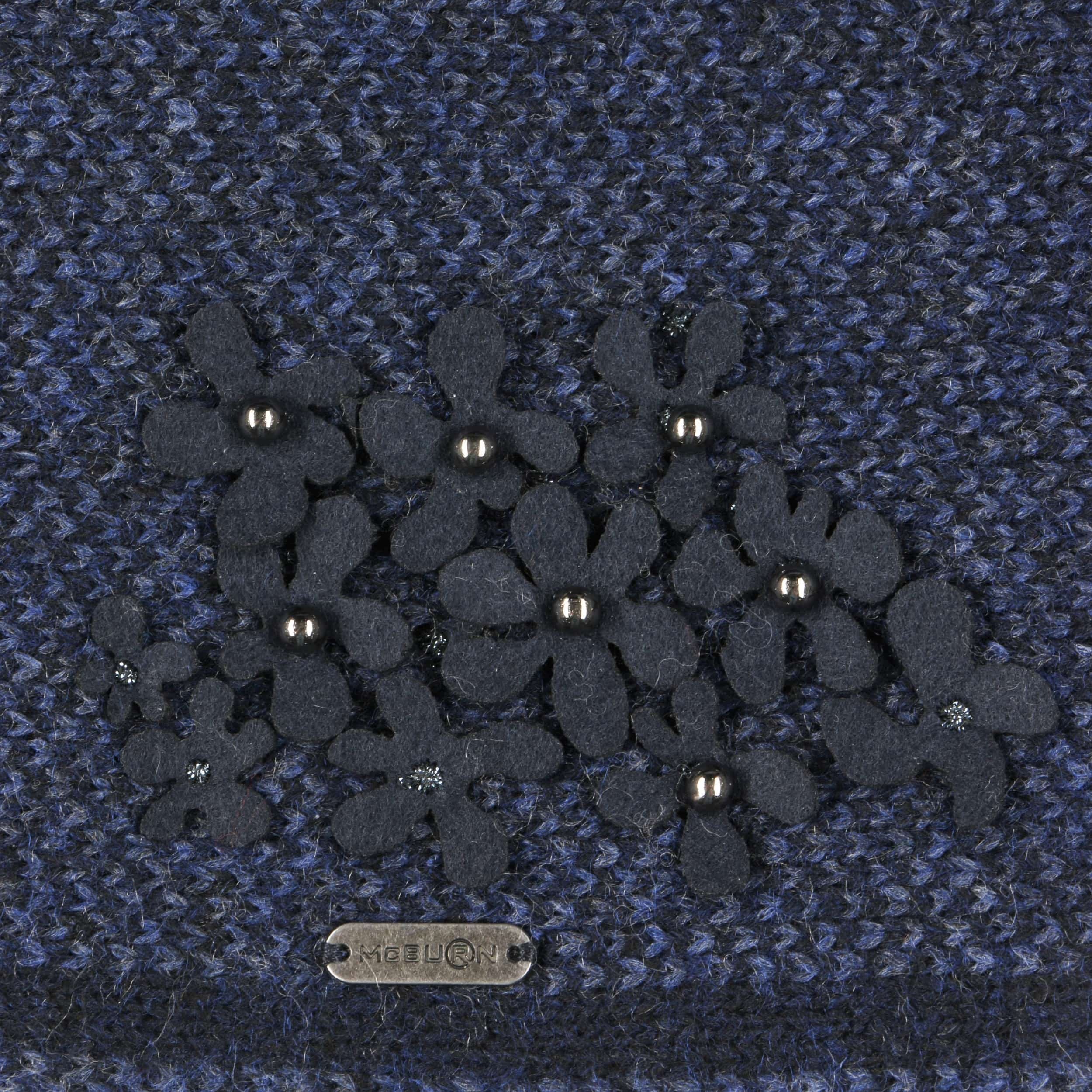 This high-quality hat from McBURN stylishly combines sporty and romantic-looking elements. While the minimalistic shape of a beanie looks sporty and casual, the pretty floral appliqué made of felt enhances the design with its spring-like charm. Numerous flowers, each decorated with a shiny metallic bead, exude an inspiring and dynamic esprit.