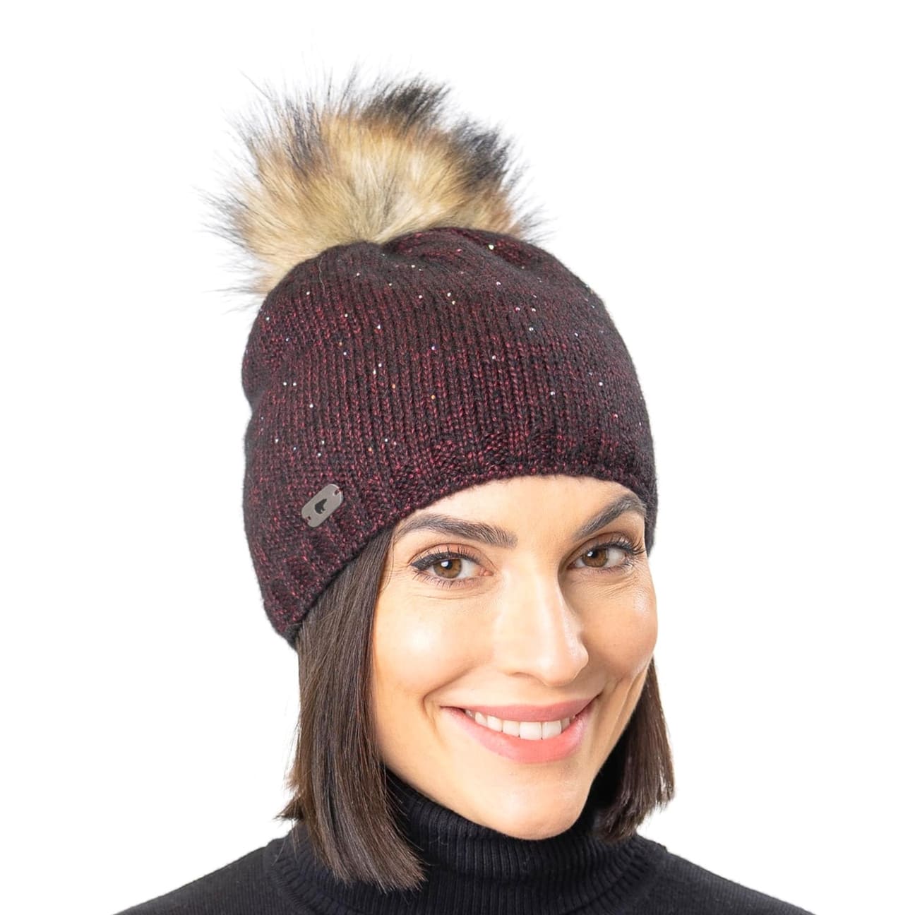 - Elma Lux Crystal Knit Beanie by Eisbär - burgundy-mottled 1