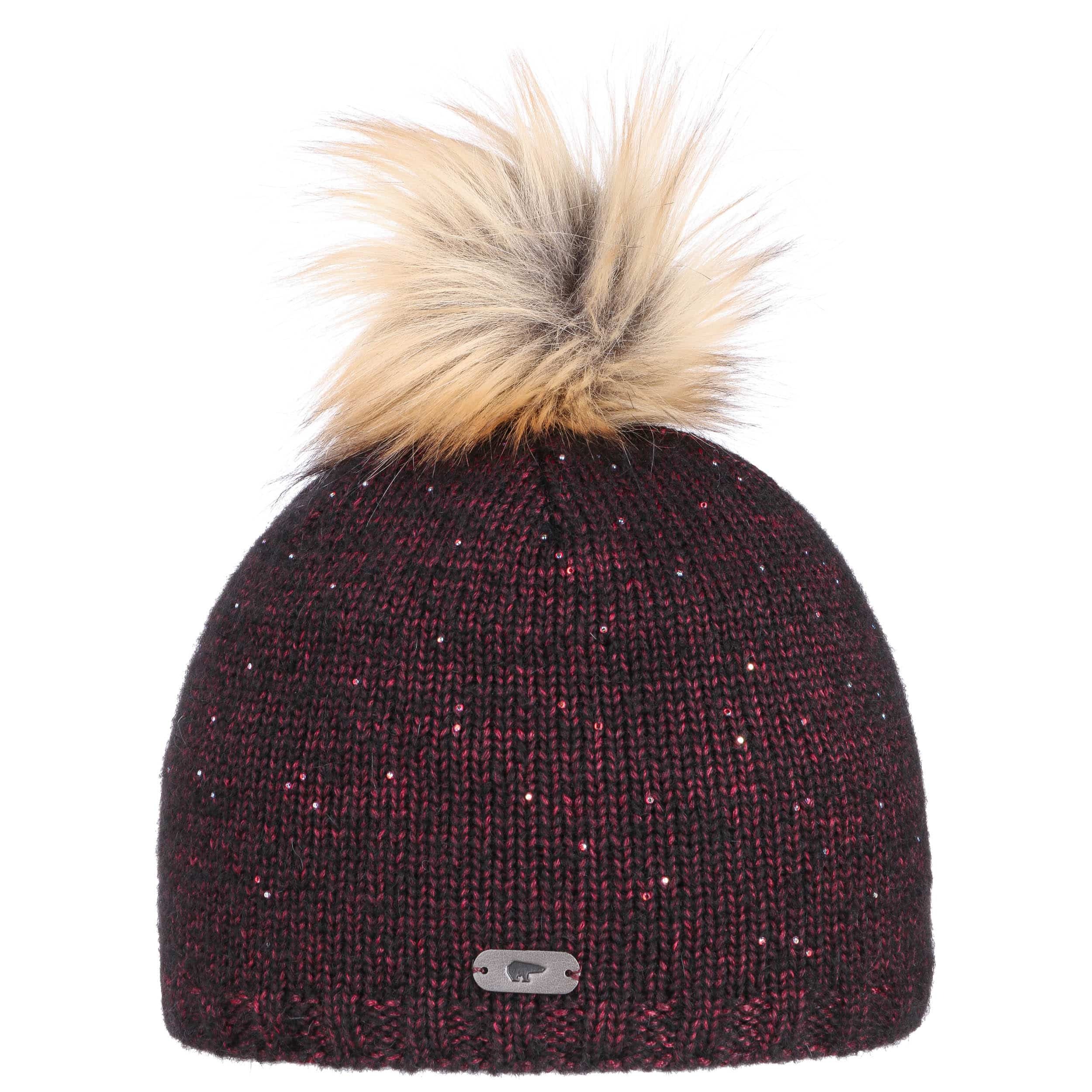 This knitted hat with a warming fleece lining from Eisbär brings joy to dreary winter days. With its large pompom made of fluffy fake fur and a shiny metallic logo emblem, this fashionable beanie draws all eyes to it. A decorative highlight is the countless small sequins that decorate the heathered material. These are reminiscent of thawing snowflakes.