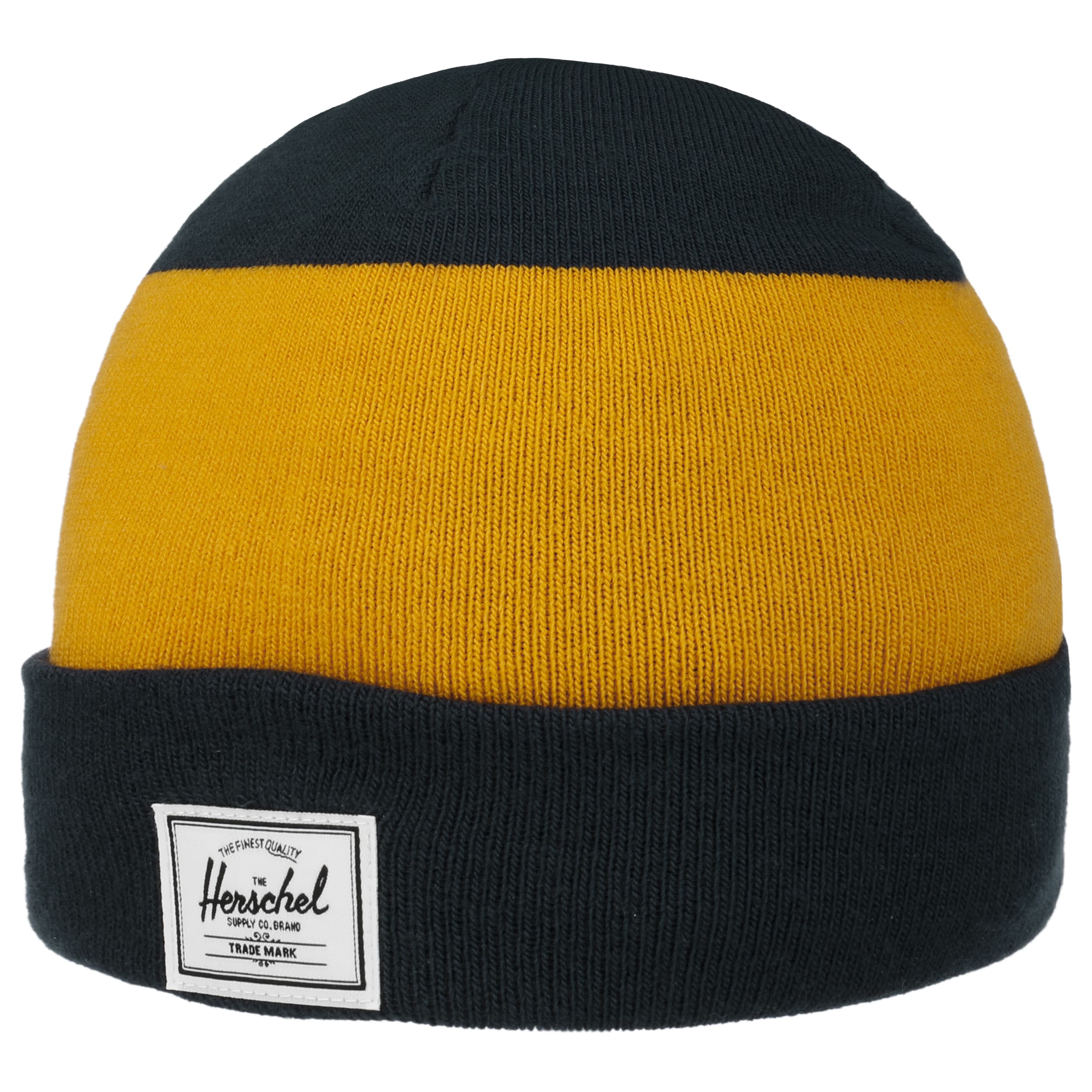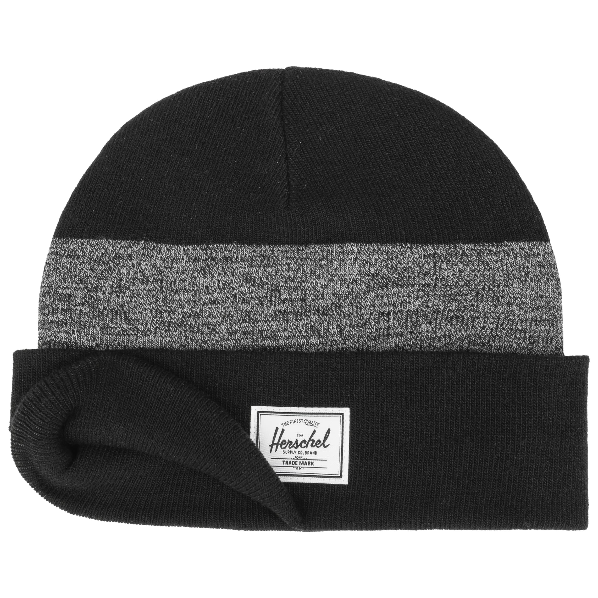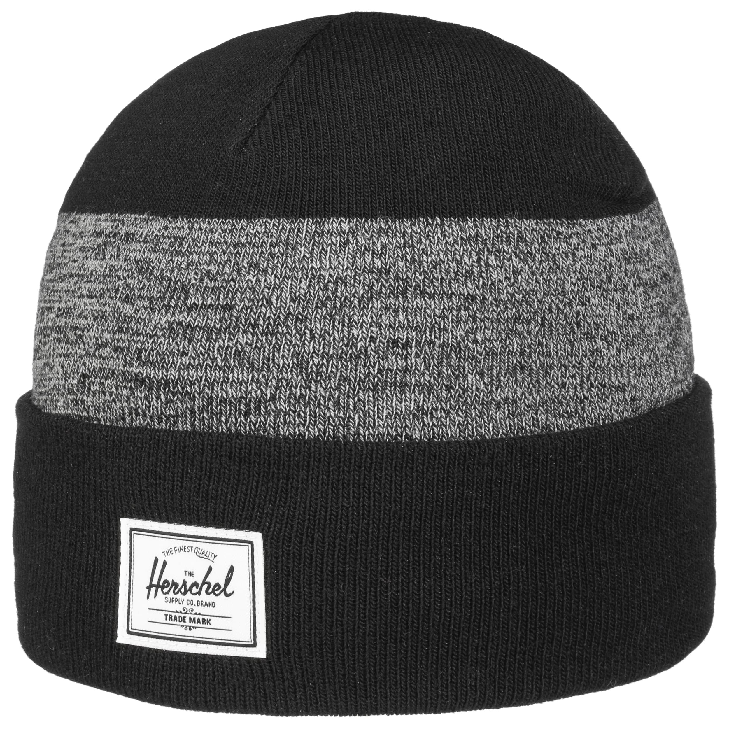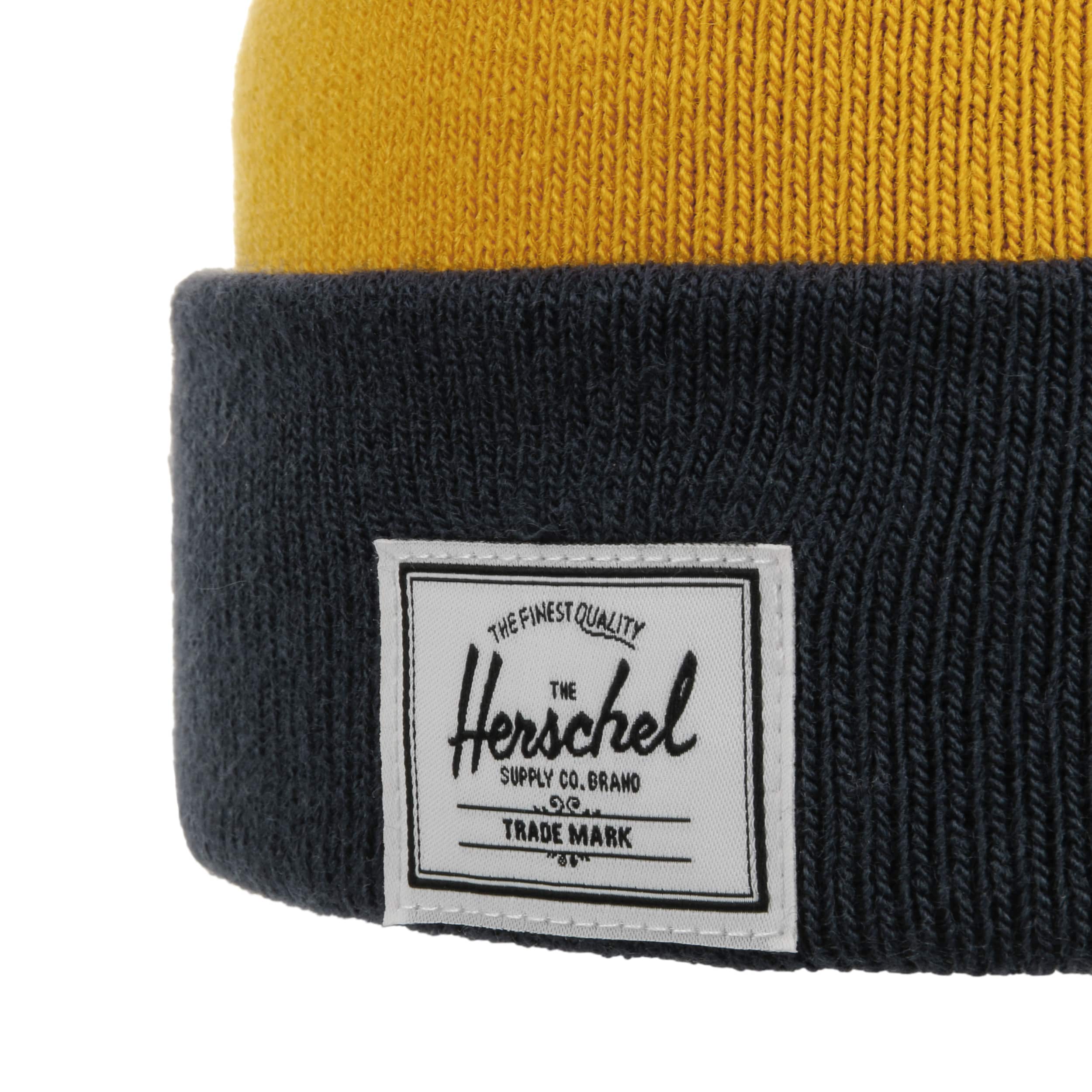 The beanie from Herschel is a classic with a characteristic vintage design. The soft, stretchy material adapts flexibly to the shape of the head and provides reliable protection against the cold. A wide turn-up and block stripes give the hat a timeless charm. The design is rounded off by the woven Herschel Supply label on the front. The practical turn-up hat is the perfect companion for chilly days.