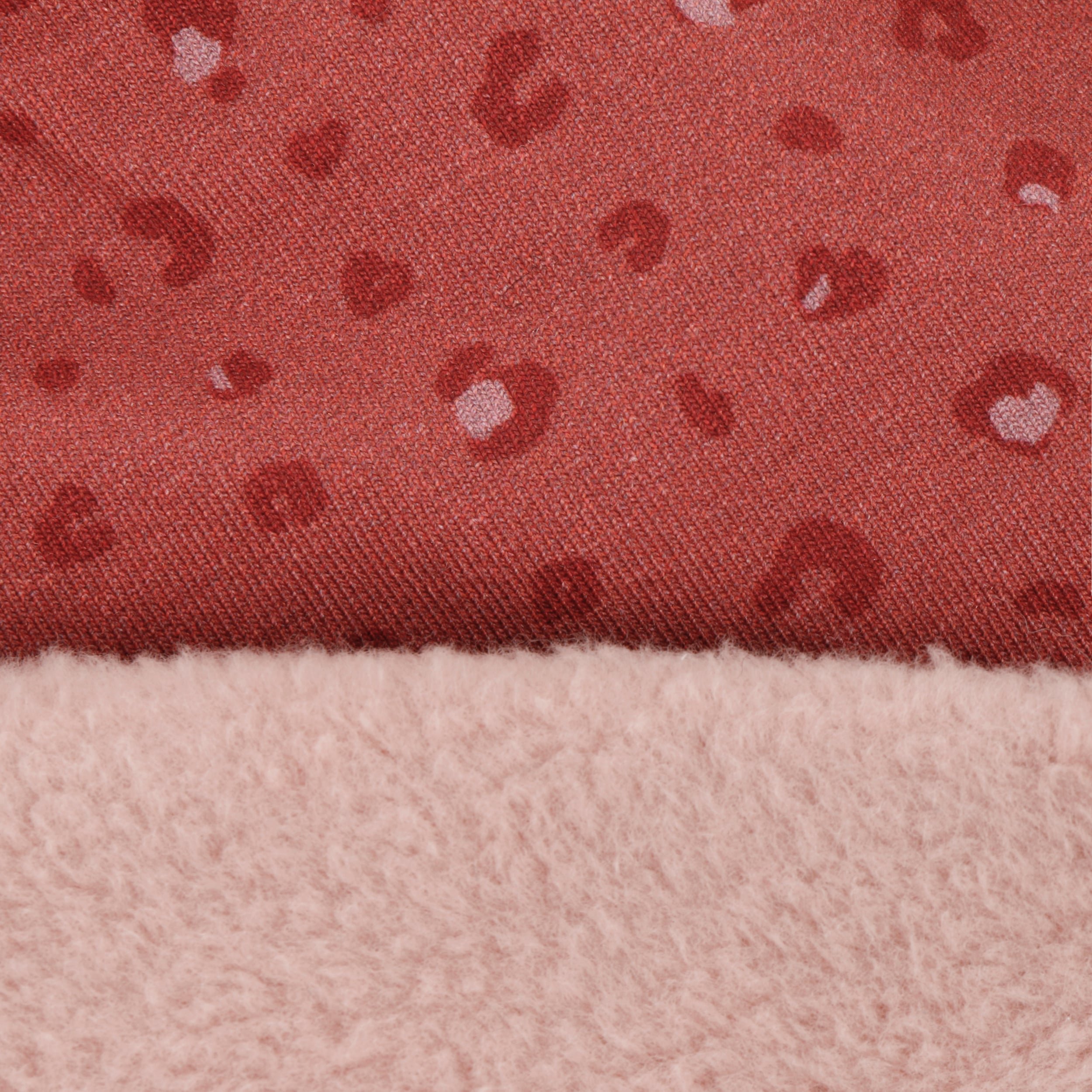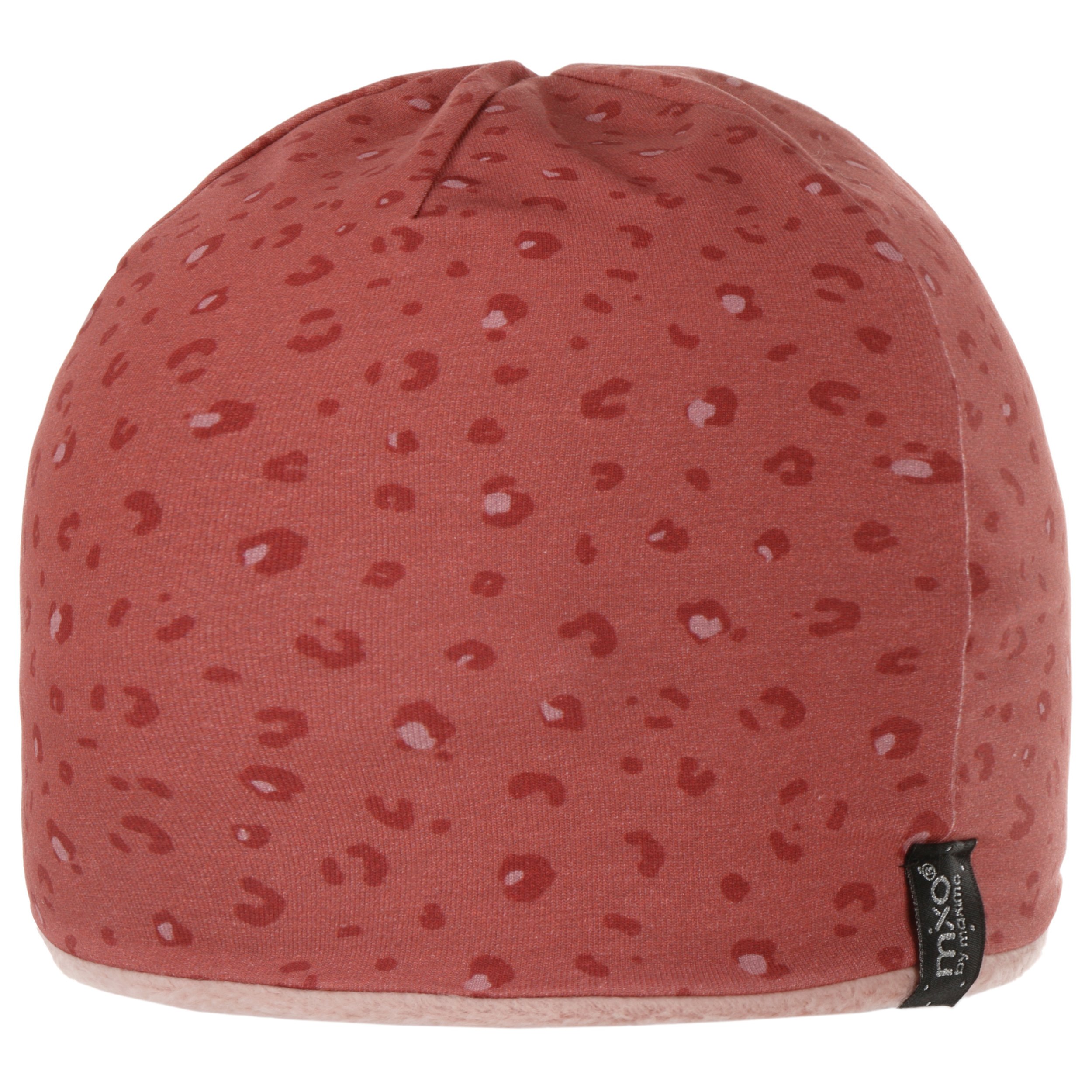 One side of the beanie is made entirely of cotton, the other is made of cotton with a stretchy finish. The reversible cap can be worn on both sides: Either the young lady wears the beautiful pattern for show and enjoys the fluffy plain inside or the smooth patterned side nestles against the head and the plush side complements their favourite outfit.