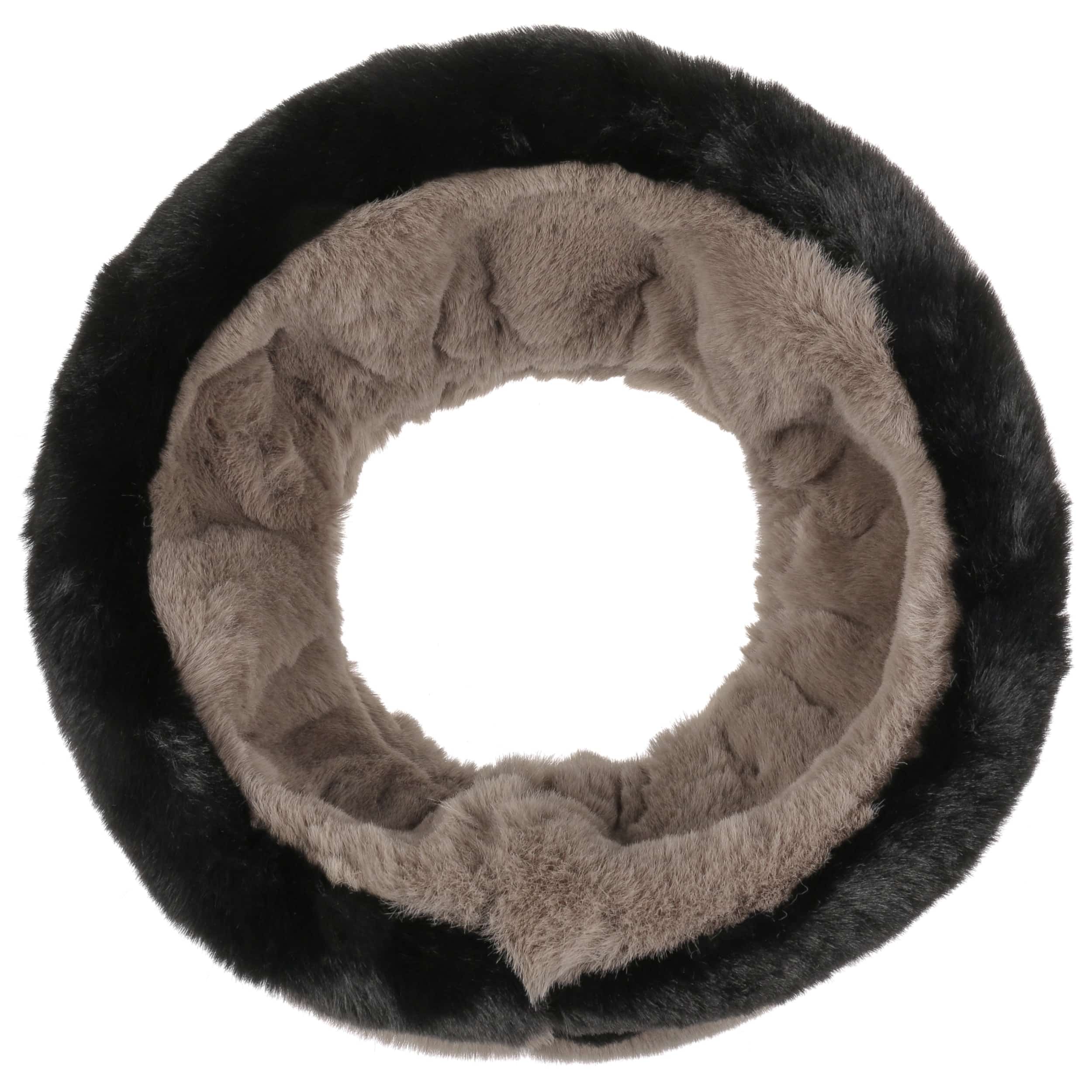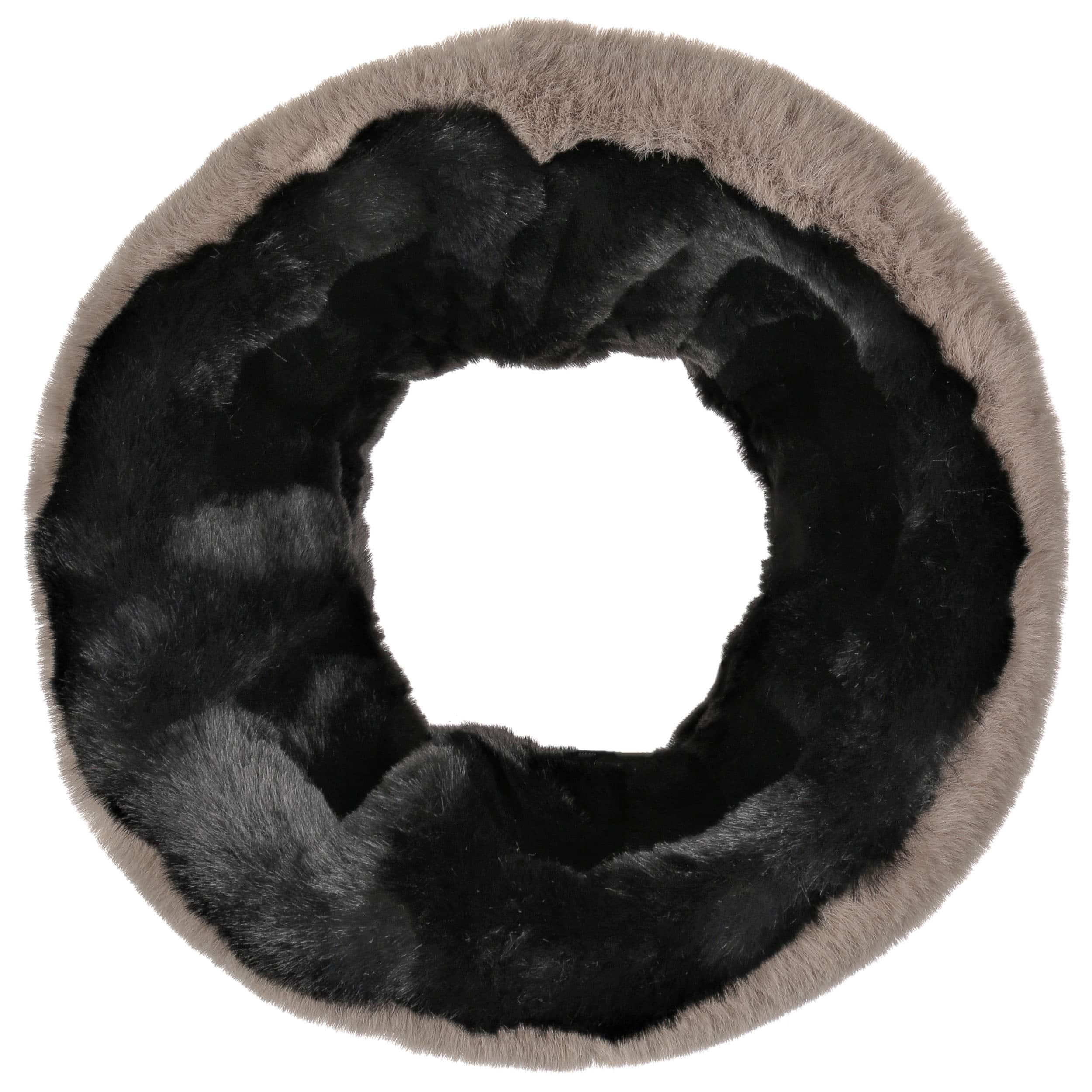 - Fake Fur Loop Reversible Scarf - black-grey 1