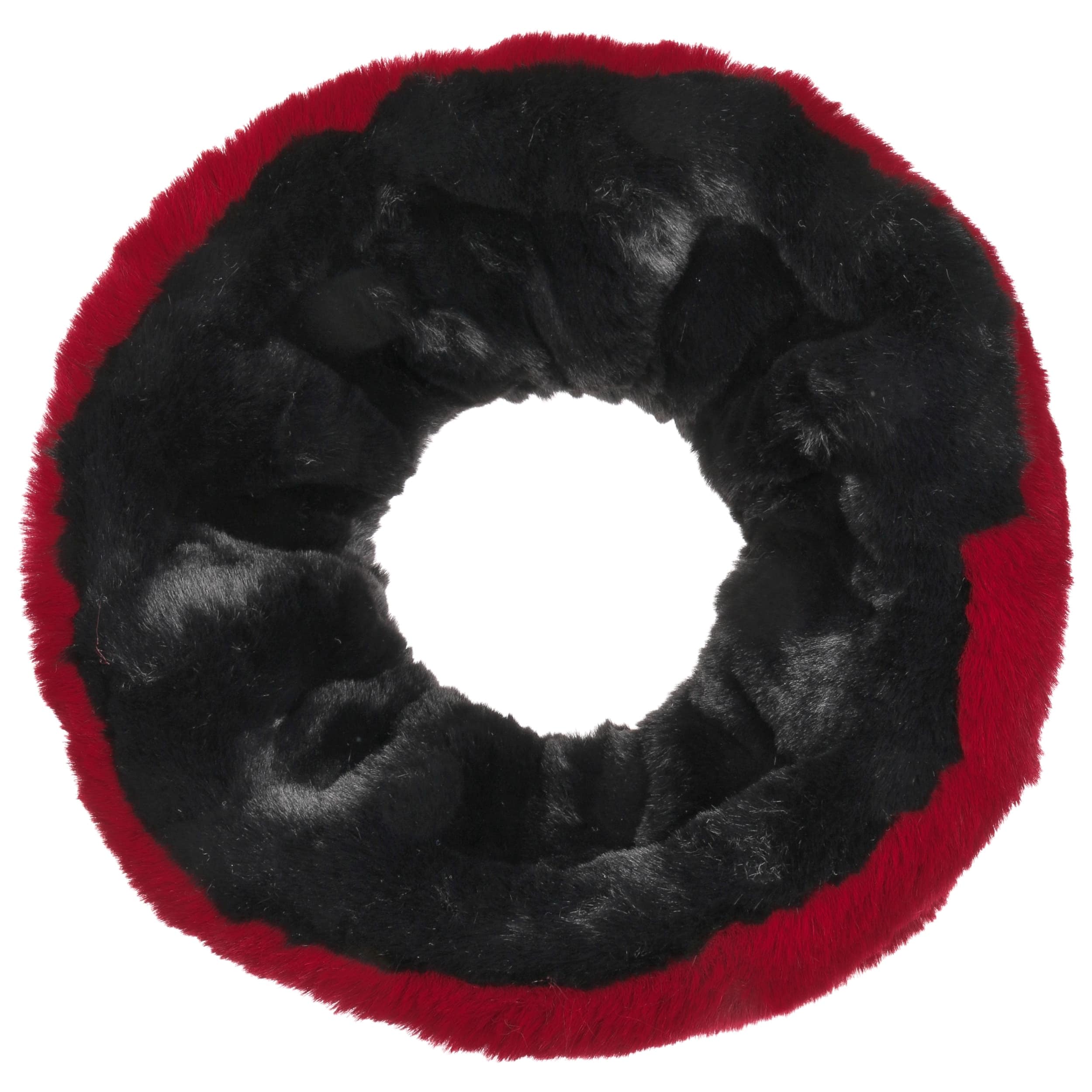 Our own brand provides a fresh selection of trendy headwear and fashion accessories: army and baseball caps, flat caps, baker boy hats, trilbies, fedoras, Western and cowboy hats, bucket hats, berets, beanies, scarves and gloves as well as care products. We offer you both classic and fancy designs in high quality at a more than reasonable price. Our exquisite selection is for people of sophisticated taste at the pulse of the time.- Fake Fur Loop Reversible Scarf - black-red 1