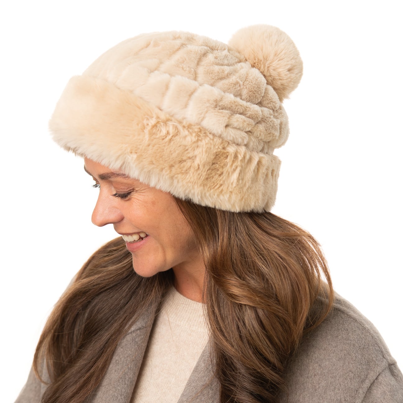 - Fake Fur Pompom Hat by Seeberger - beige 4