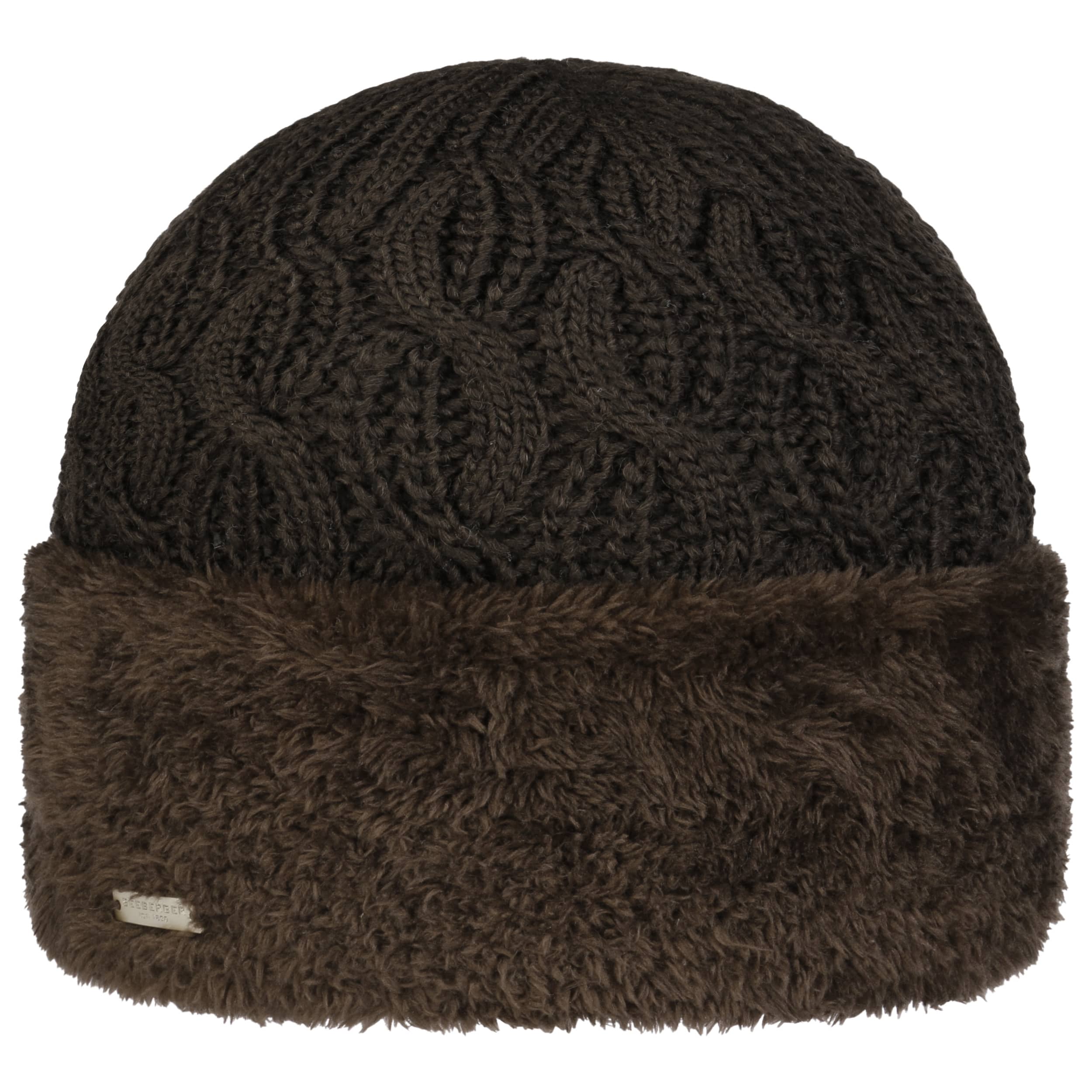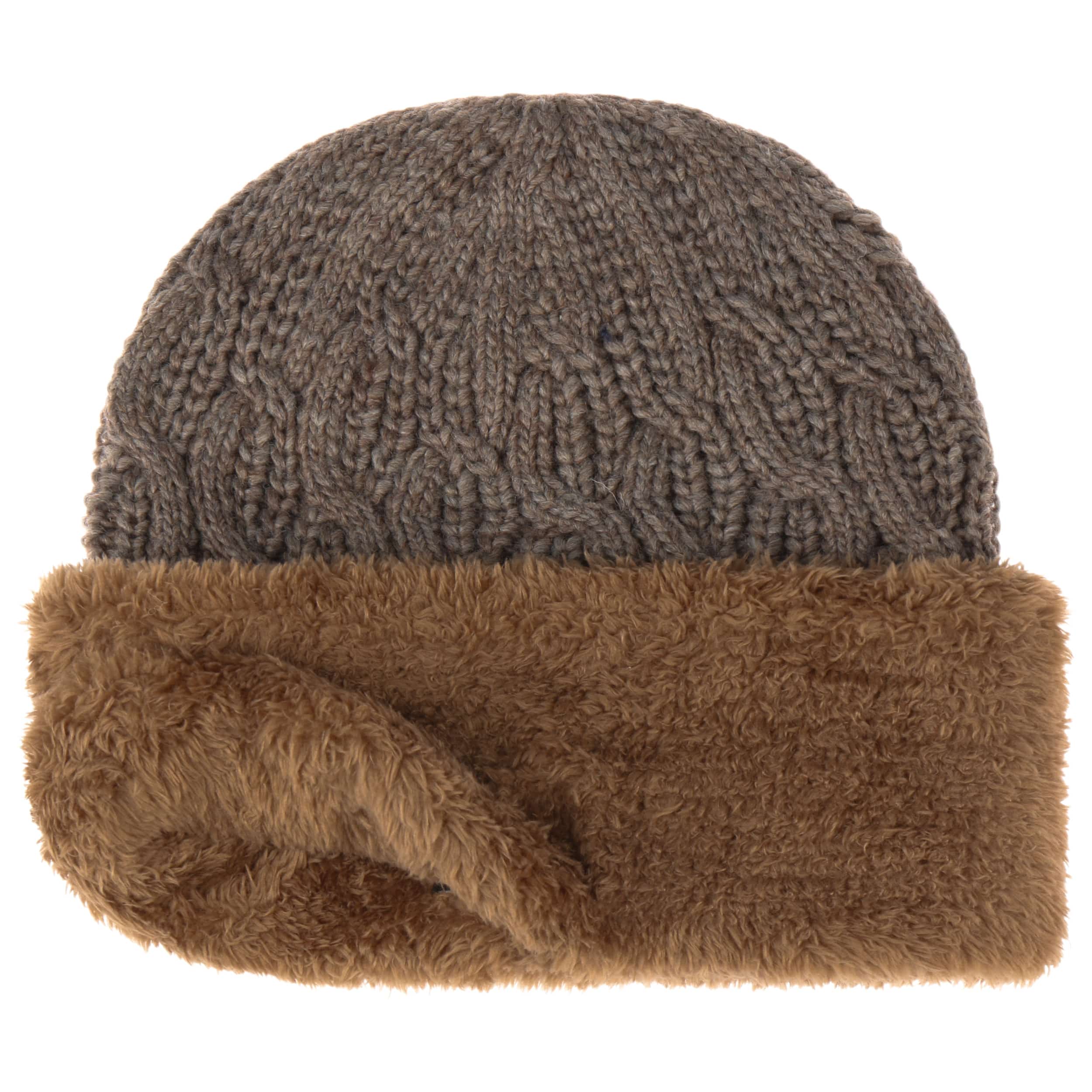 - Faux Fur Cuff Knit Hat by Seeberger - dark brown 1