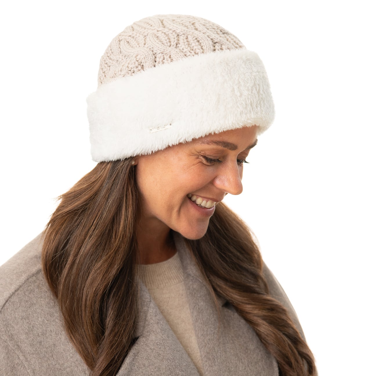 - Faux Fur Cuff Knit Hat by Seeberger - oatmeal 2