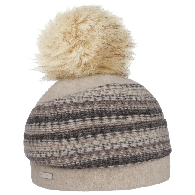 The family-owned entreprise from Allgaeu established in 1890 is known for stylish and timeless women's headwear. Using sophisticated fabrics pleasant to wear, Seeberger stands for very feminine, eye-catching women's hats: winter caps, cloth hats as well as different types of baker boy hats, broadbrimmed hats and berets.- Faux Fur Pom Milled Wool Hat by Seeberger - beige 1
