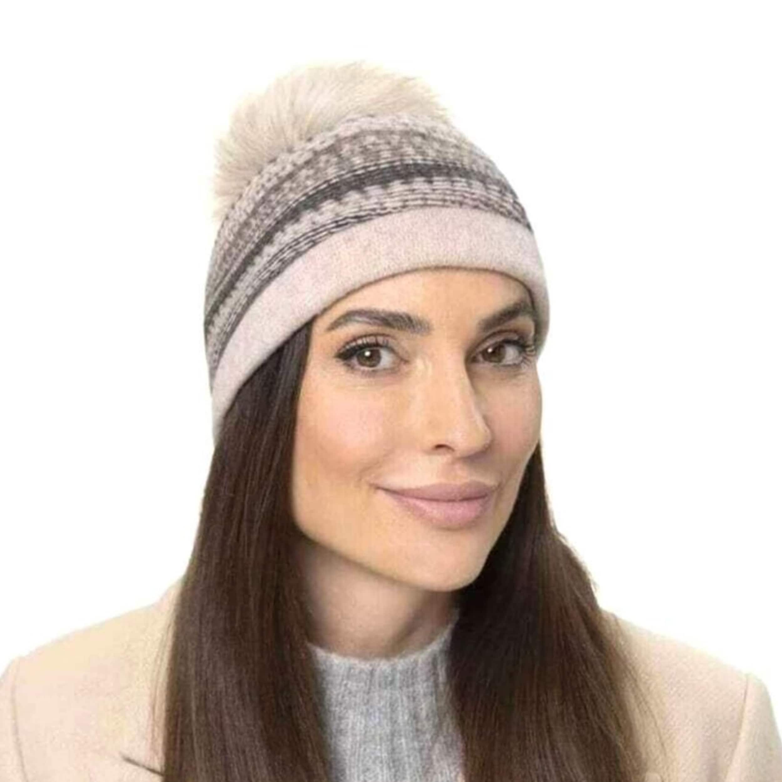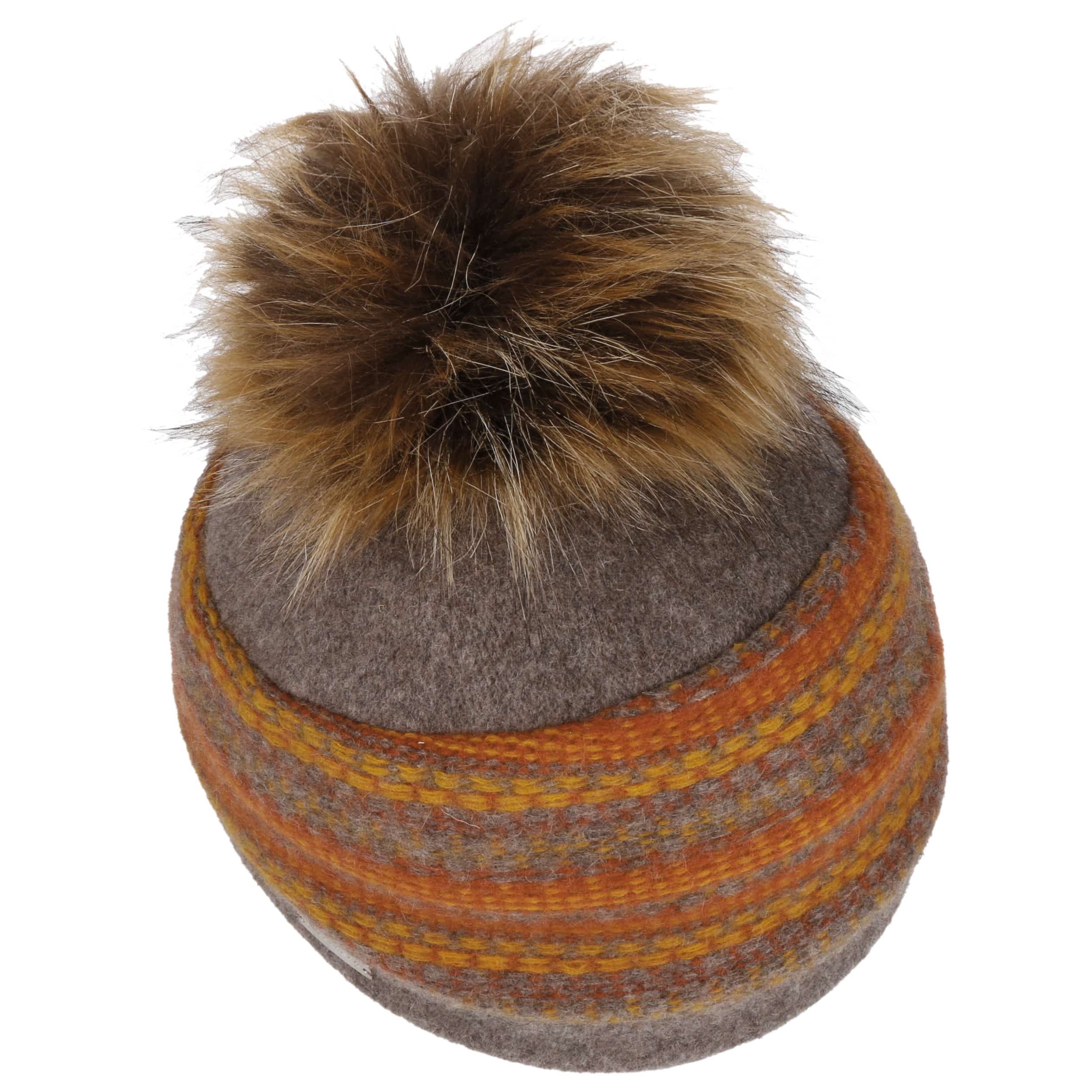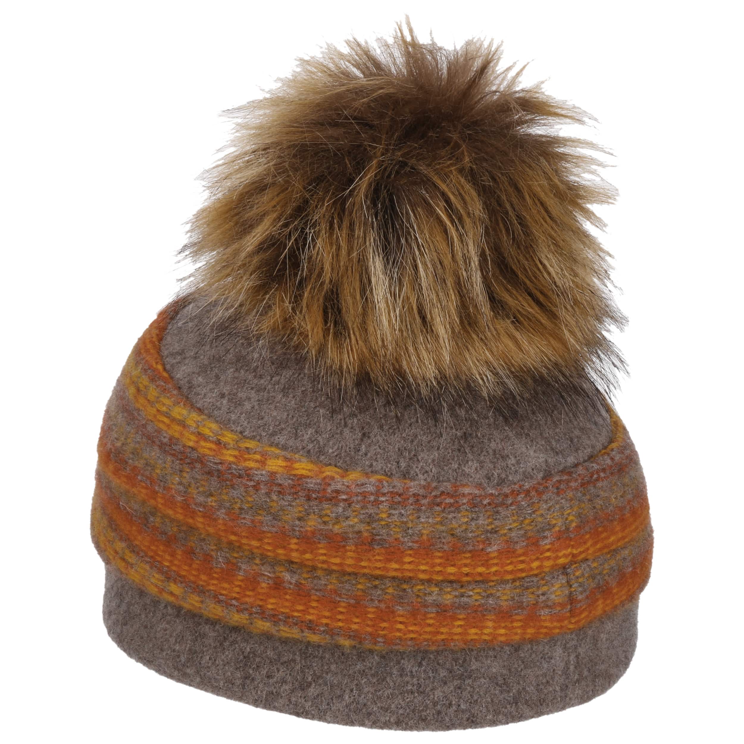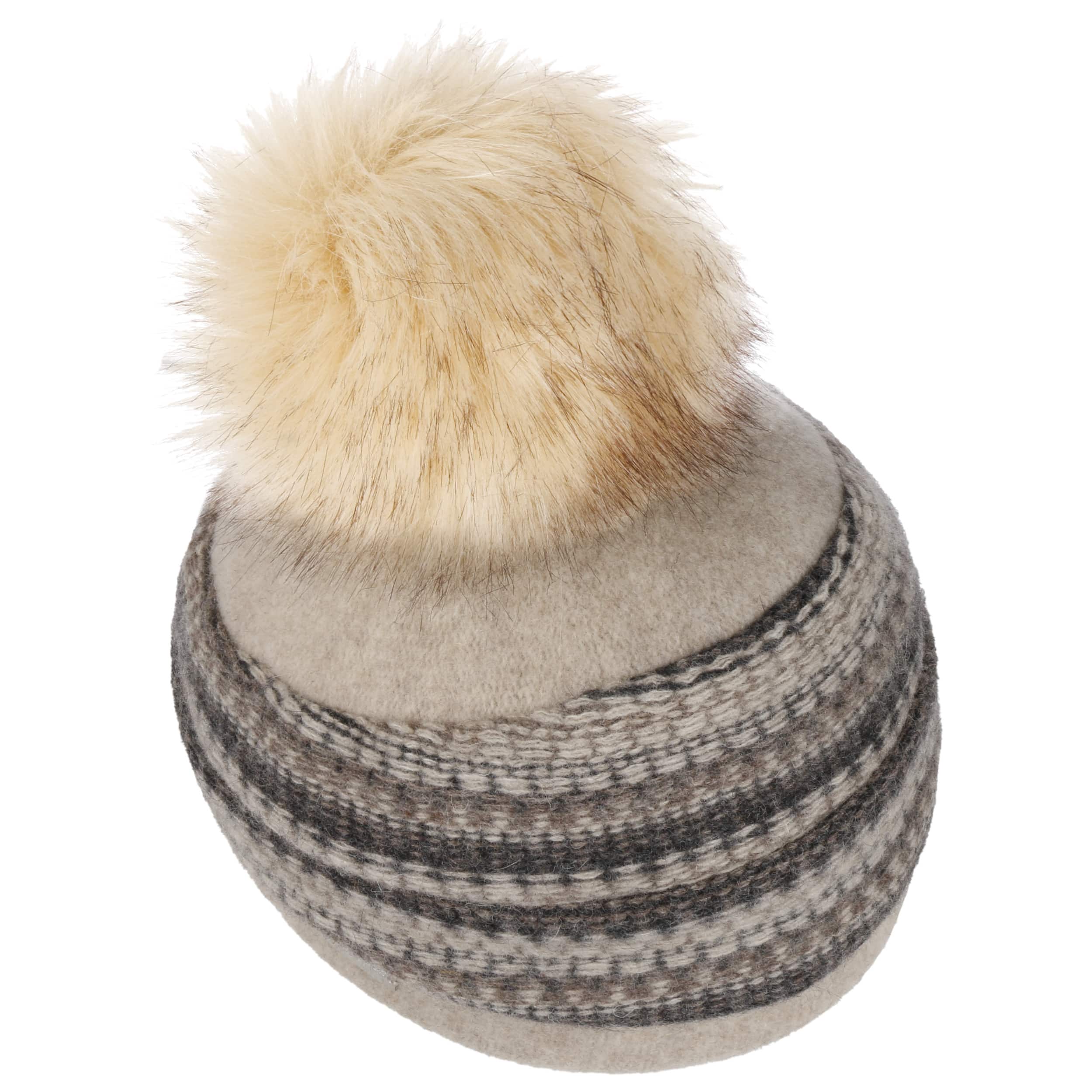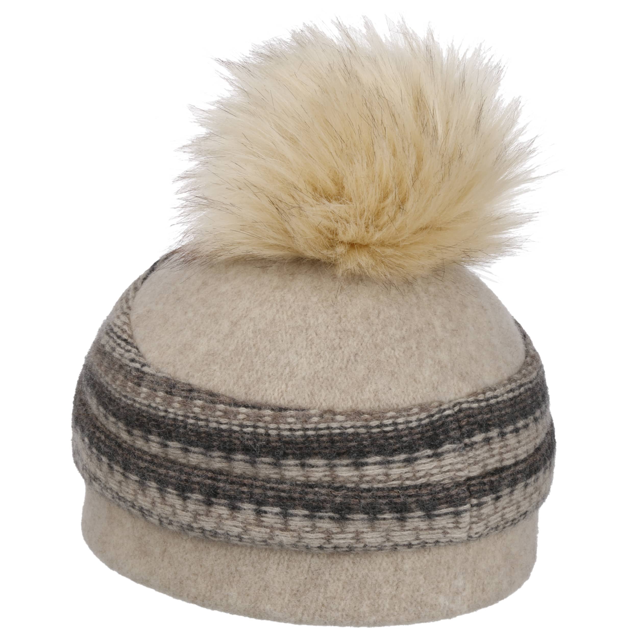 With integrated stretch lining band. Pom-pom made of high-quality faux fur.
