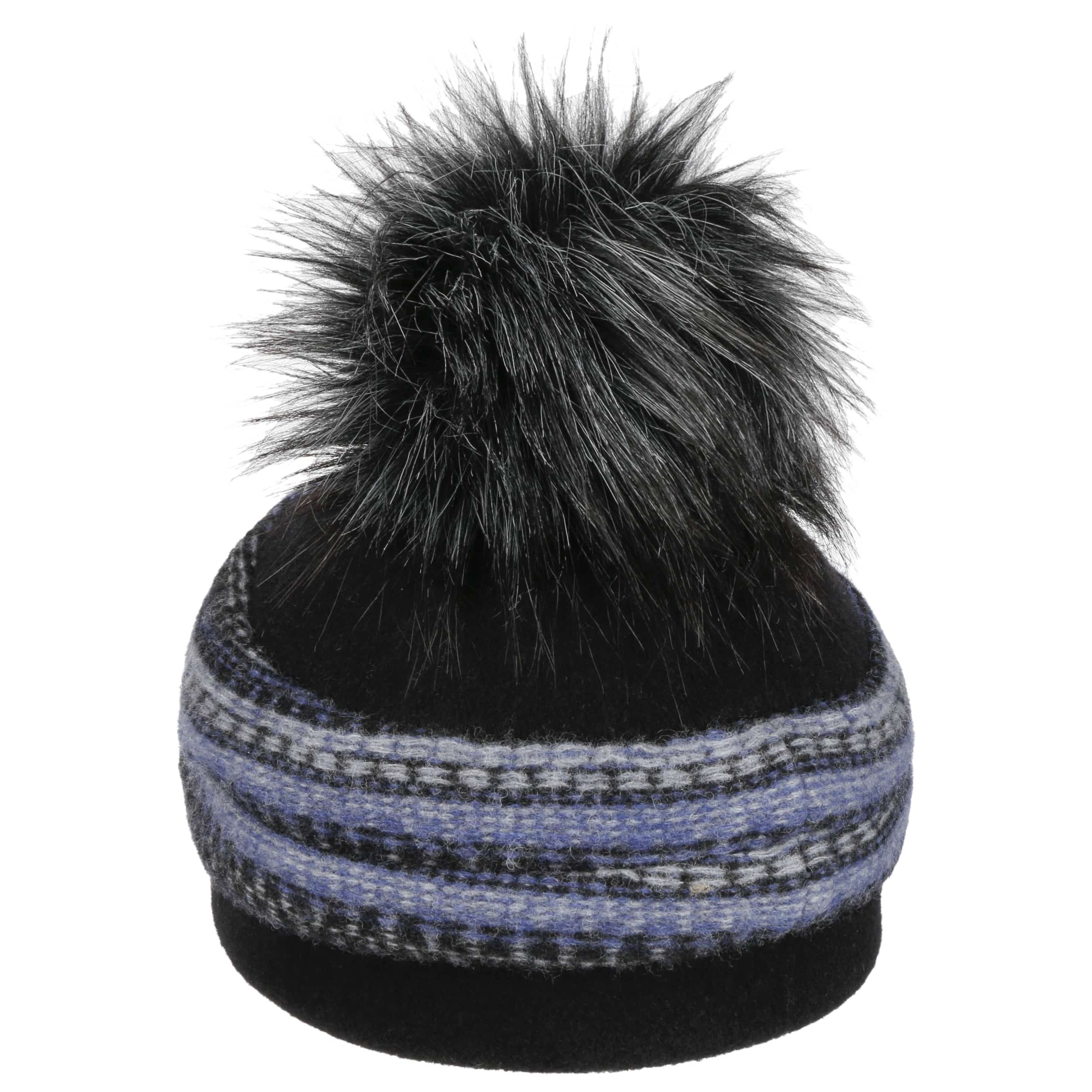 - Faux Fur Pom Milled Wool Hat by Seeberger - navy 5