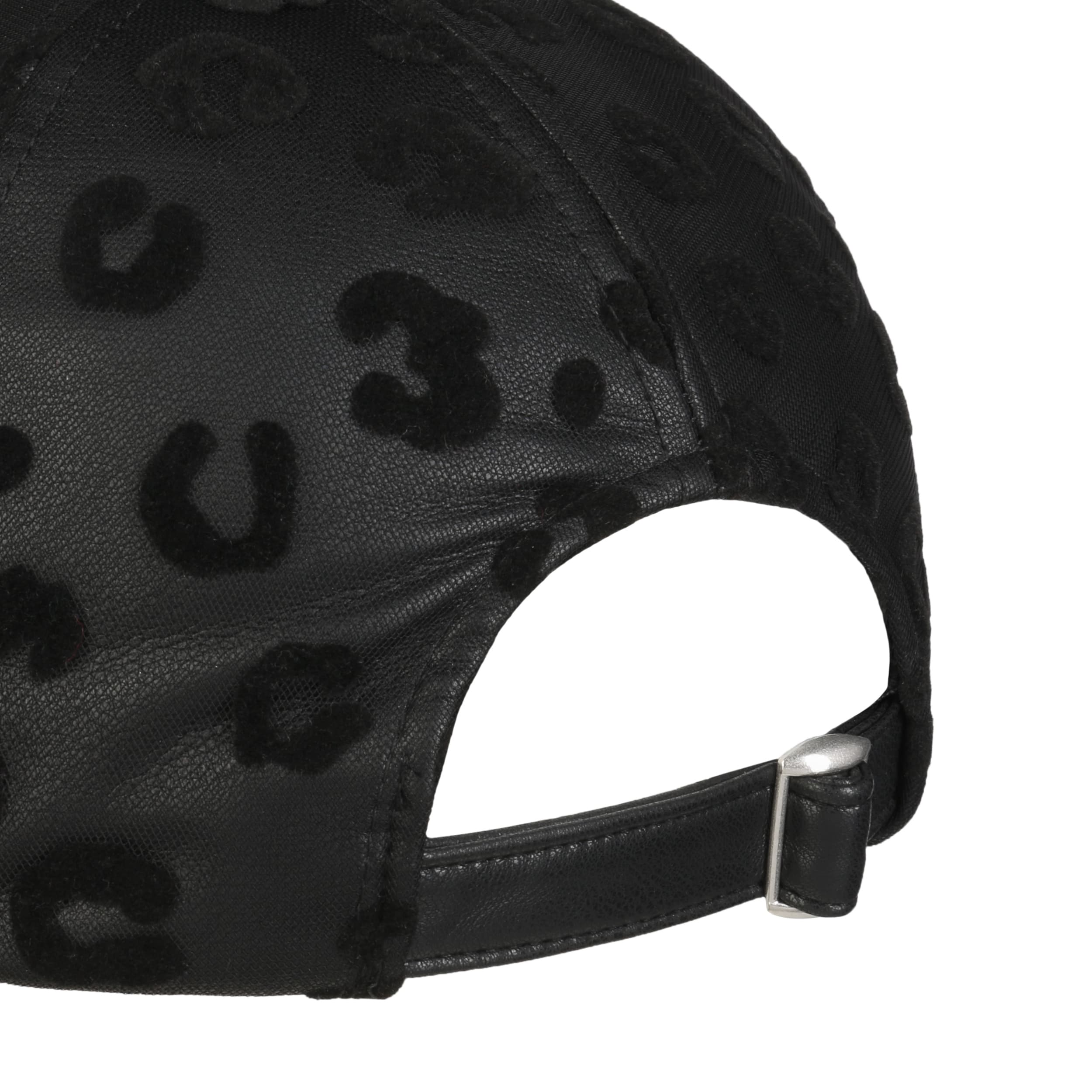 - Faux Leather Leo Print Cap by Seeberger - black-black 4
