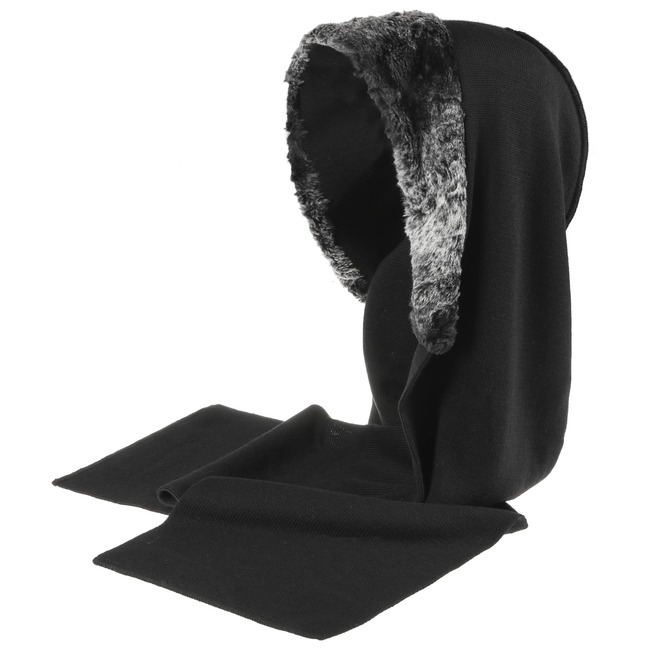 This German-made hooded scarf from Gebeana impresses with its practical 2-in-1-design. A hood is cleverly incorporated into the comfortably soft scarf. This is marked out by an attractive trim of voluminous fake fur, which stands out in colour from the rest of the accessory. The elegantly restrained design makes this high-quality accessory into an attractive companion for many different occasions.