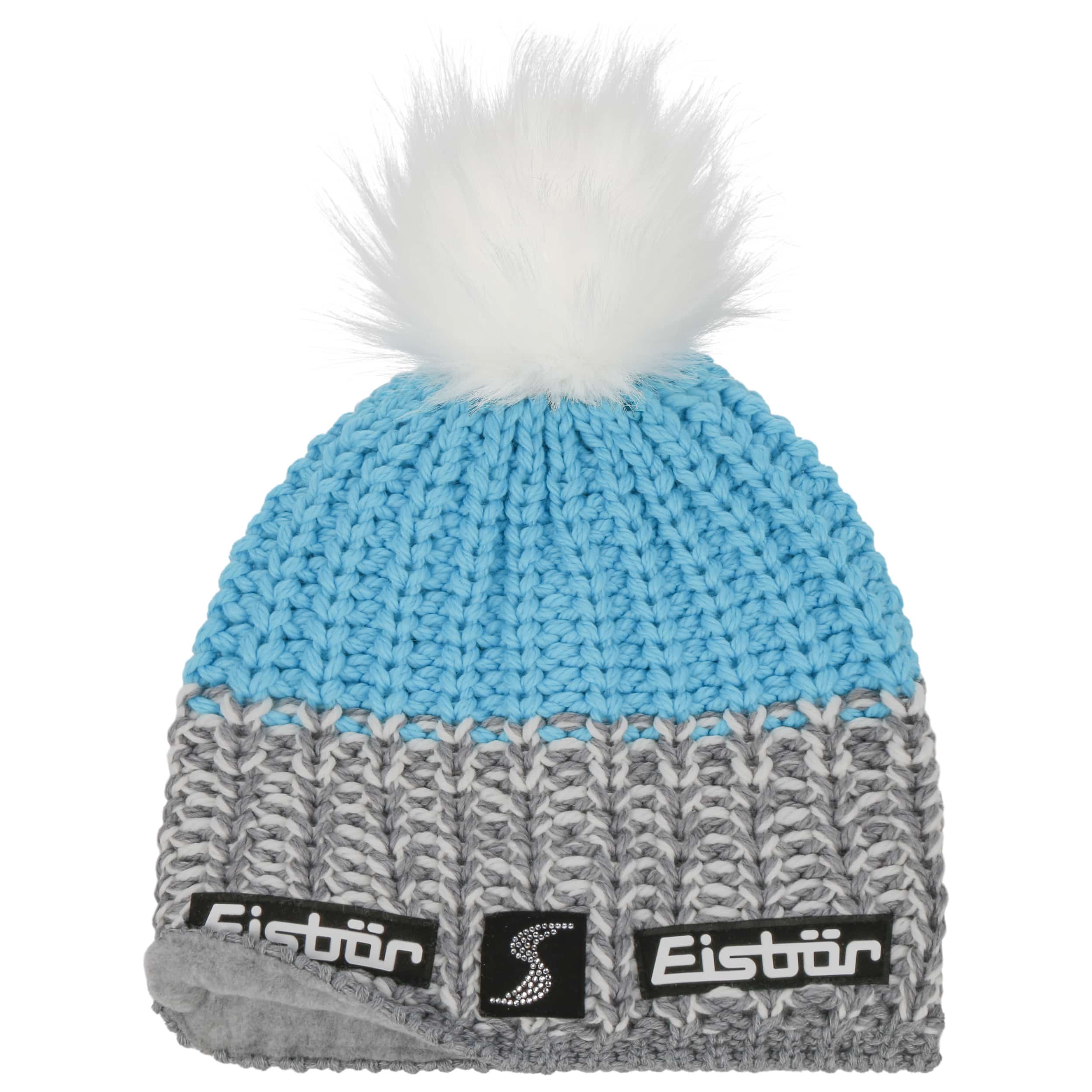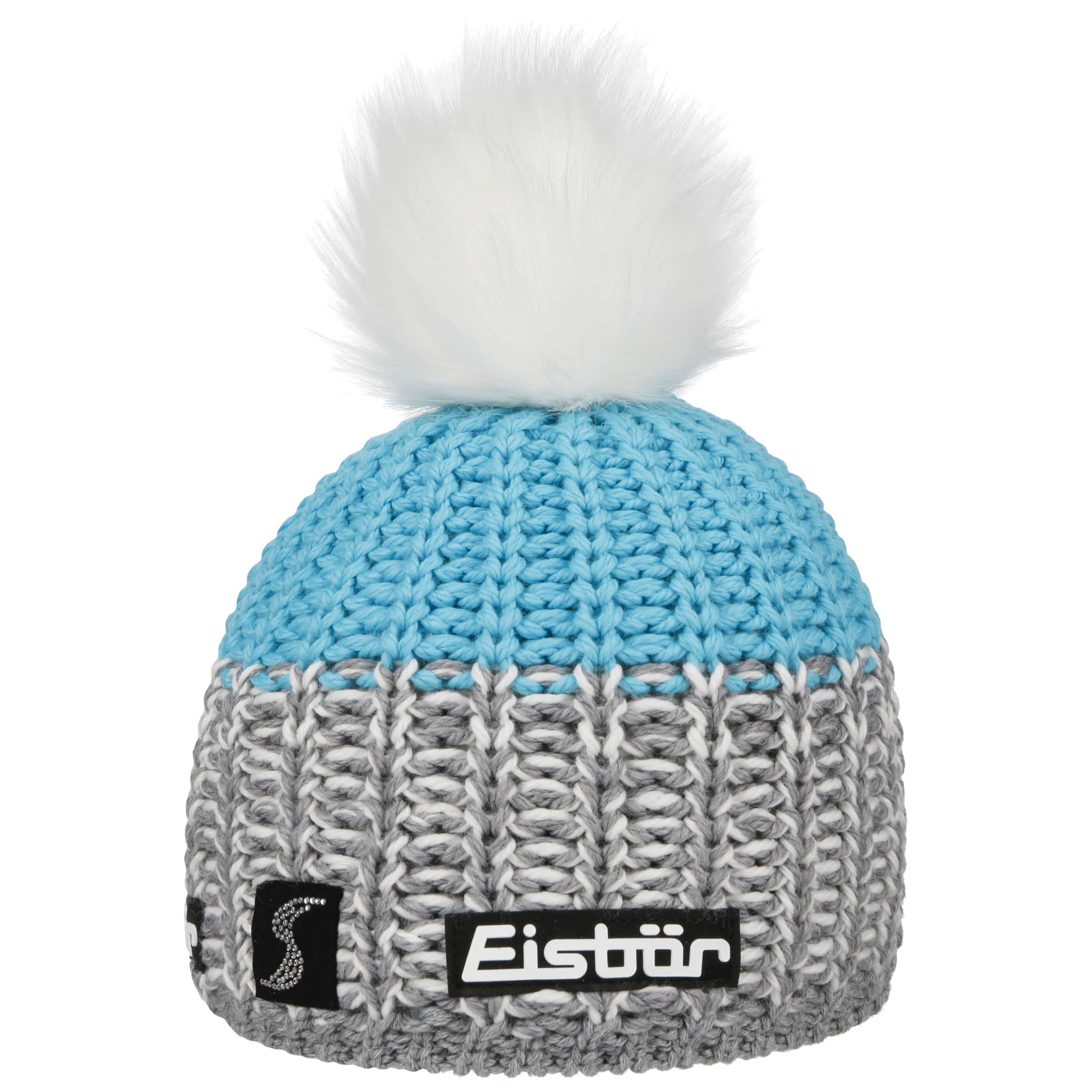As official supplier of the Austrian national ski team, Eisbär makes high-quality sports hats, headbands and pullovers, using warm and functional knit and fleece fabrics. The identifying feature of the family-owned enterprise from Austria are extraordinary and funny styles in loud colours.- Focus Lux Crystal Skipool Beanie by Eisbär - blue-grey 1