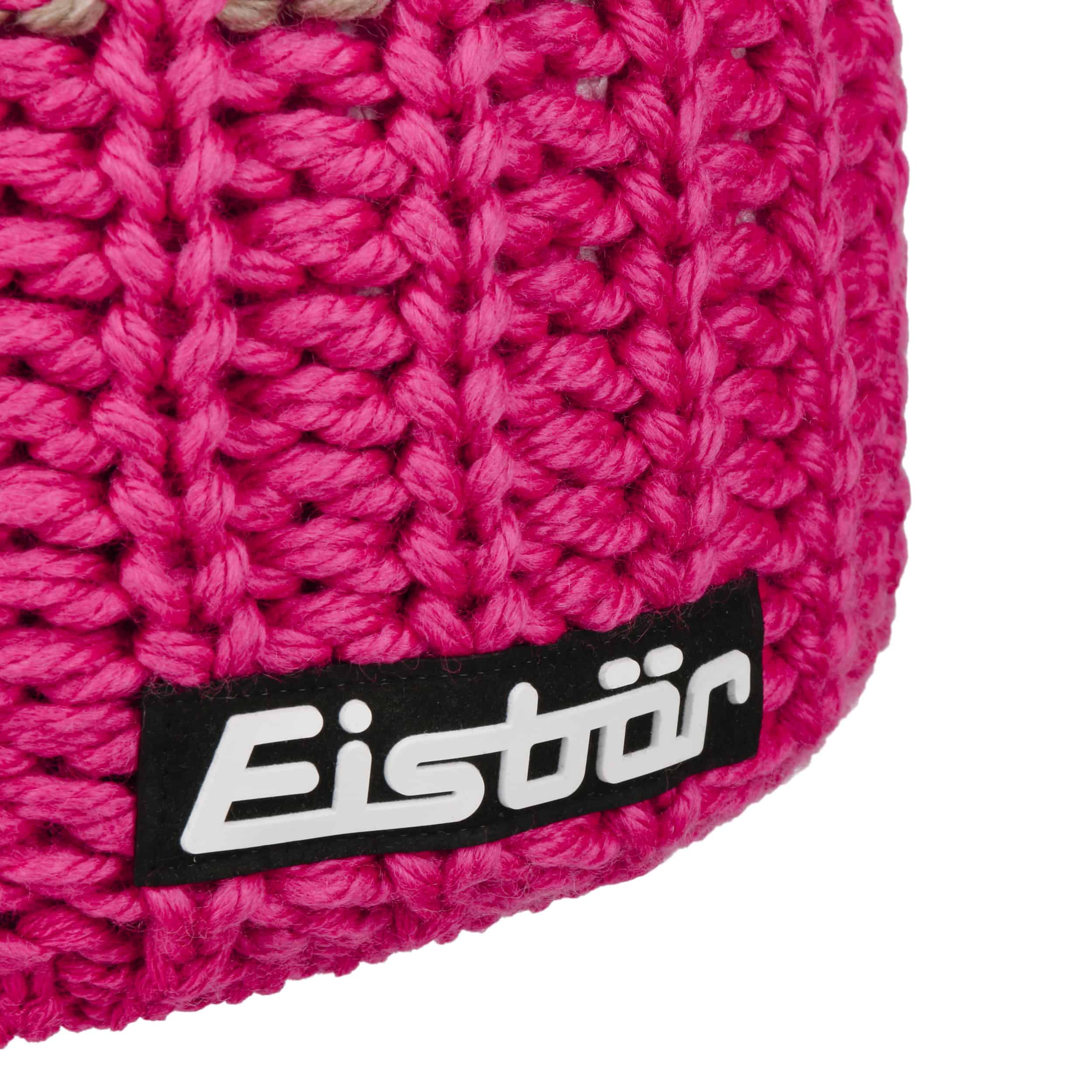 The beanie from Eisbär consists partly of temperature-regulating and breathable merino wool, providing a pleasant climate on the head. It also features a very soft fleece lining in the ear area, enhancing comfort. The knitted hat shines with its multicolour design, integrated stones, and faux fur pompom, making you look great during winter walks and Christmas shopping.
