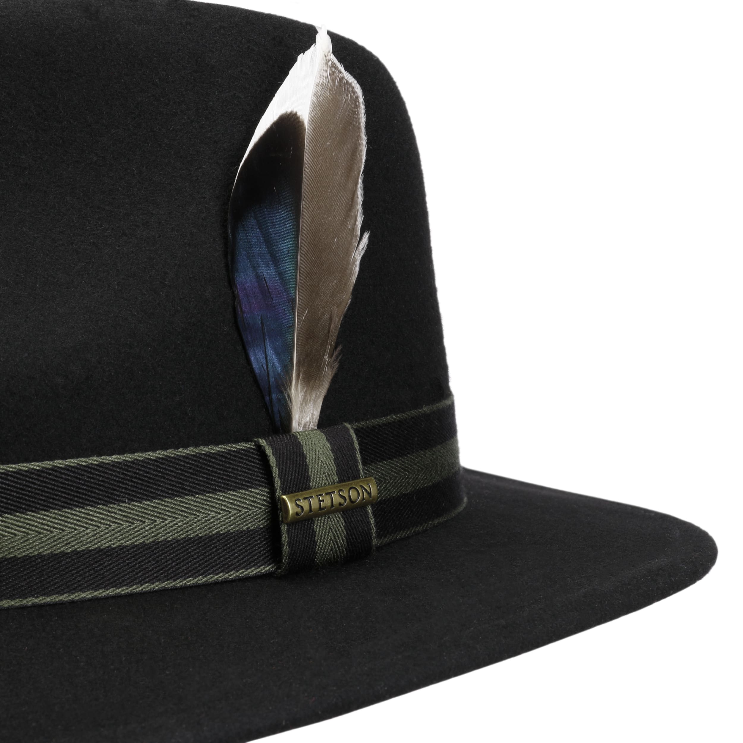 Wool from Australian sheep was processed into high-quality felt for the Traveller from Stetson, forming the basis of its inner values. Added are crushable properties, a water-repellent surface, and a lining made from breathable cotton. These top-notch outdoor qualities are hidden within the trendy look of the solid-coloured felt hat, with a subtly curved brim, a boldly indented crown, and a striped herringbone-style band.