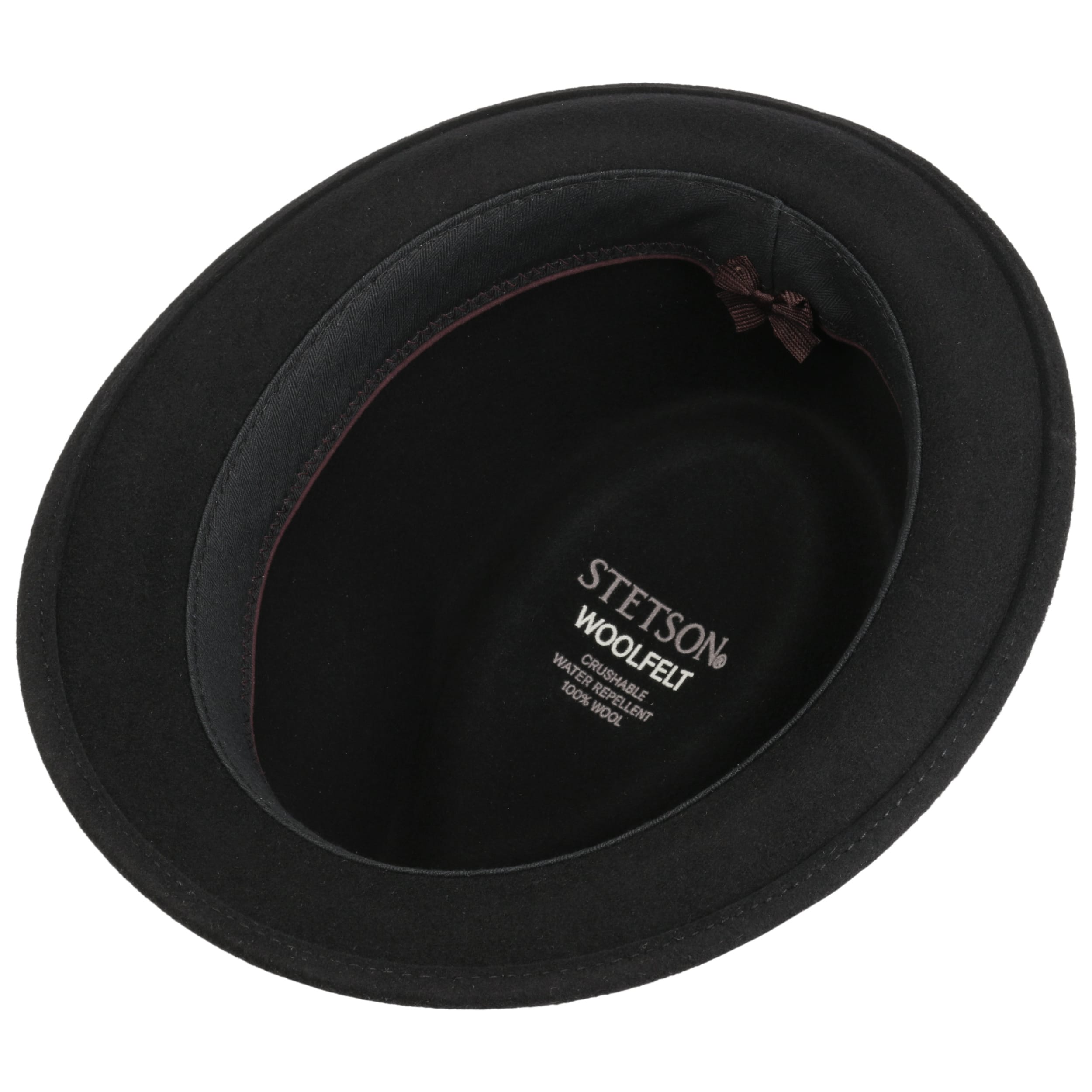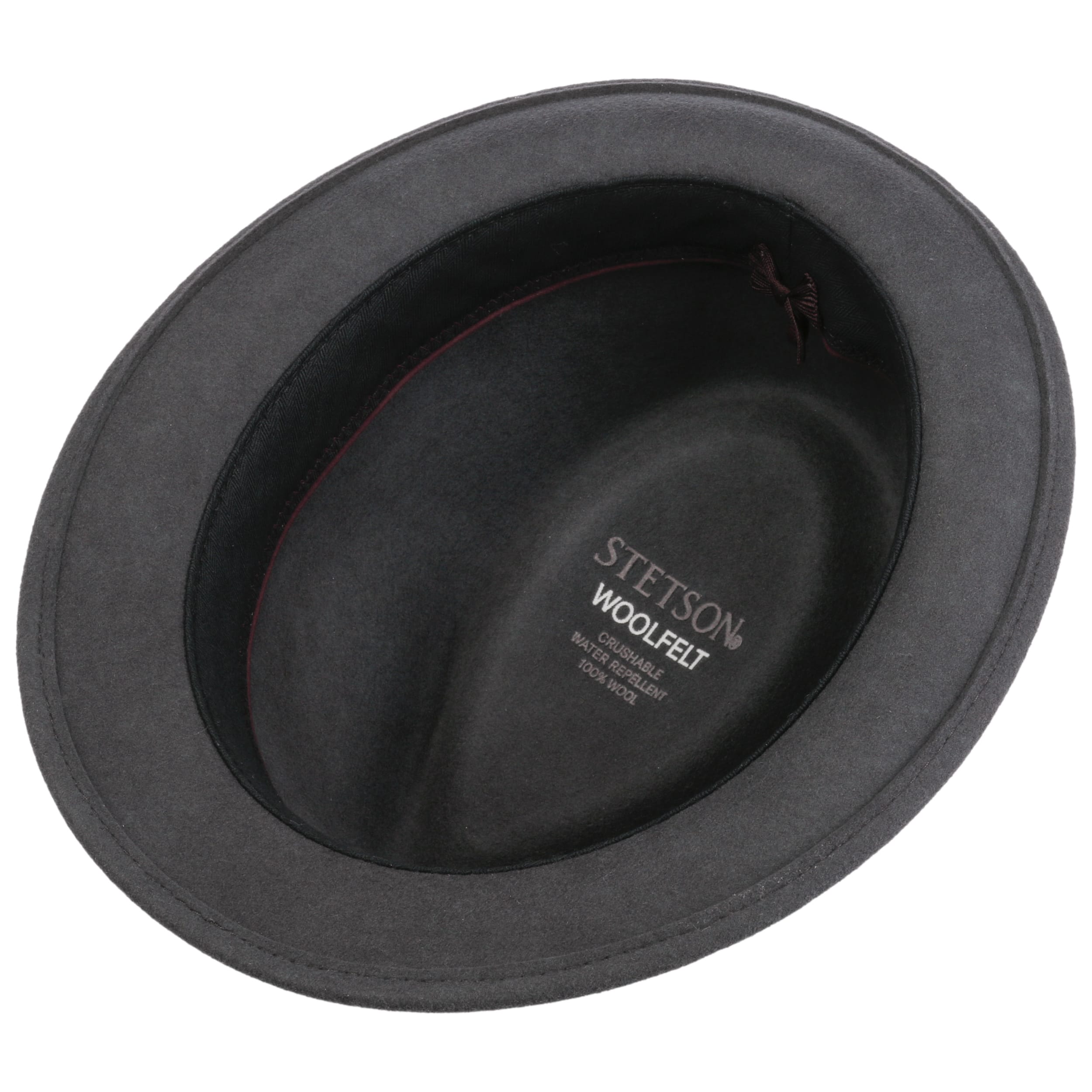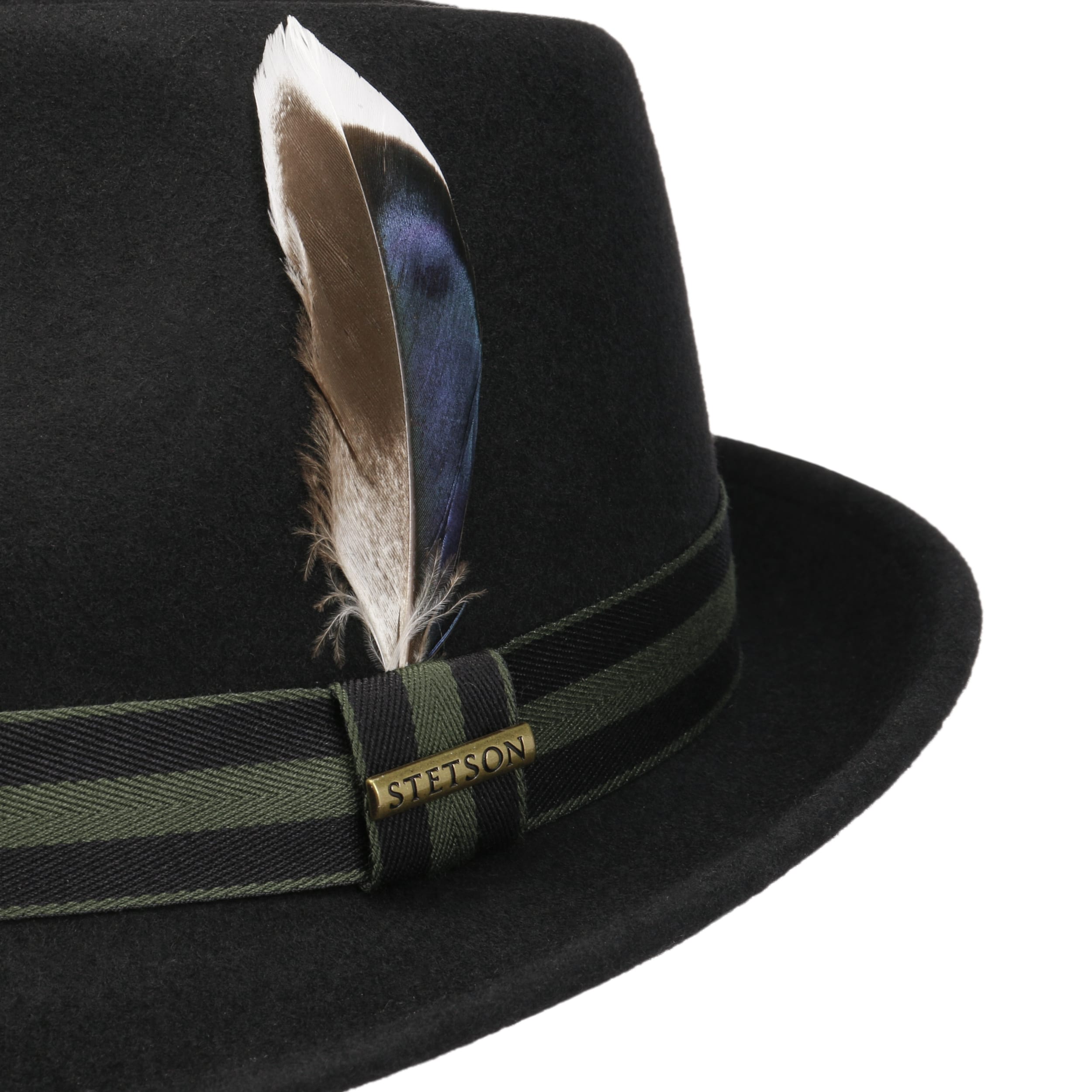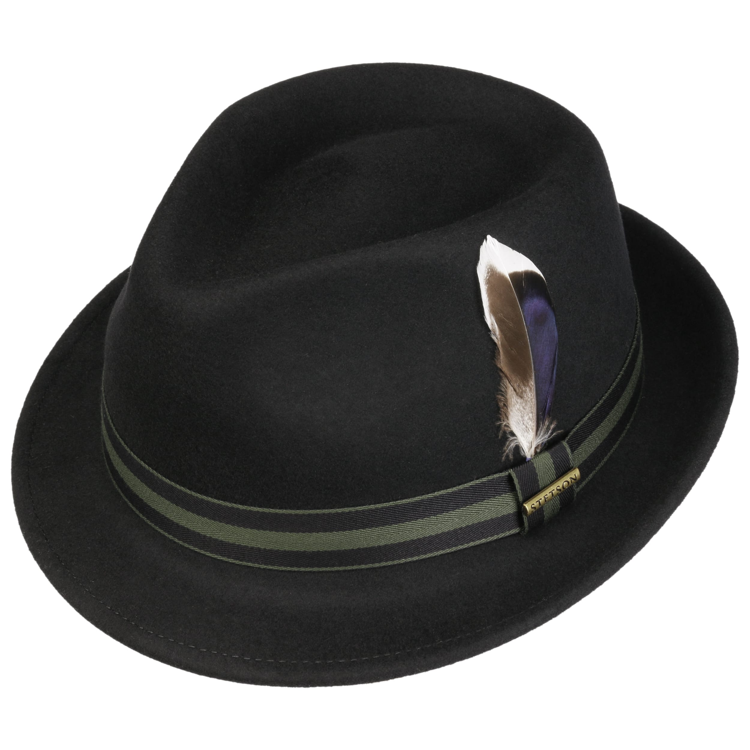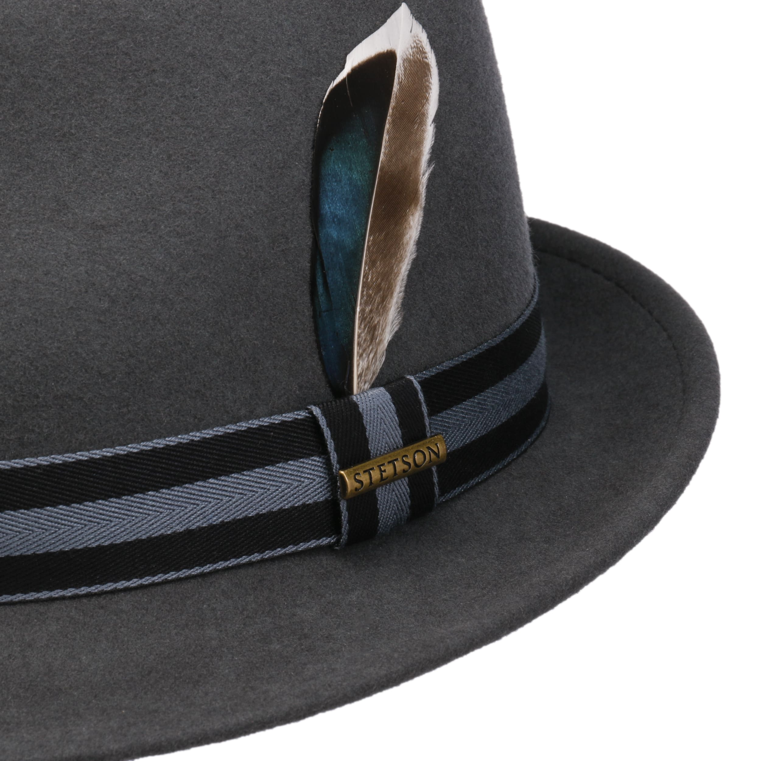wool felt skilfully conceals the outdoor robustness of the trilby from Stetson, which it gets from its Asahi Guard® finish: The felt hat is water-repellent, crushable and resistant to dust and dirt stains. So it’s hardly surprising that it confidently presents itself in a characteristic shape and plain-coloured look, both cleverly set off by the striped trim band.