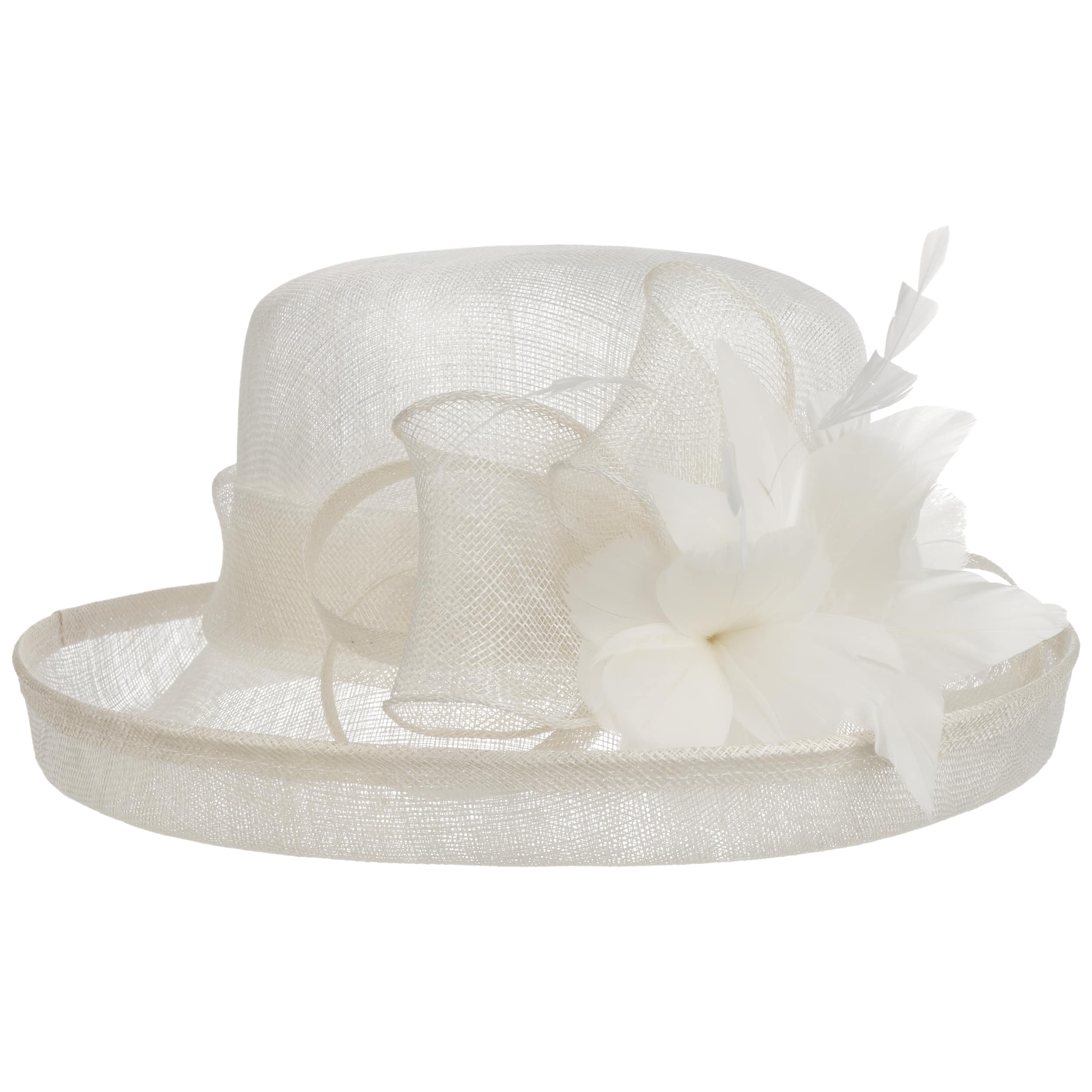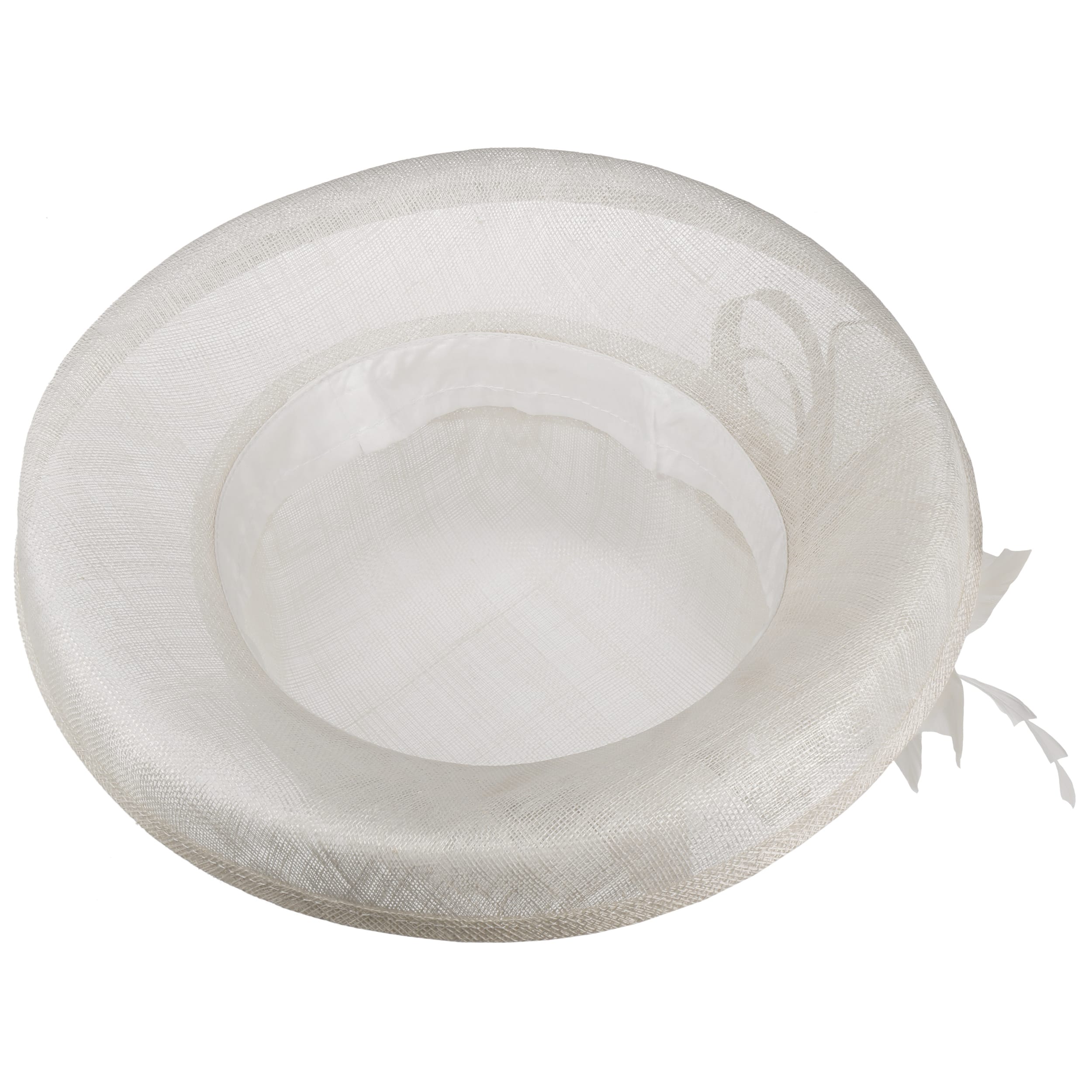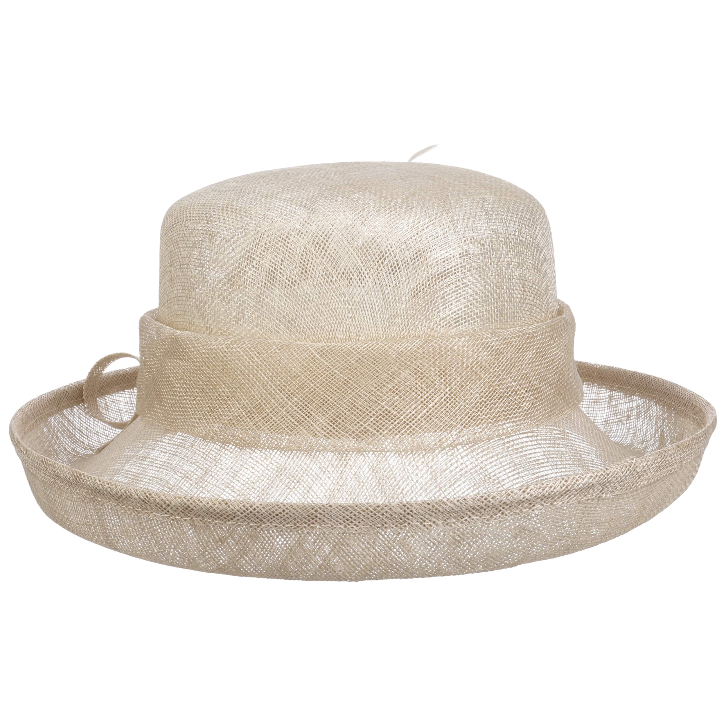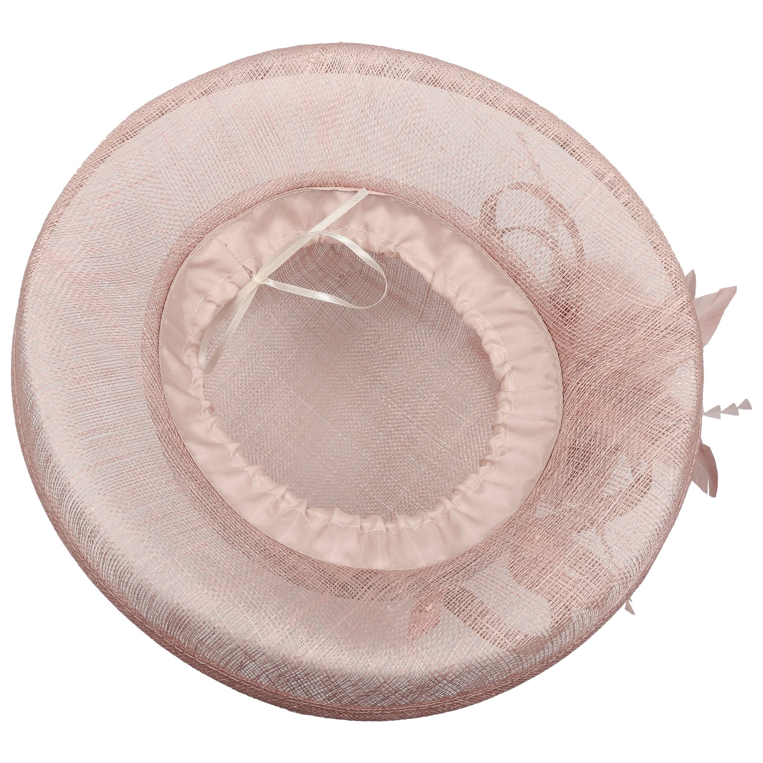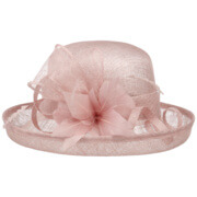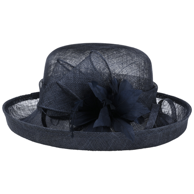 This fine McBURN occasion hat adds a touch of romance to this fancy outfit. The straw hat owes its subtle radiance, among other things, to its gossamer-like texture, which allows light and air to penetrate. The open brim and an opulent flower application really catch the eye. With the help of the integrated drawstring, the size of the lining band can be adjusted as desired.