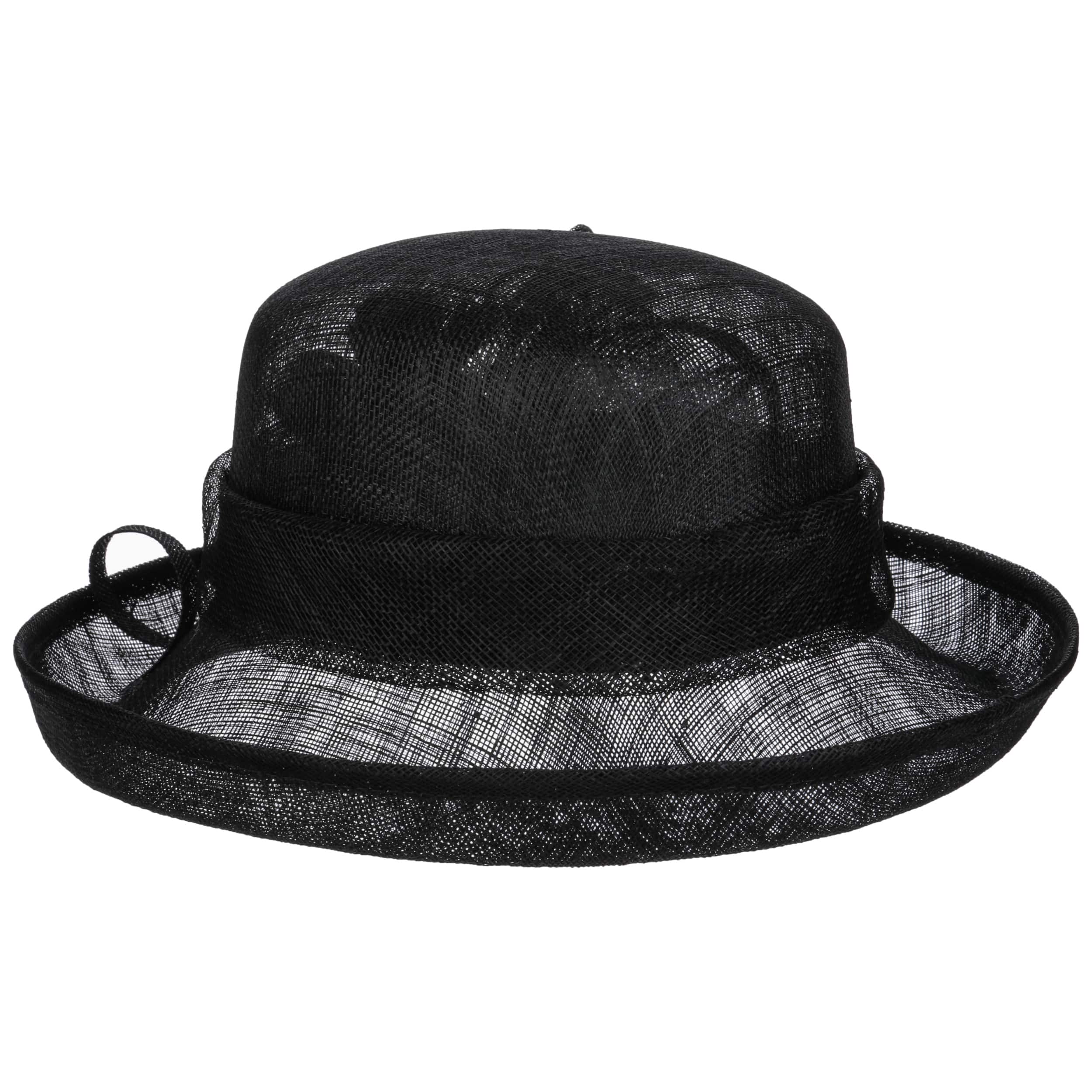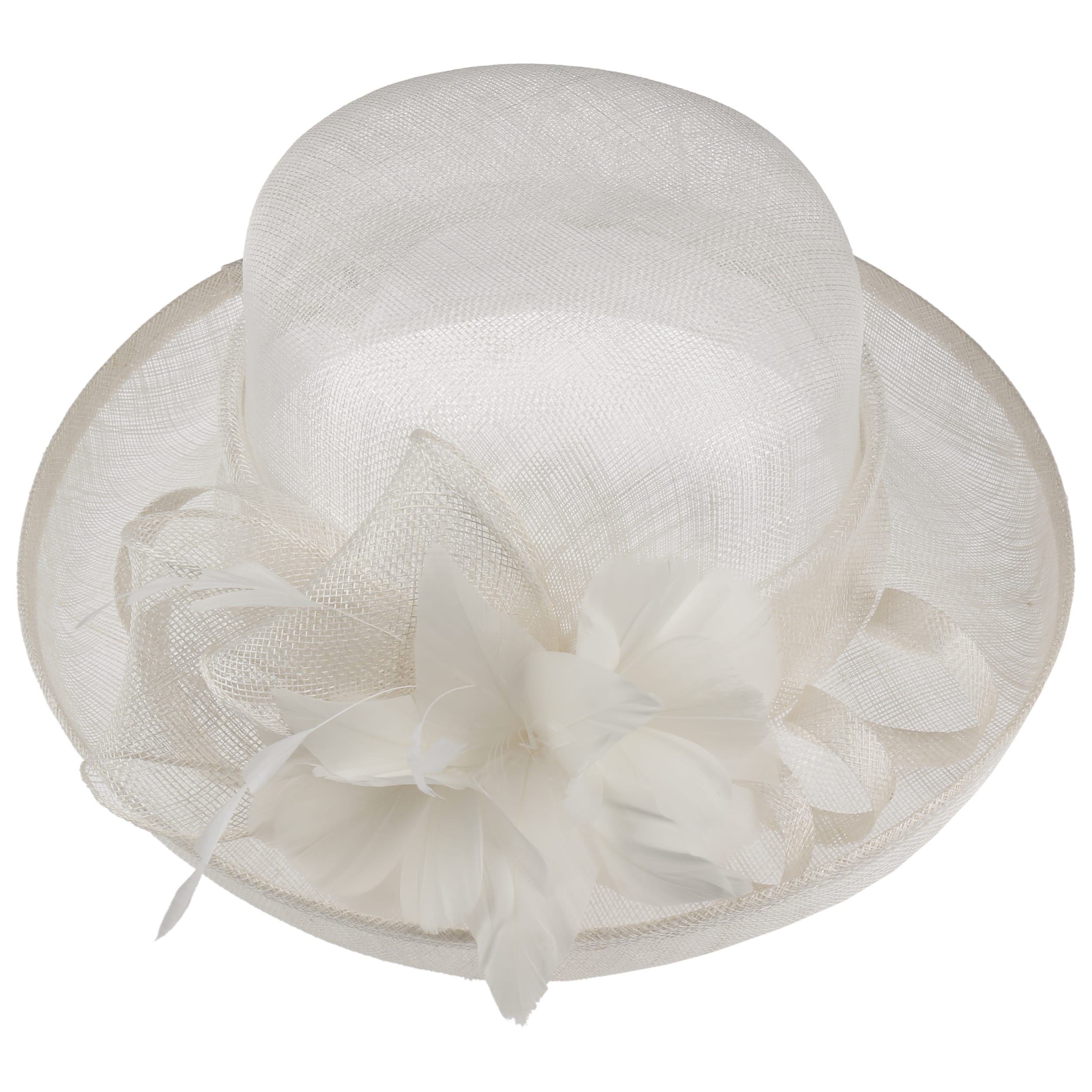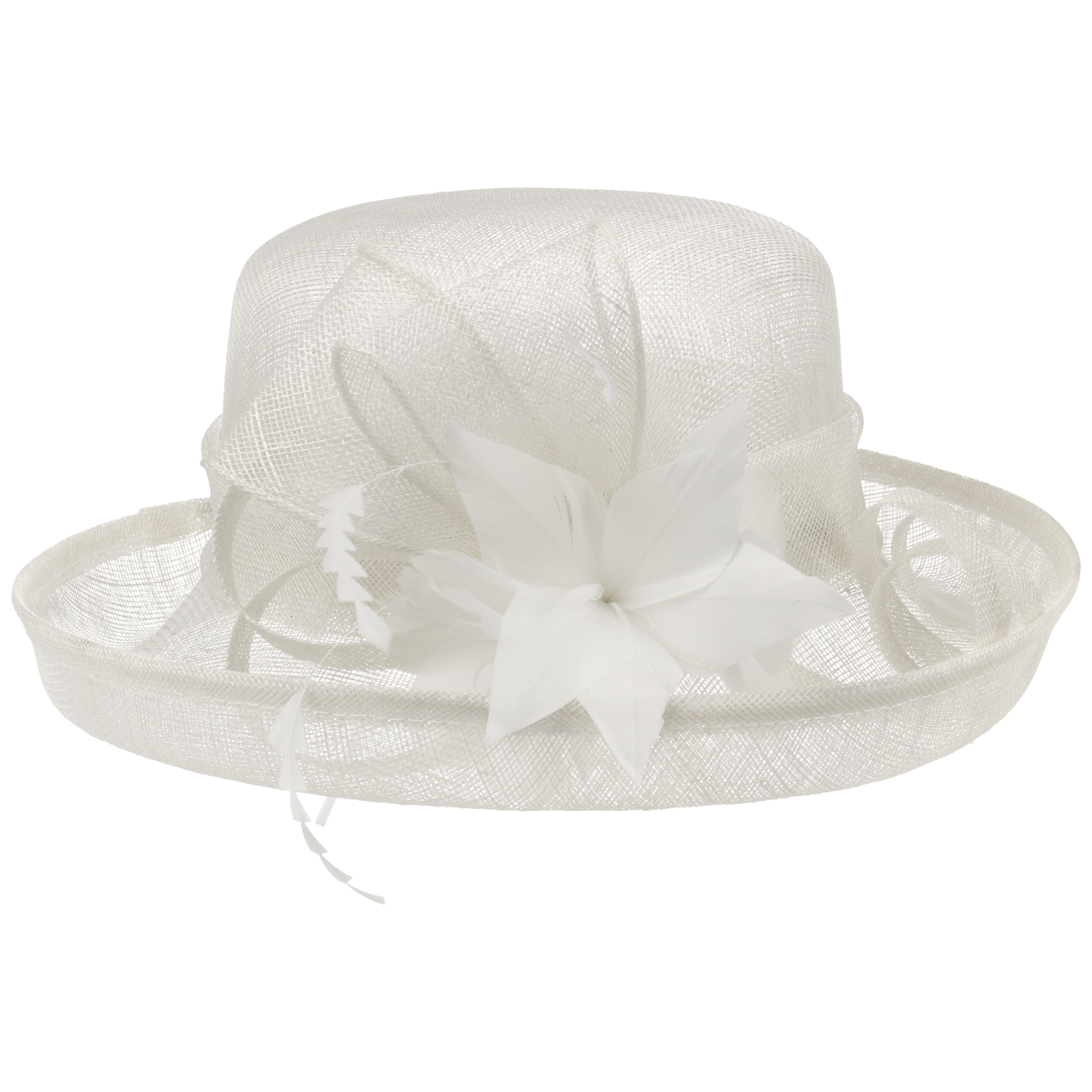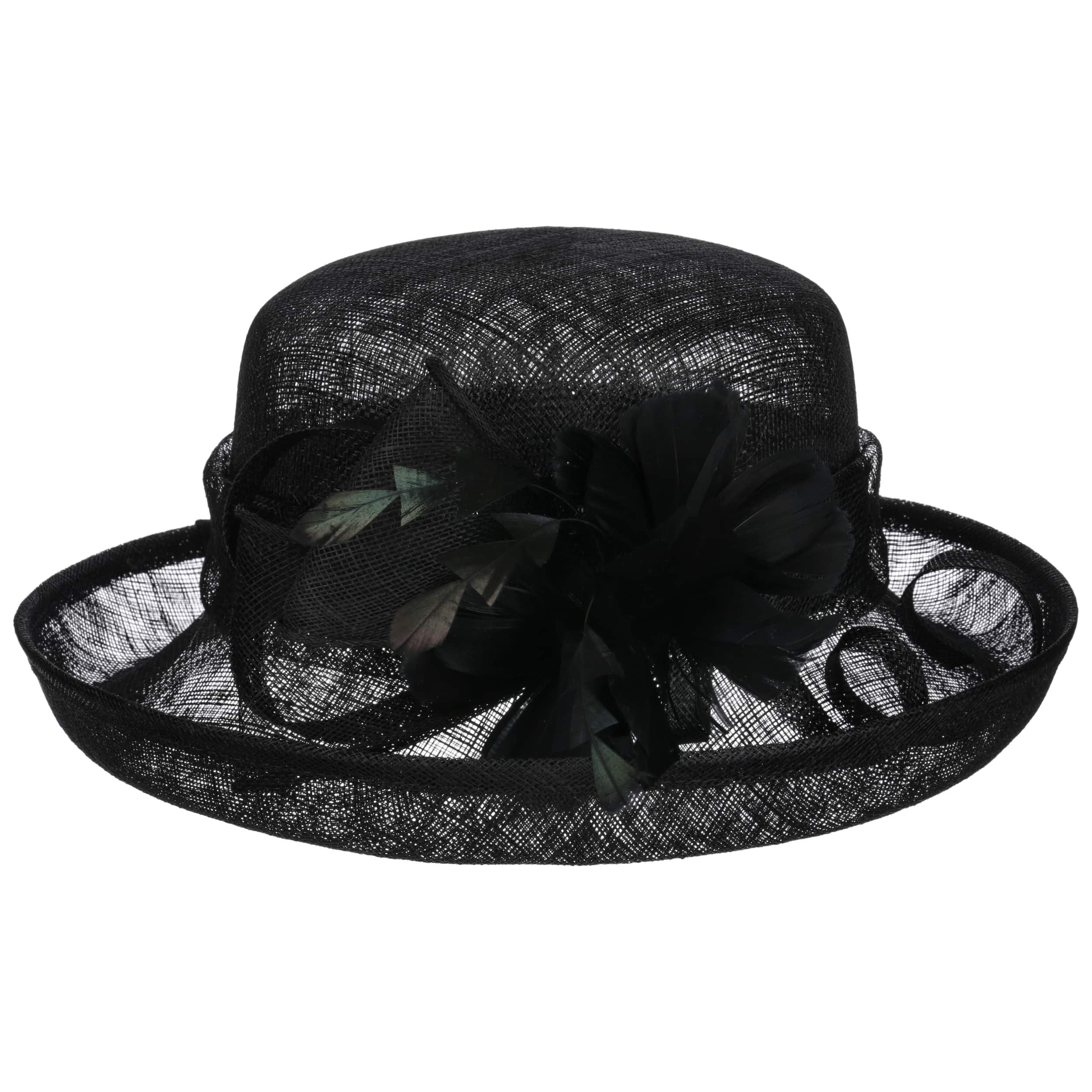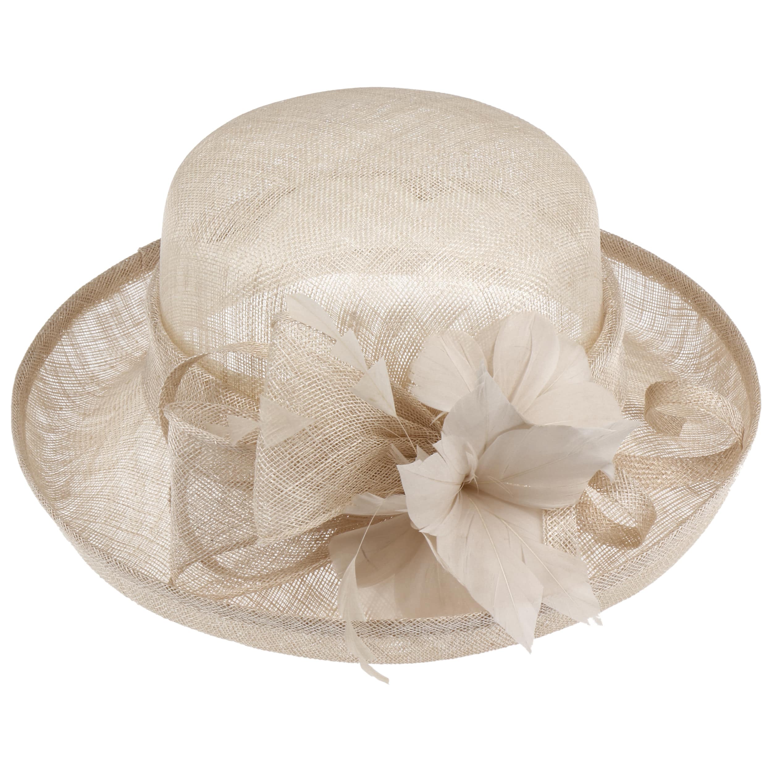 This fine McBURN occasion hat adds a touch of romance to this fancy outfit. The straw hat owes its subtle radiance, among other things, to its gossamer-like texture, which allows light and air to penetrate. The open brim and an opulent flower application really catch the eye. With the help of the integrated drawstring, the size of the lining band can be adjusted as desired.