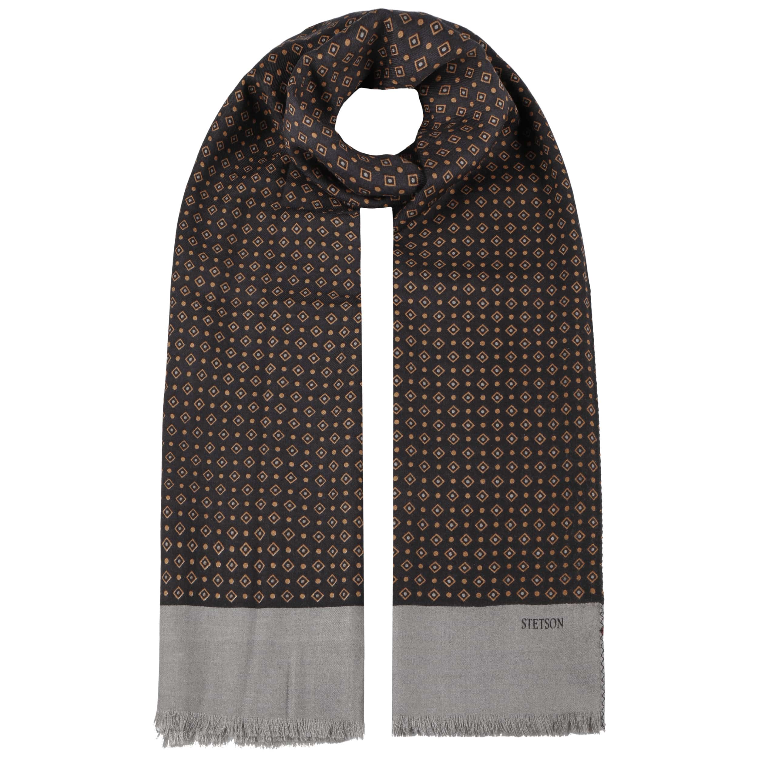 Stetson has equipped the woven scarf with warming wool and shimmering silk with a cooling effect. This gives it an elegant and comfortable base on which the colourful geometric pattern is shown to its best advantage. Both ends feature a plain contrasting colour and fine fringing, while the long sides are carefully stitched. Ladies and gentlemen alike will enhance their outfits in style with this neck flatterer.
