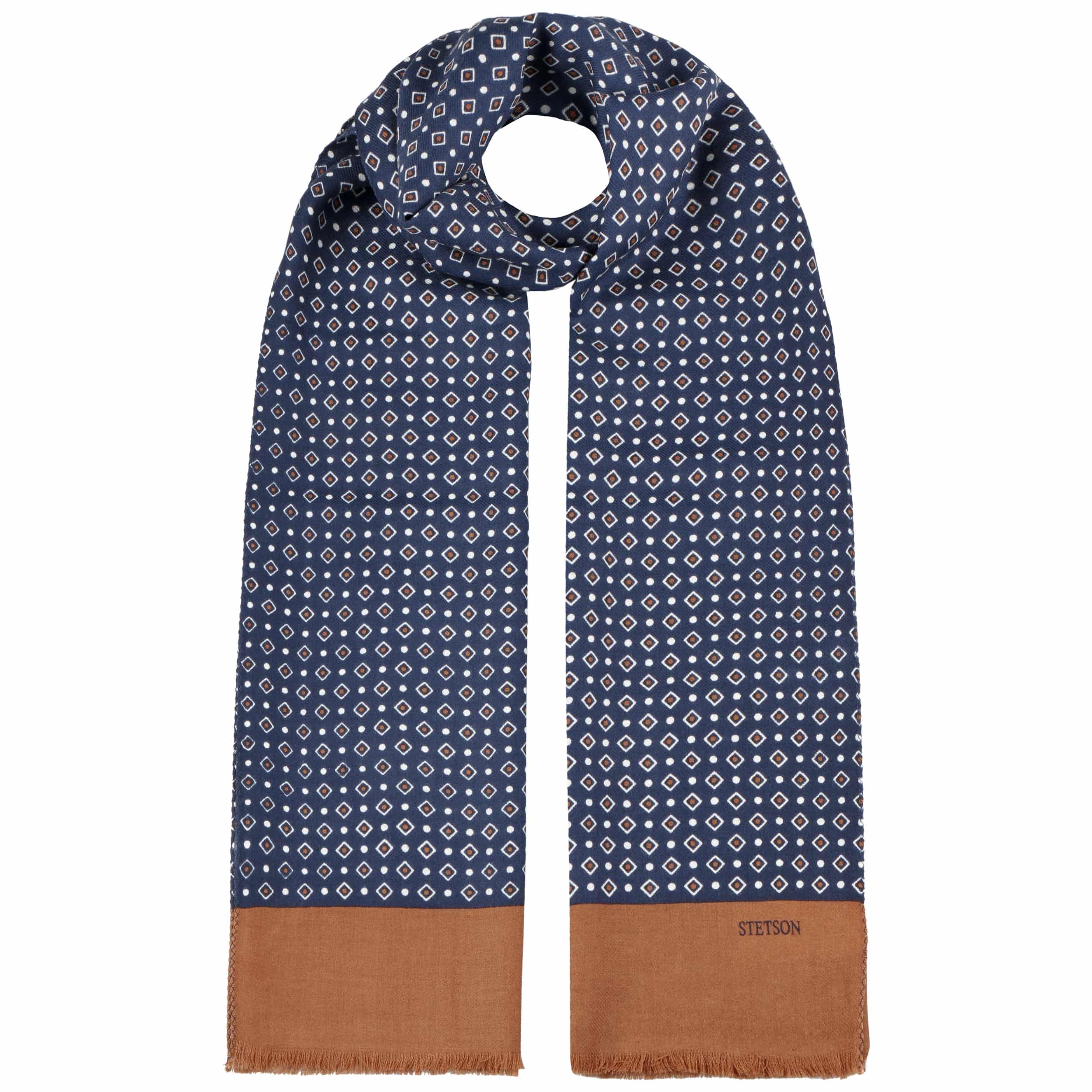 Since 1865, the name of John B. Stetson has been a synonym for best quality cowboy and Western hats. With the increasingly popular VitaFelt and VitaStraw collections, the U.S. brand has become pioneer of lightweight, water repellent and packable headwear. In the meantime, Stetson manufactures a wide range of first-class styles: army and baseball caps, flat hats, docker caps, beanies, trilbies and cowboy hats in many different designs.- Geometrics Scarf by Stetson - blue-beige 1