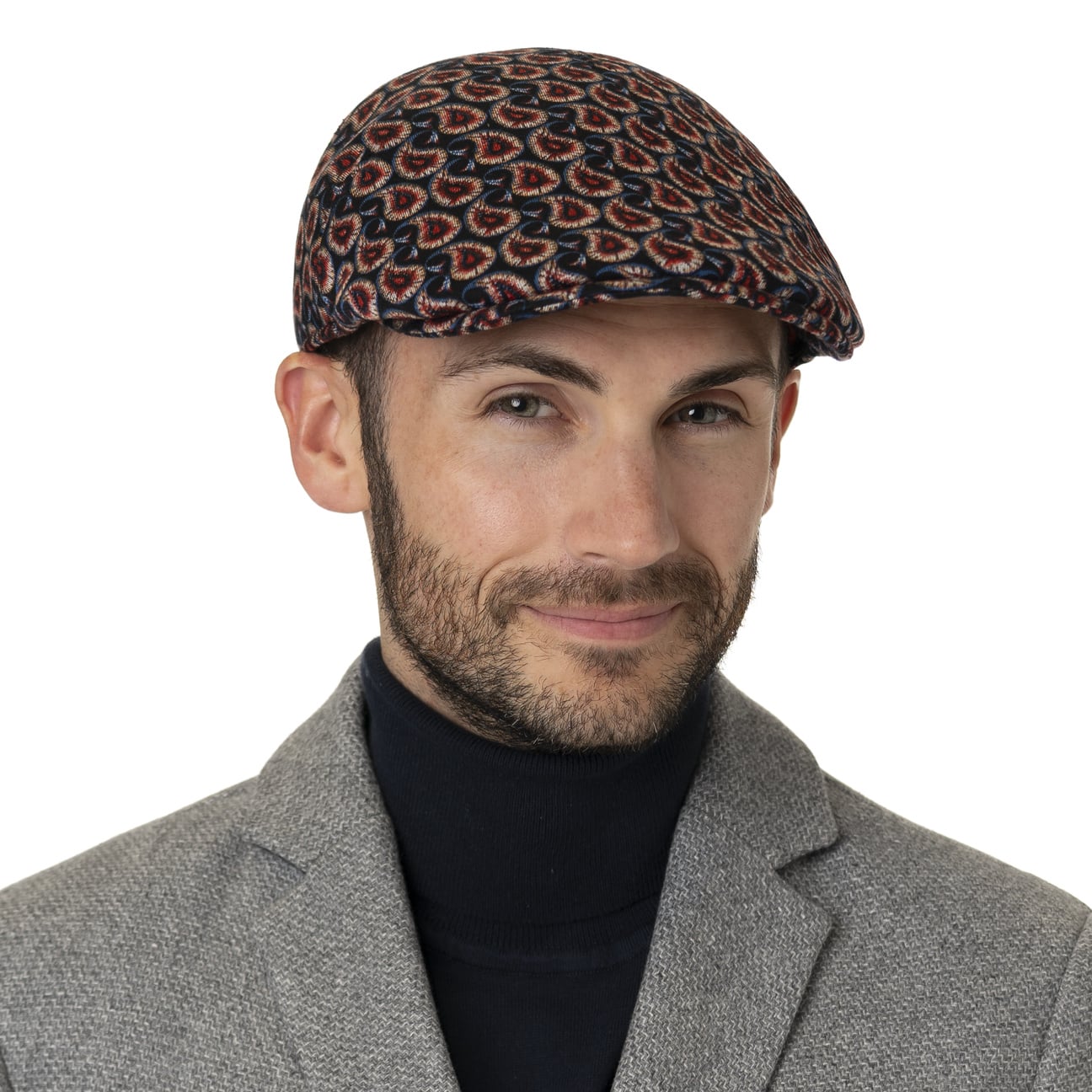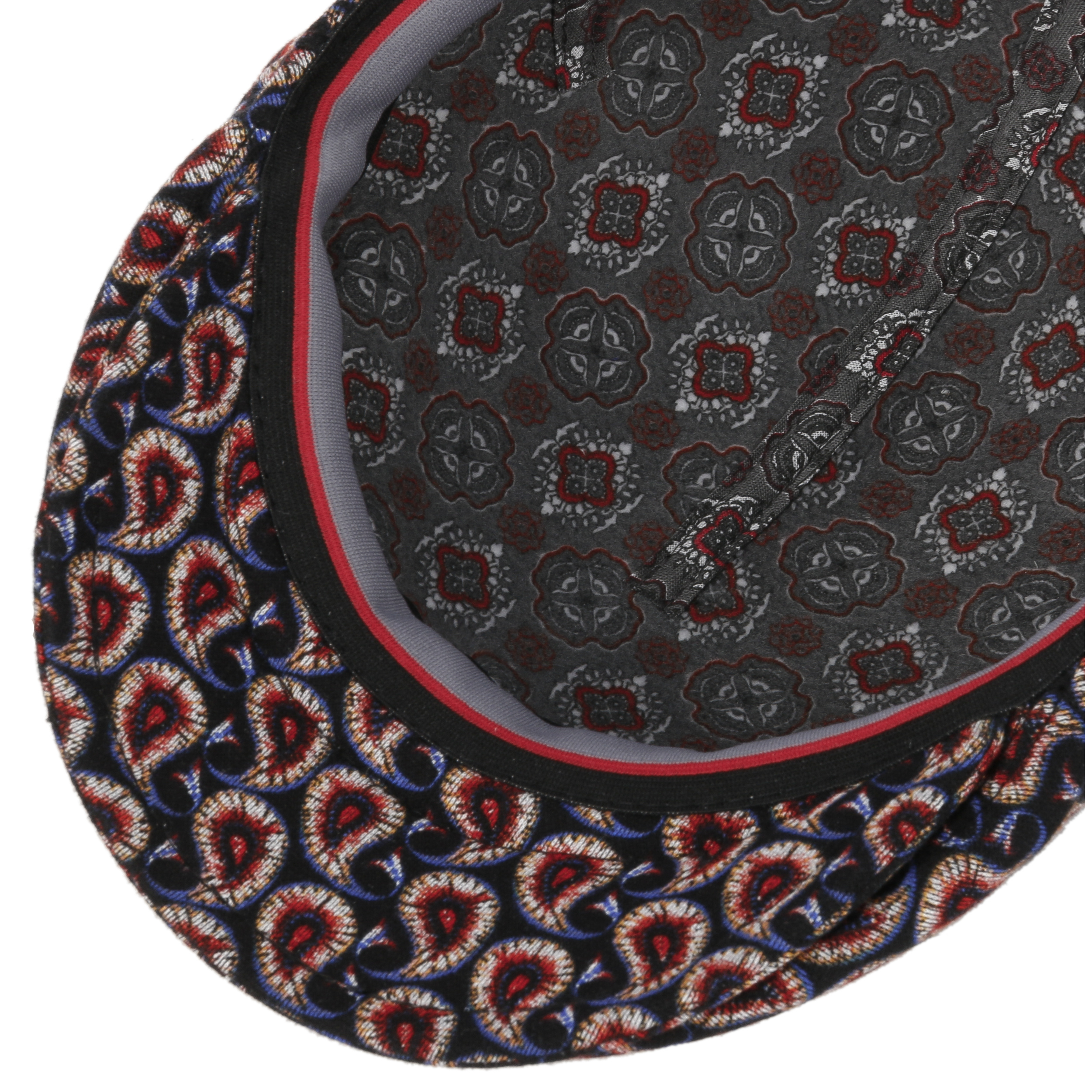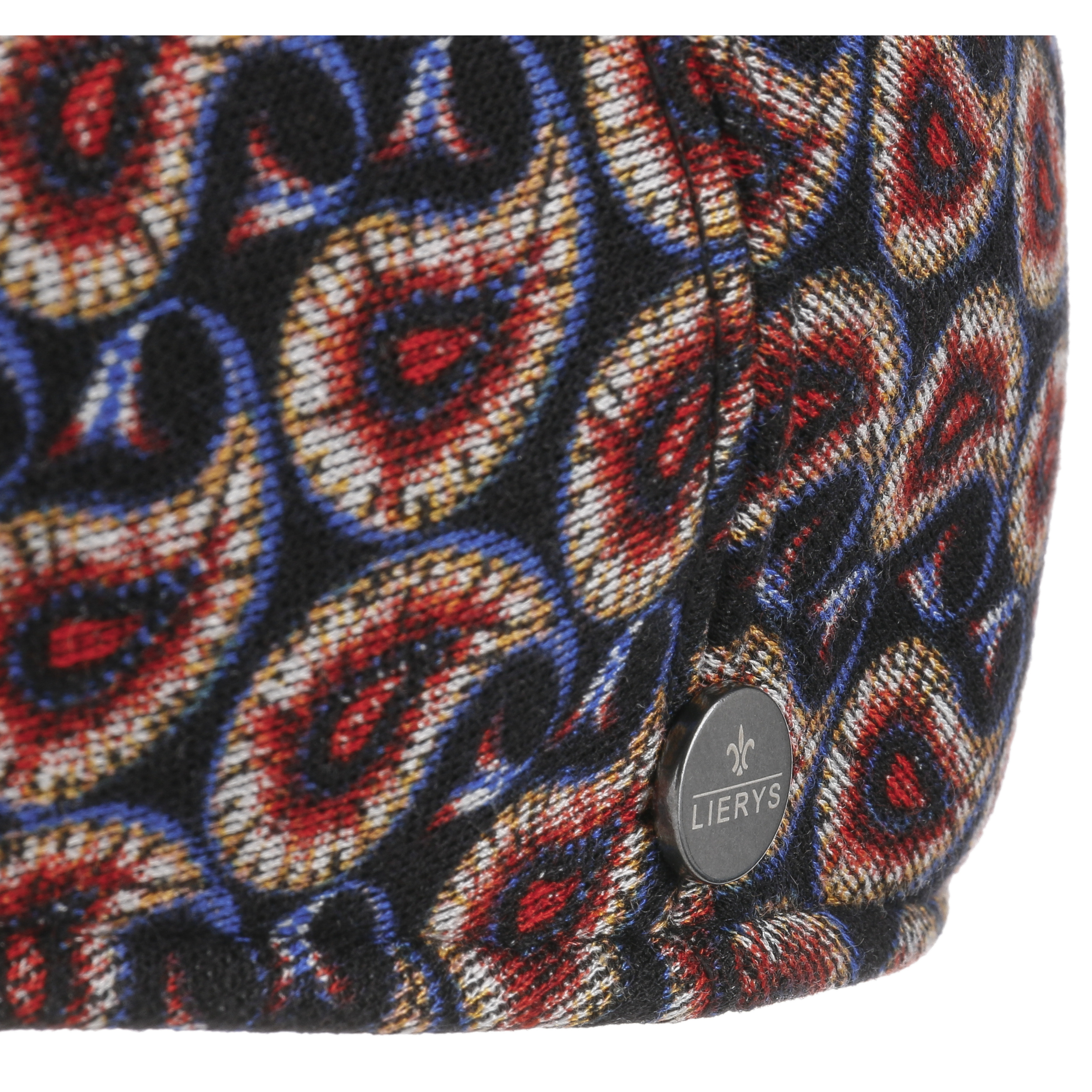 Contrasting colours and a dynamic all-over pattern make this Italian-made flat cap from the Lierys brand into a charming eye-catching addition to modern outfits. The multicoloured print, which also decorates the curved peak of the high quality cap, looks modern and agile, and has an appealing look with a youthful touch. An integrated stretch lining band and a lining made of 100% viscose ensure this cap is comfortable to wear.