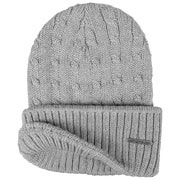 It is fine merino wool that gives this plain-coloured turn-up brim hat from Stetson is fluffy and soft properties. In addition, the wool hat is temperature-regulating and fast-drying, making it perfect for the colder months. It shows this off visually with its graphic cable knit, underneath which the ribbed knit brim nestles protectively over the ears. Choose your favourite colour and enjoy the winter!