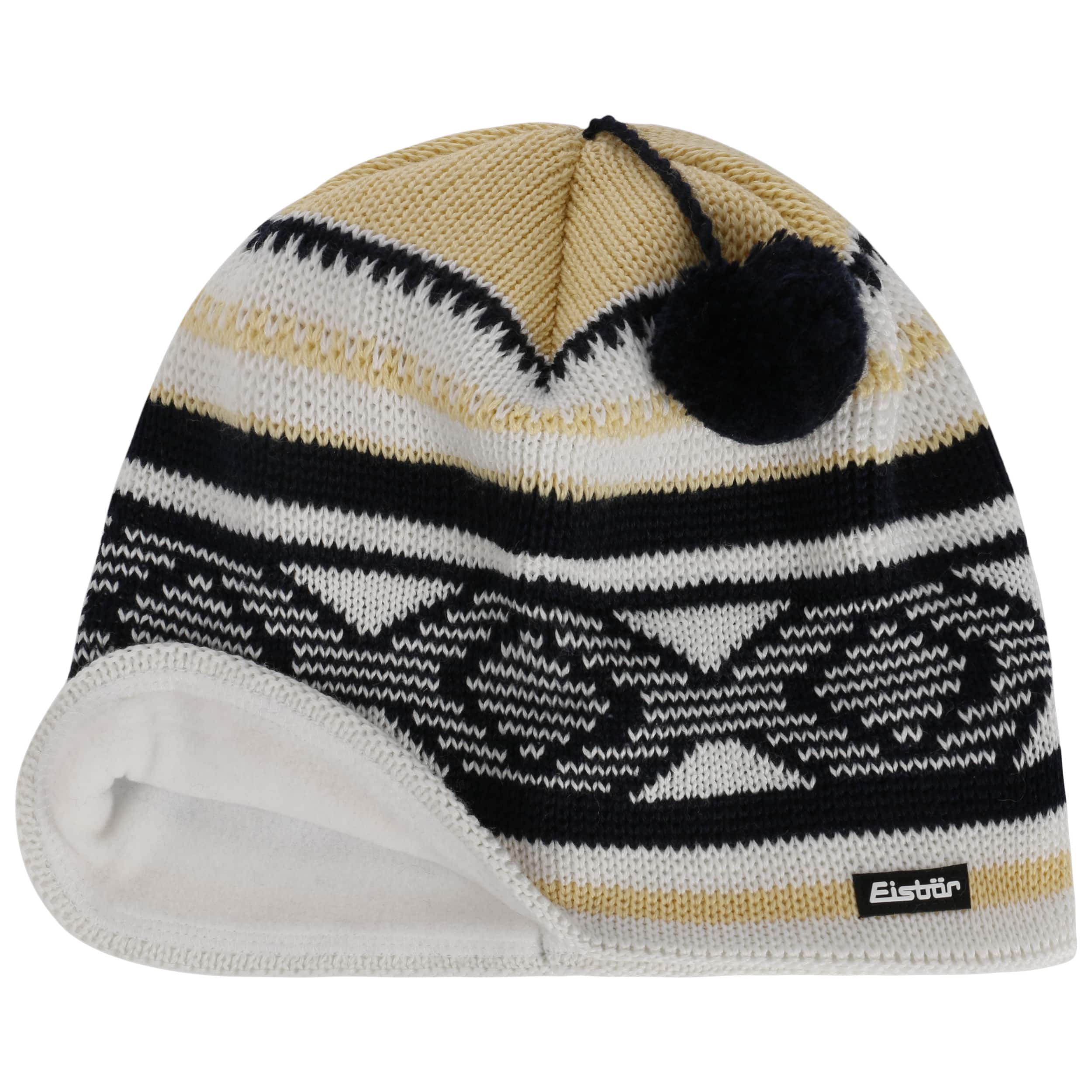 Whether it’s a toboggan run or a walk in the woods, the colourful winter cap from Eisbär is up for any kind of fun. Fresh colours and geometric patterns go well with sporty clothing, while the adorable bobble adds a playful accent. Of equal importance, however, is the fact that 50% merino wool will keep the head and ears warm. A soft fleece lining on the inside makes the beanie particularly cosy.