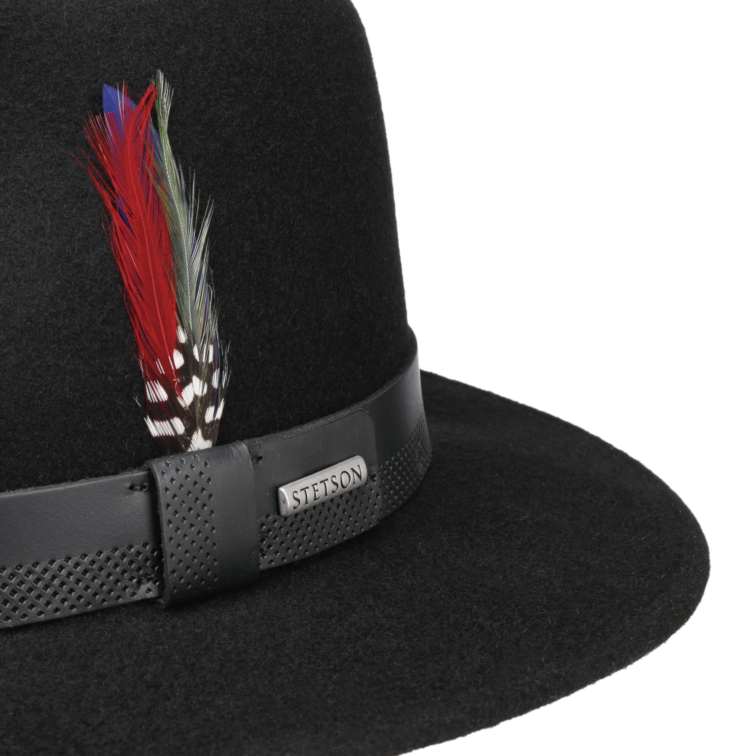 The handmade woollen hat from Stetson is made from 100% mulesing-free wool. The soft, cosy wool felt protects the head in all weathers and is extremely comfortable to wear. The single-coloured, elegant design is finished with a leather trim band and a decorative feather. This makes this traveller hat suitable for everyday use as well as for special occasions.