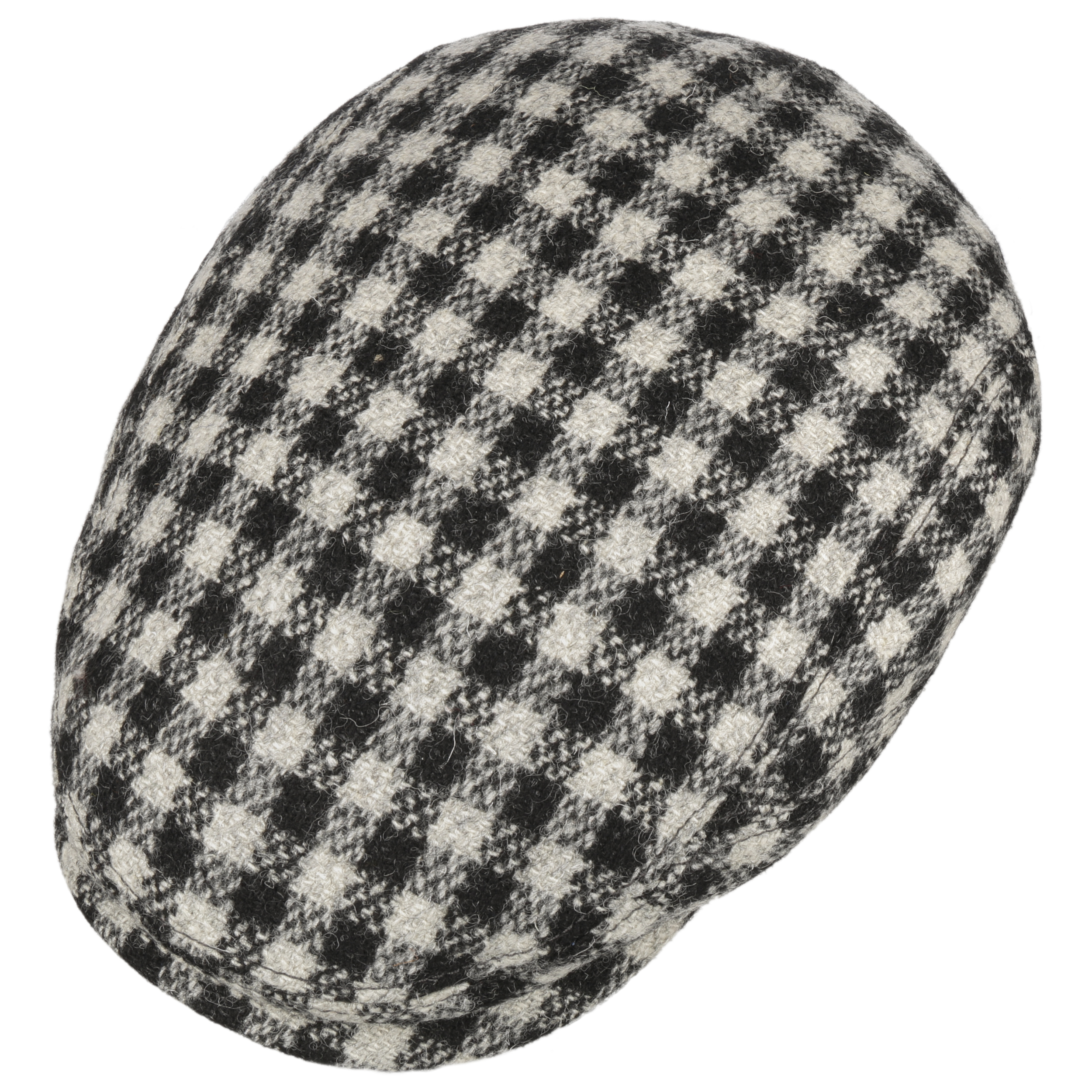 - Harris Tweed Twotone Check Flat Cap by Stetson - black-white 4