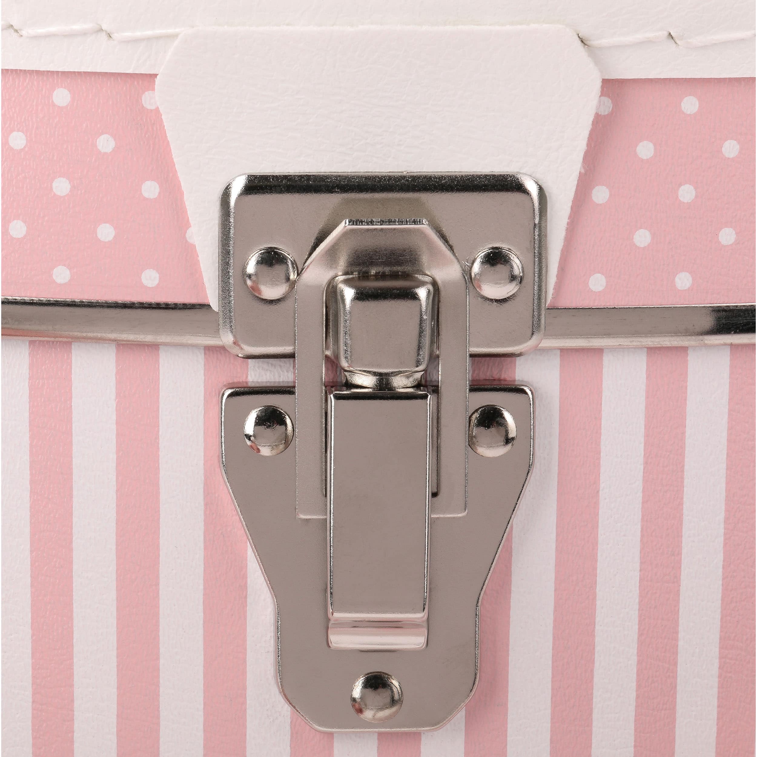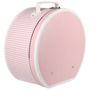 This sturdy hat box with a white carry handle features a sweet, pink striped look. With a diameter of 40 cm and measuring 21 cm high, it’s perfect for storing your favourite hat.