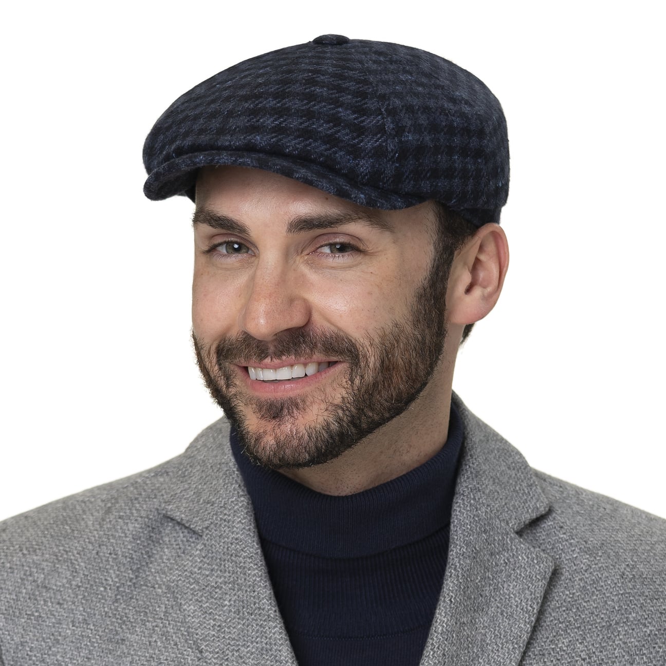 You can tell at first glance how snugly this flat cap from Stetson nestles on your head. A large houndstooth pattern in muted colours gives it a timelessly modern look. Soft cashmere wool and temperature- and moisture-regulating silk in proven Cerruti quality are responsible for the high wearing comfort. A lining made of 100% cotton also equips the eight-piece flat cap with breathable properties.