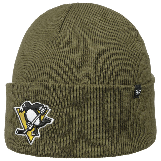47 Brand offers a huge selection of unique products. From snapback caps to strapbacks and trendy flat brim caps, from conventional six panel baseball caps to highly fashionable five panel caps. Founded in 1947 by twin brothers Arthur and Henry D’Angelo, the company has constantly developed innovative ideas, while always retaining its old value. So if you are looking for a cool baseball cap that combines style with high quality, you should look no further than 47 Brand for a new cap.- Haymaker Cuff Penguins Beanie Hat by 47 Brand - olive 1